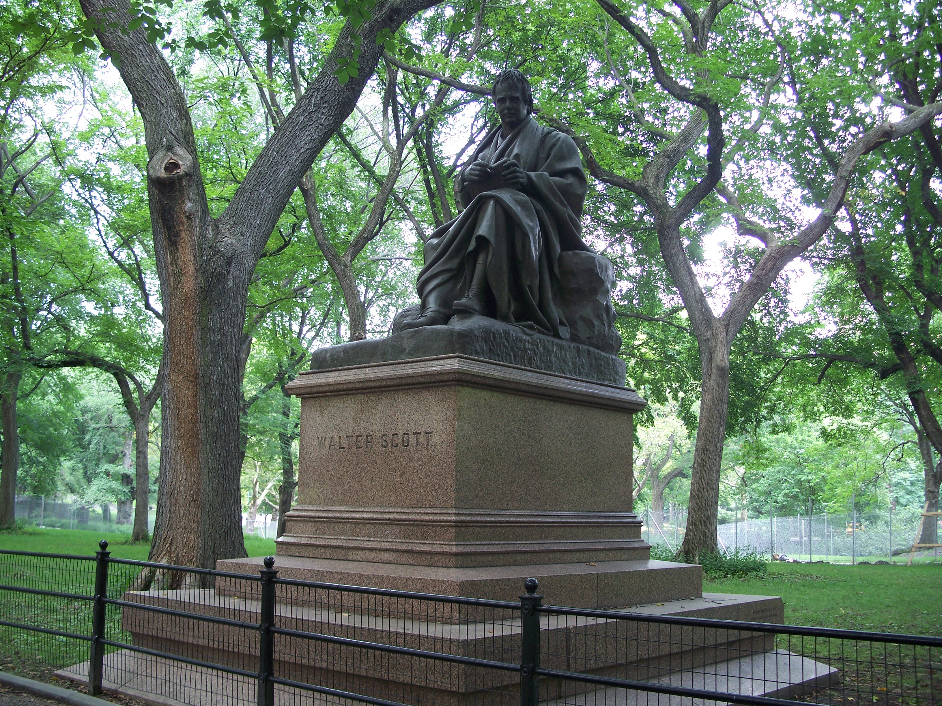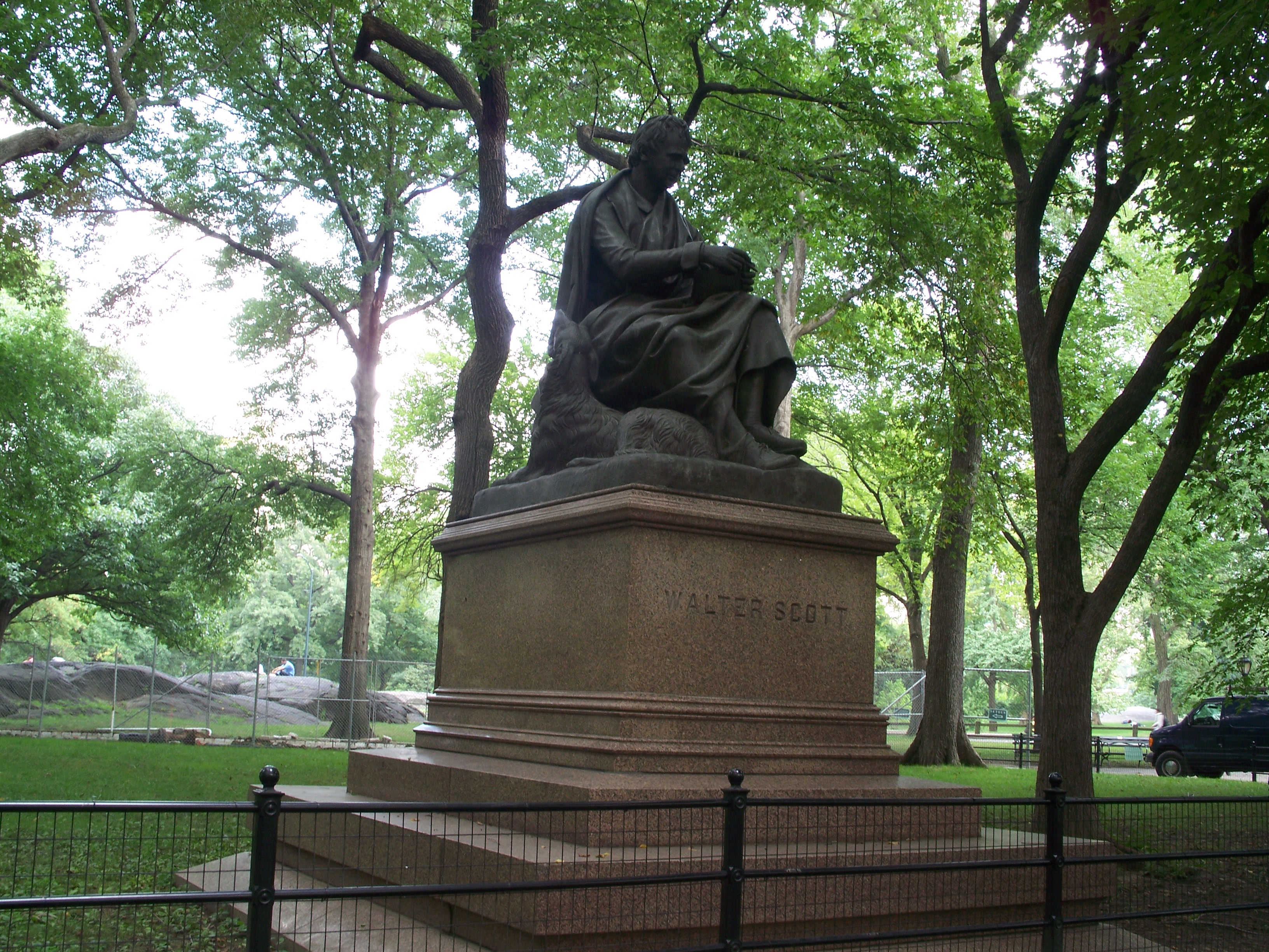 In 1872, the Saint Andrew's Society of the State of New York donated a seated bronze of novelist Walter Scott (1771-1832) by John Steell (1804-1891).