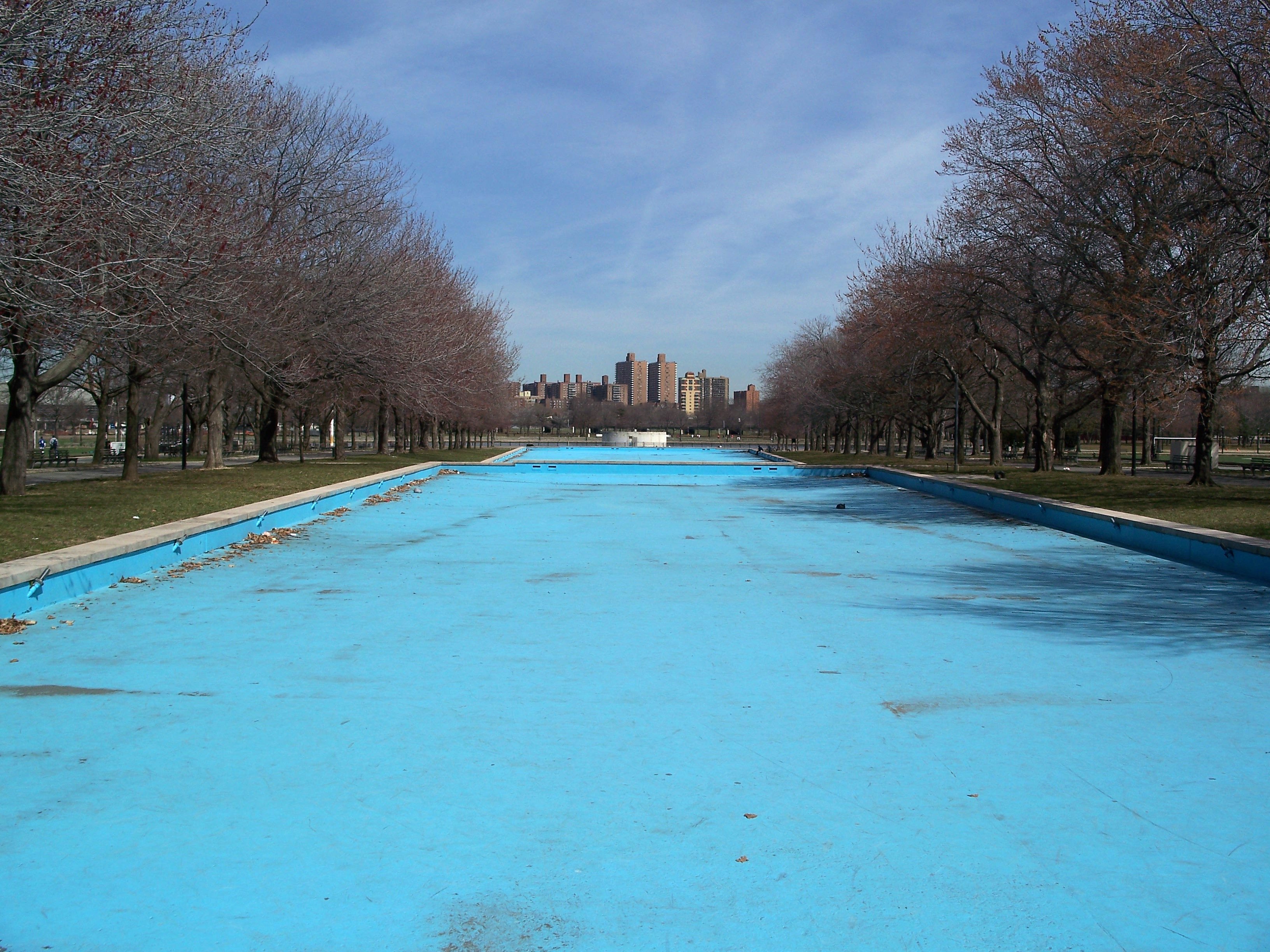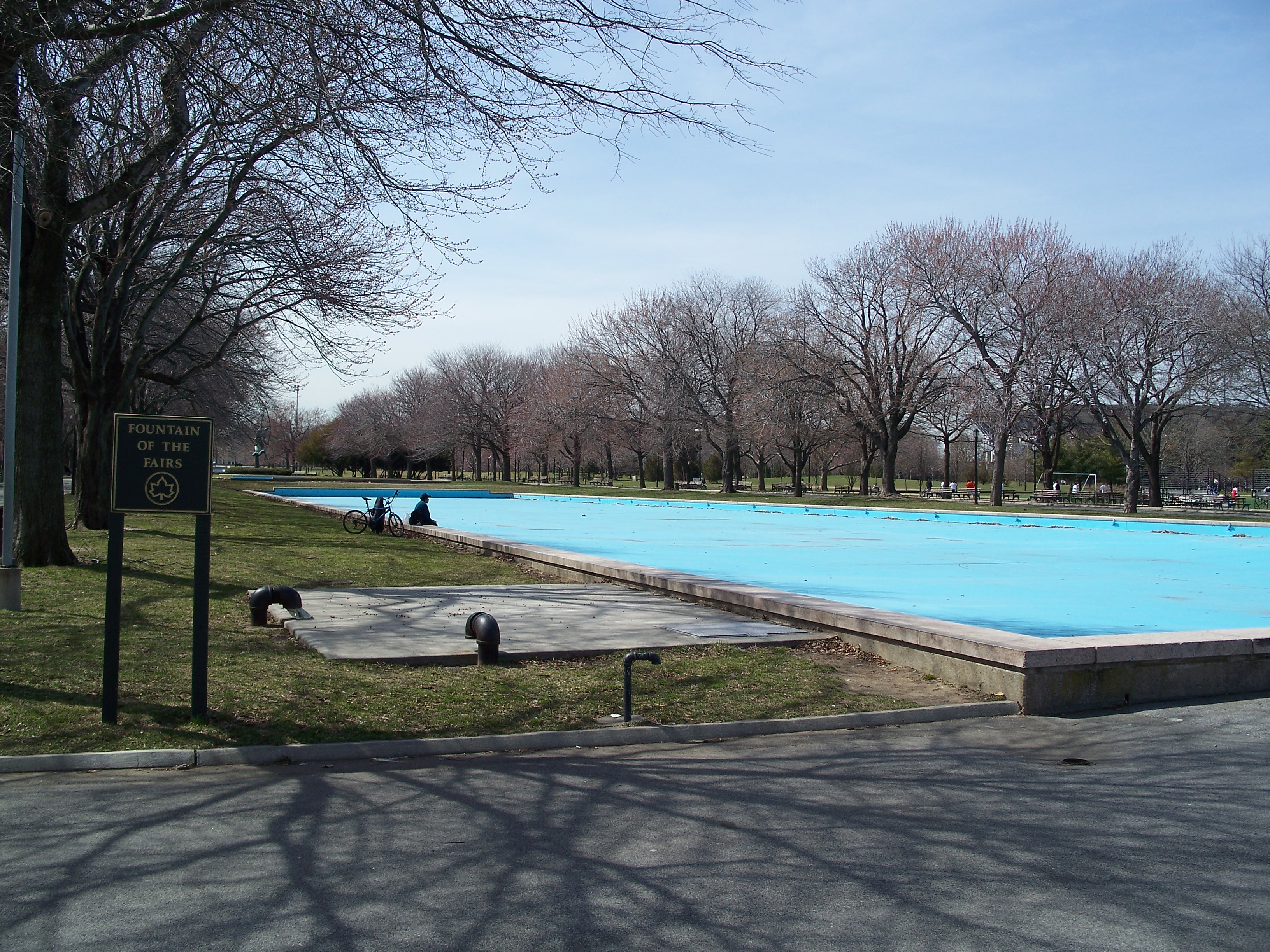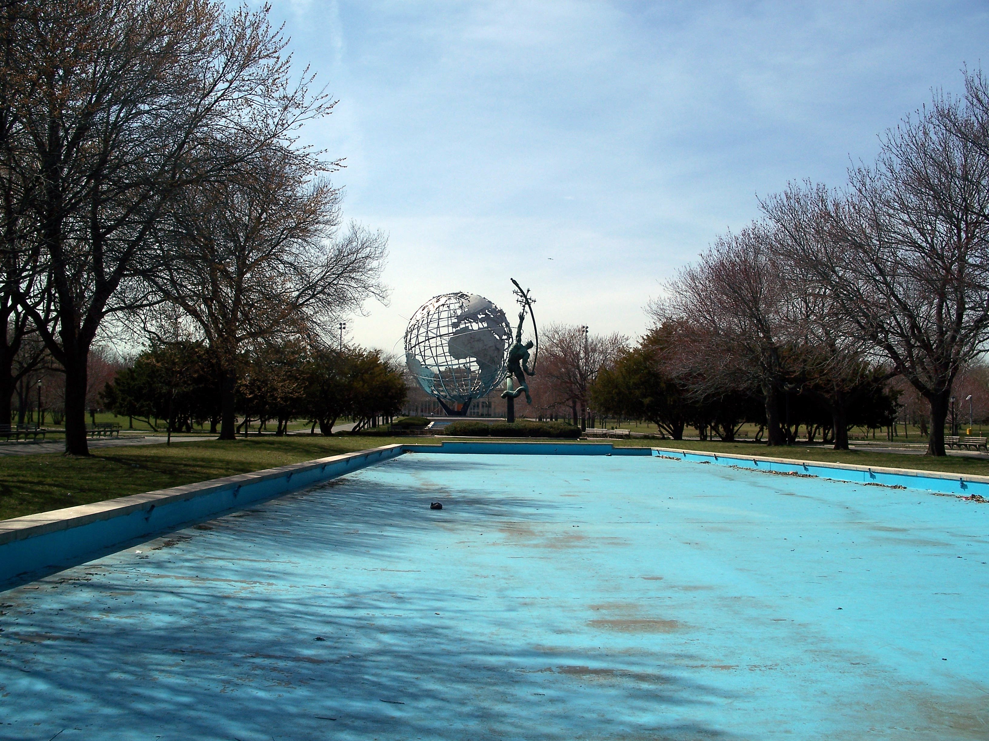 The Fountain of the Fairs stands between the Fountain of the Planets and the reflecting pools for the Unisphere.