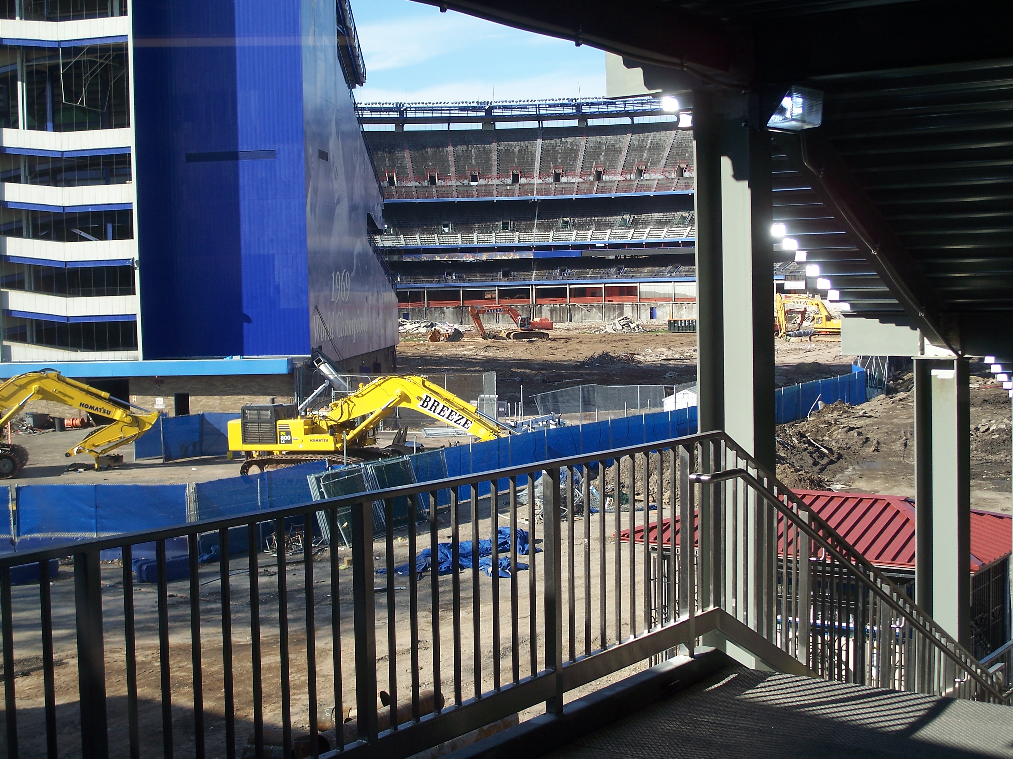 Groundbreaking occurred on October 28, 1961 and the 55,601-seat stadium was dedicated on April 17, 1964, a year behind schedule. The stadium cost $28.5 million to build and included motorized stands that permitted conversion to a football configuration. The New York Jets also played at Shea from 1964 until 1983, when the Jets moved to New Jersey following a failed effort to finance a renovation of the stadium. The building was one of the aesthetically-challenged "cookie-cutter" multi-purpose designs that proliferated in the 1960s and, since it was in the approach to LaGuardia Airport, was deafeningly noisy.