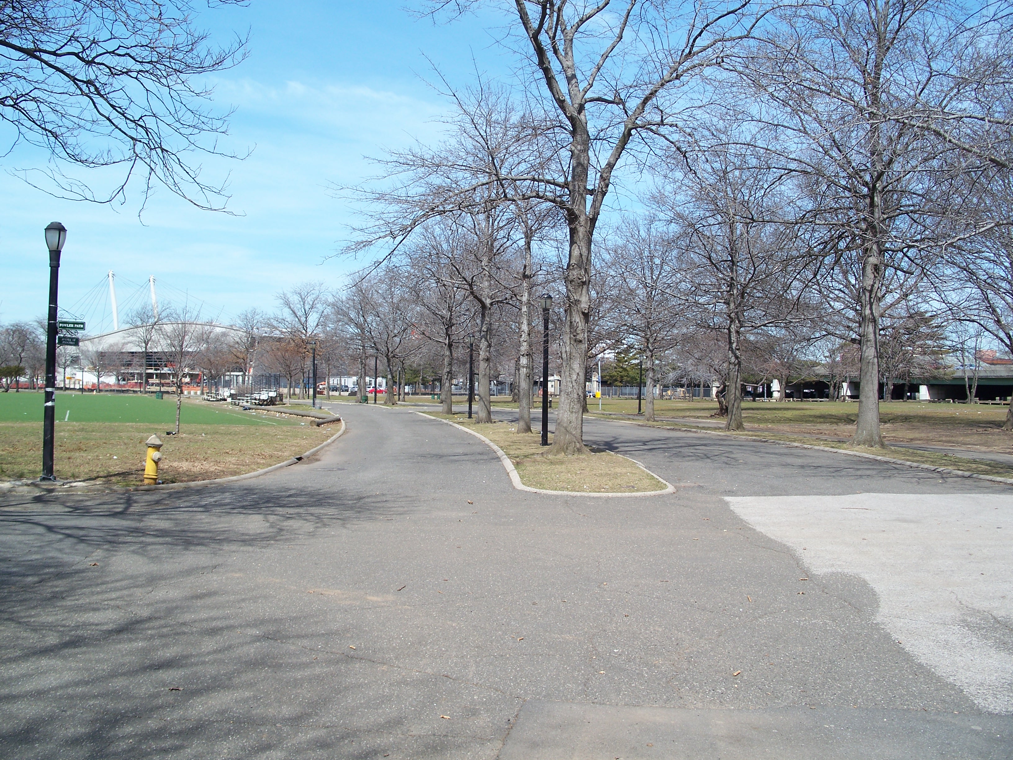 The Van Wyck Expressway runs to the East of the park and separates the main body of the park (what were the primary fairgrounds) from a small section of park that includes some additional ball fields and the Queens Botanical Garden.