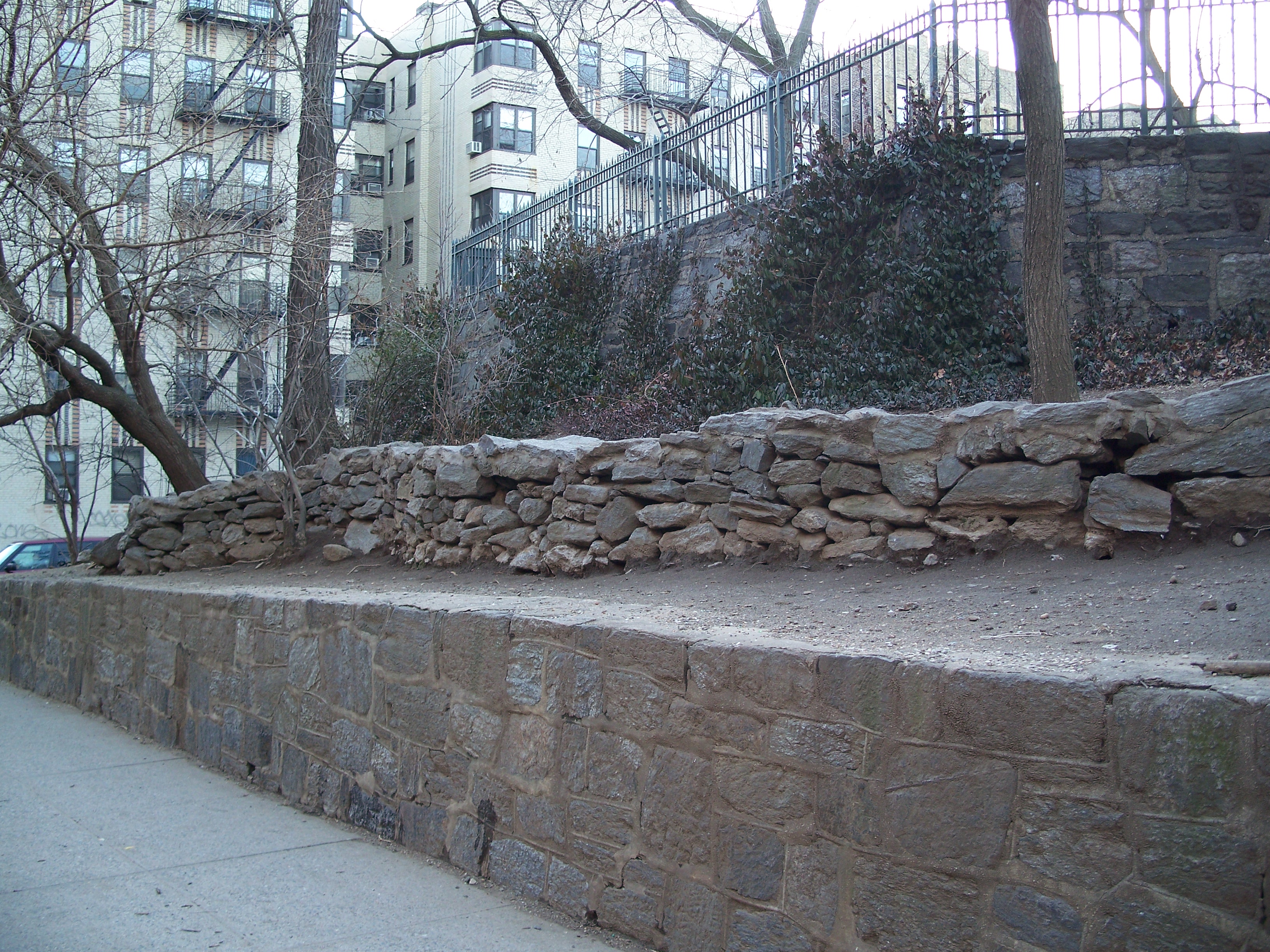 Fort Washington was built by the Continental Army on the highest natural point in Manhattan during the summer of 1776. The hastily-constructed five-bastion fort had earthen-walls that offered little defense against attackers. The fort was the last stronghold in Manhattan to fall to the British on November 16, 1776 and it remained in British hands until the Americans regained control of New York on November 25, 1783. During the war, the fort was renamed Fort Knyphausen after Wilhelm, Baron von Knyphausen (1716-1800), a German general in British service. The fort effectively vanished after the war with the surrounding area ultimately becoming the Washington Heights neighborhood. (reference)