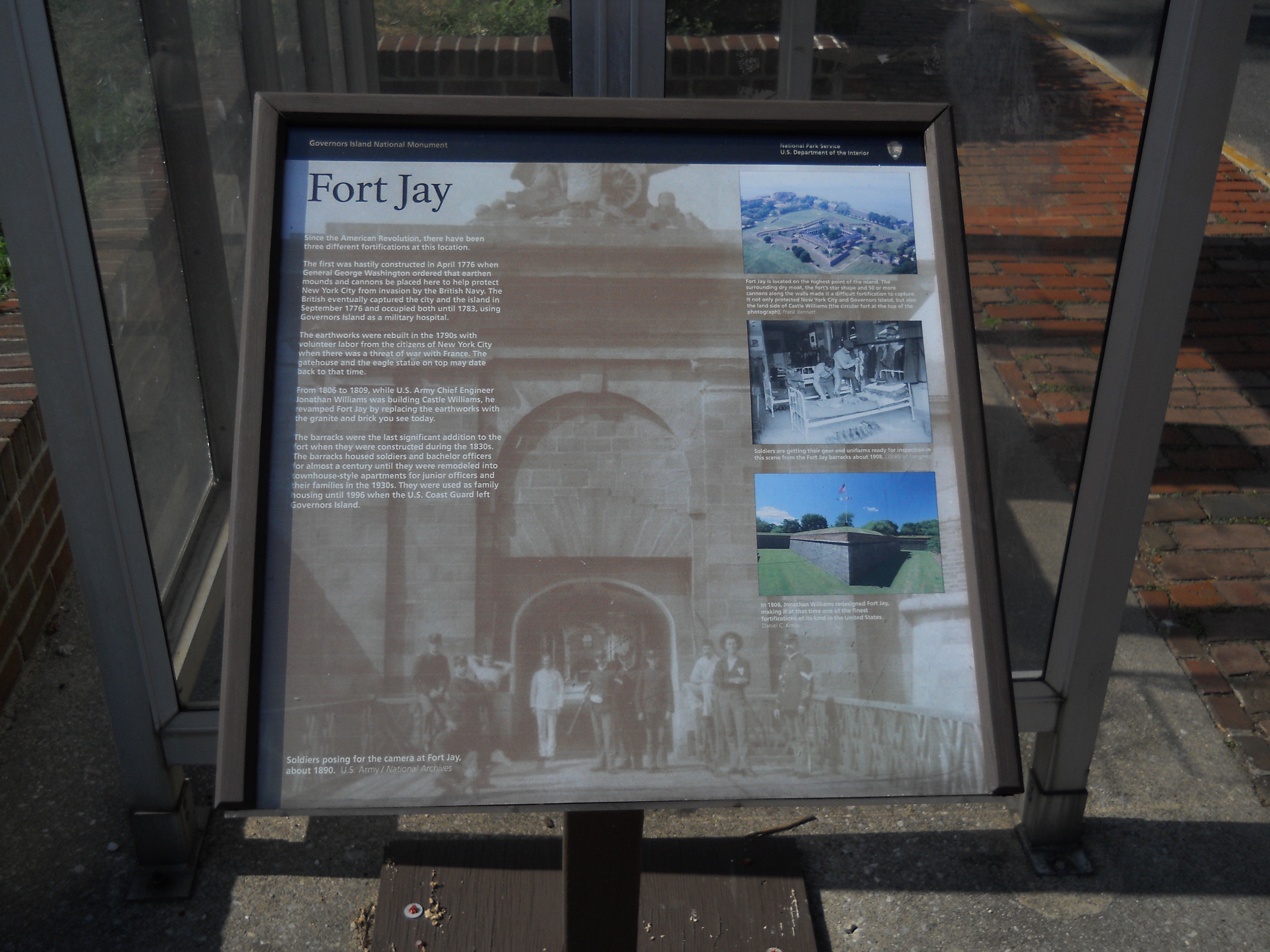 Fort Jay was initially built in 1776 to protect New York City from the British Navy, and although it was not completely successful, concerns about the fort aided Washington's strategic retreat after the defeat in the Battle of Brooklyn. The fort was named for John Jay, one of the country's founding fathers.