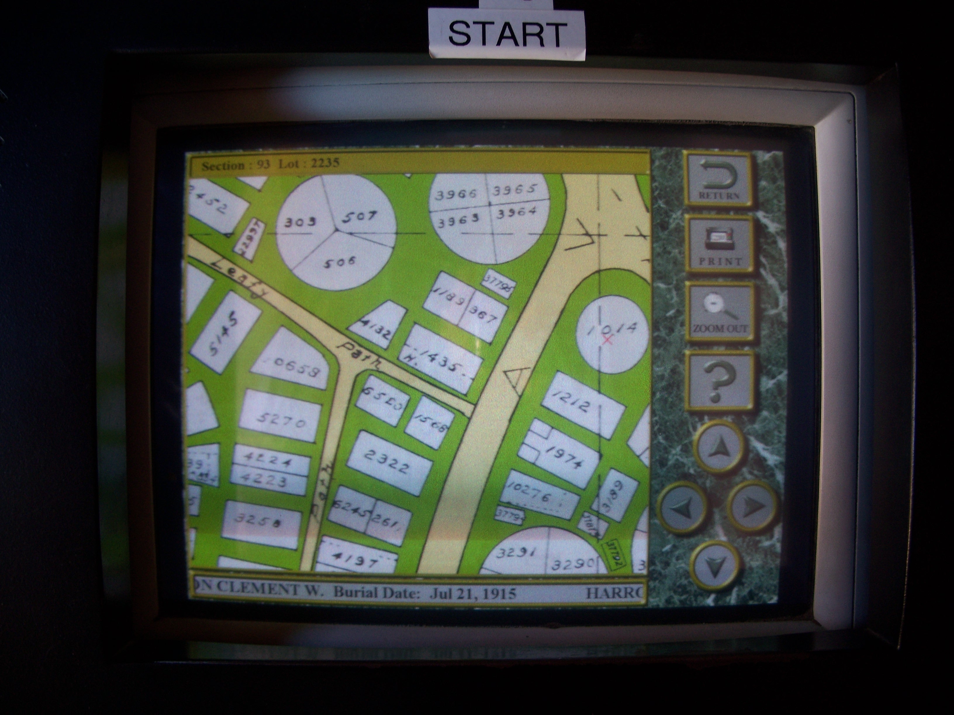 Clement Harron is listed in the database as being buried in section 93, lot 2235, although the displayed map places him in lot 1014. There is one headstone in that lot, although it appears to be older than 1915 and what few legible characters are on the stone do not appear to spell out Clement or Harron. So, I can't be entirely certain whether or not this is the correct grave location.