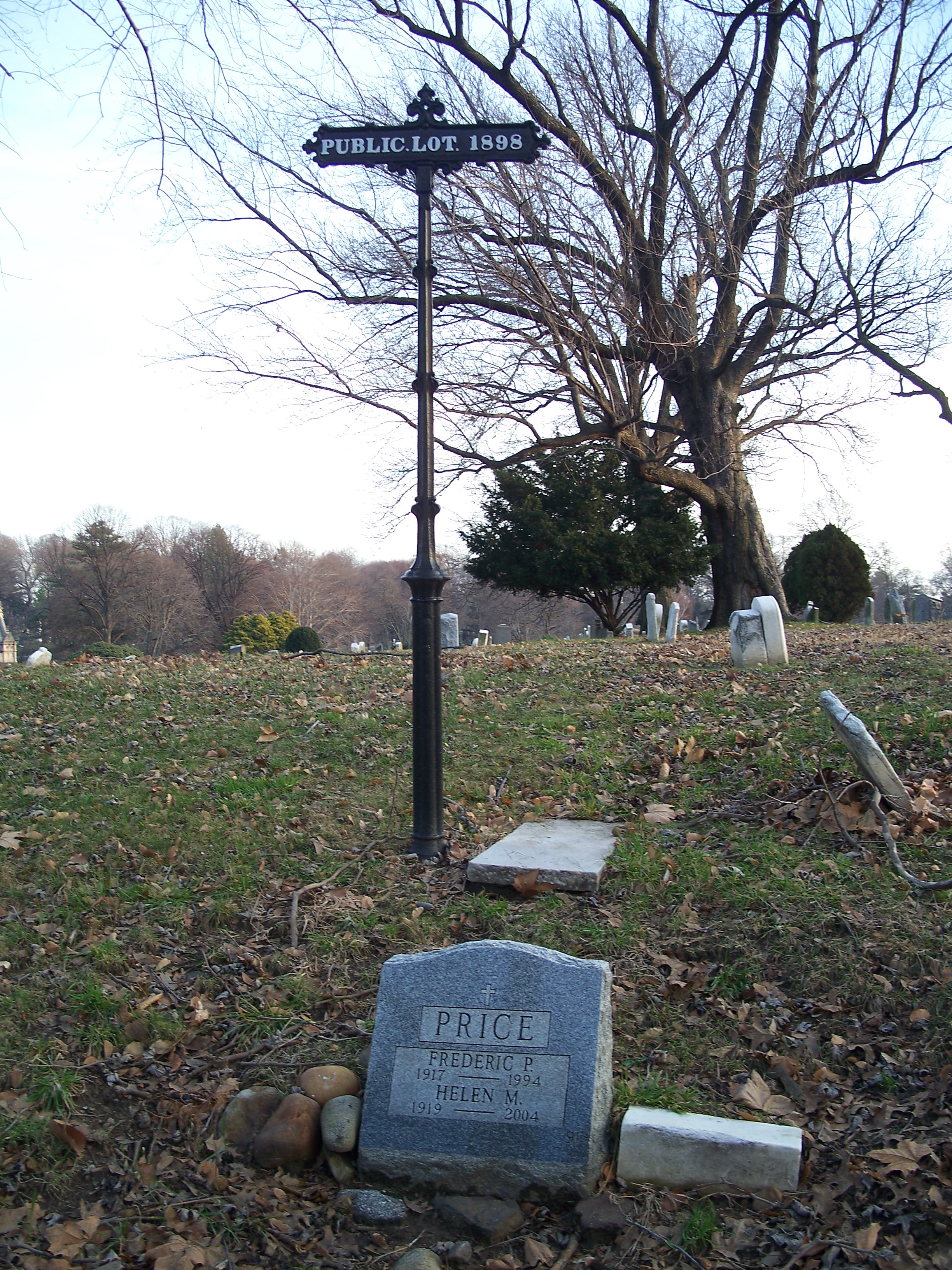 Lot 1898 marker (just to the east of lot 18066) with Price gravestone in slot 18066