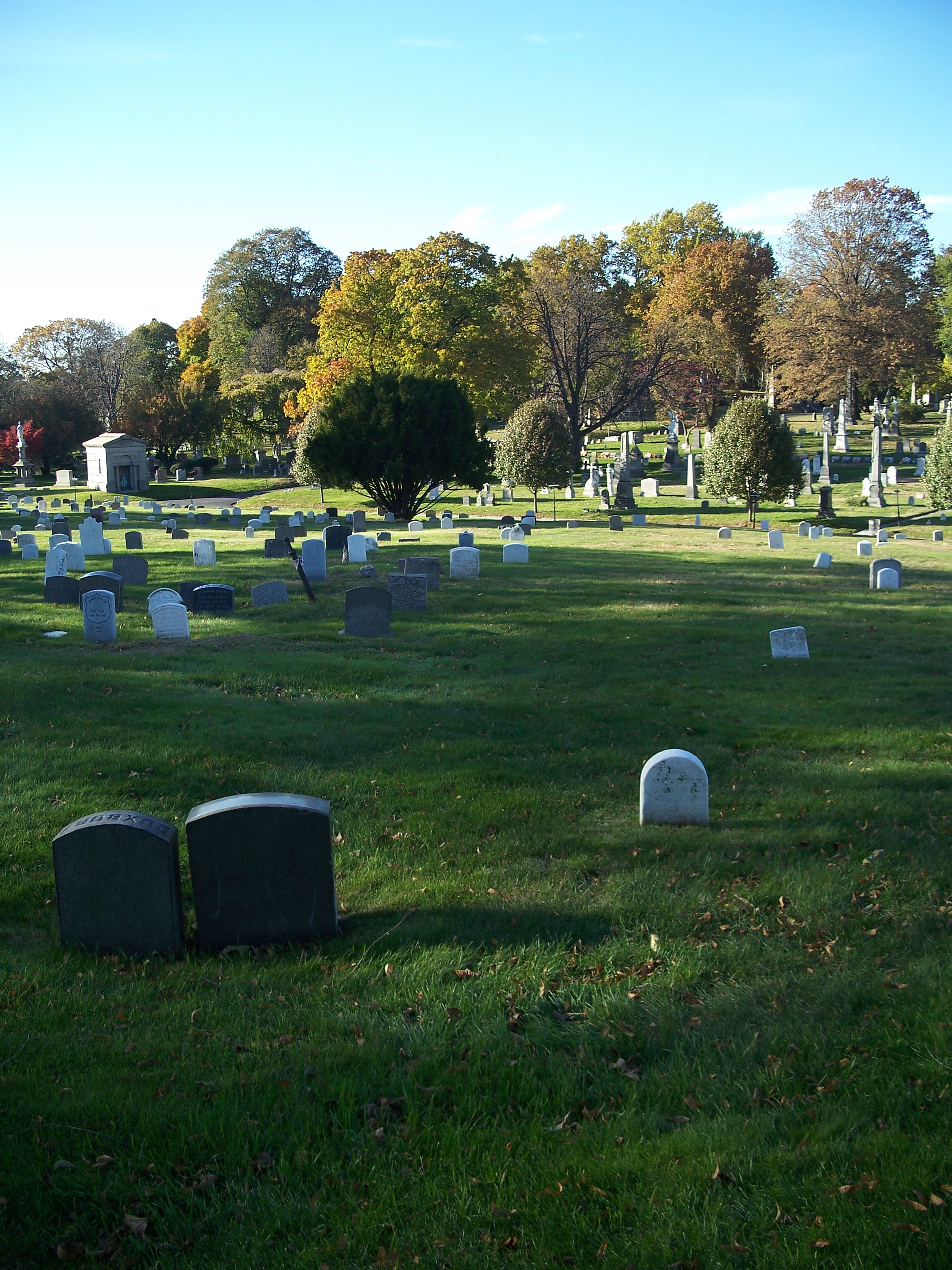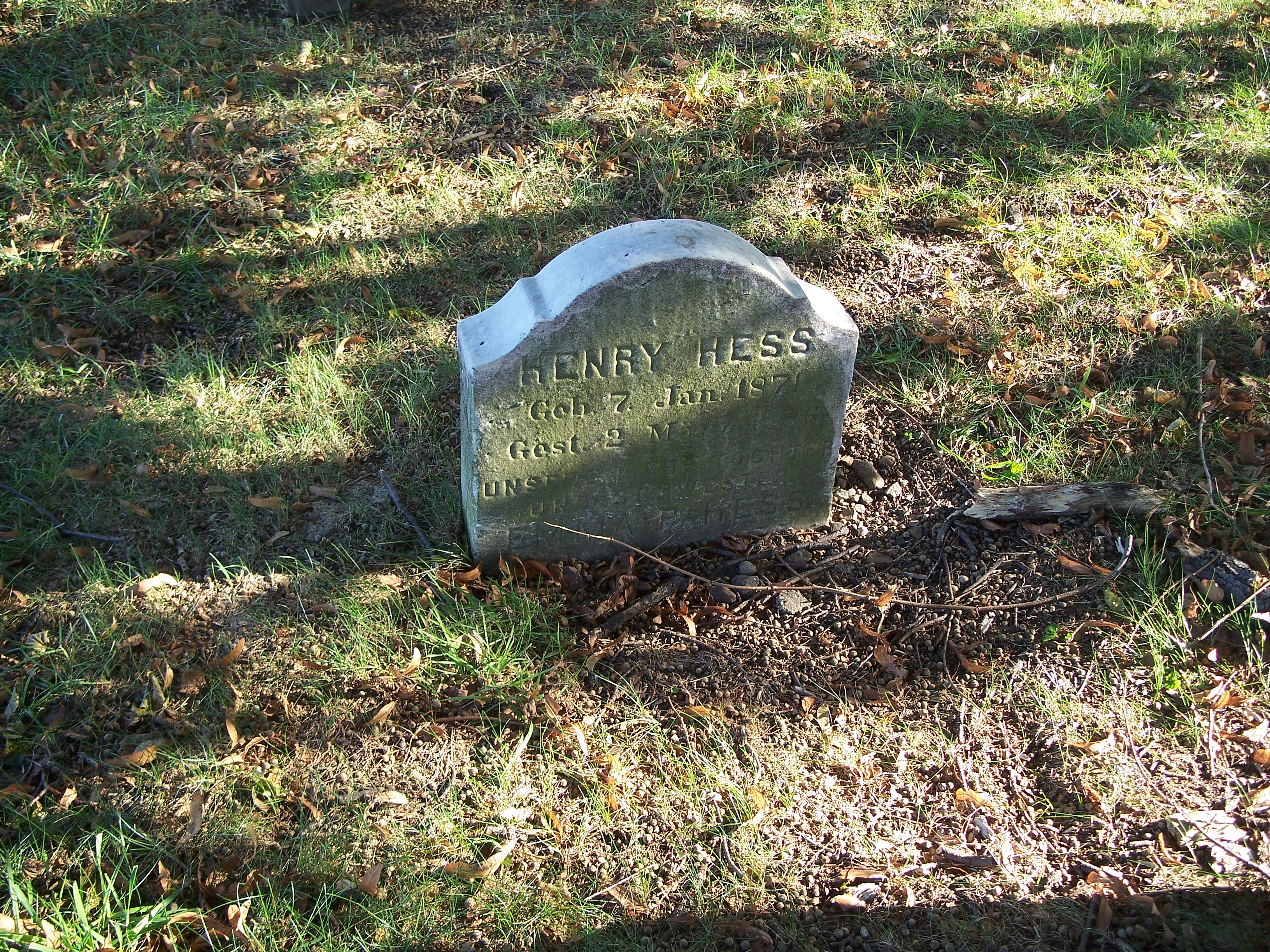 Pauline Huber Hess is listed in the database as being buried in Section D, Lot 18513, Grave 4. That is a narrow, old lot with numerous missing and unreadable stones. While I was unable to locate a stone for Pauline, I was able to locate stones for Henry and Georg Hess, so presumably this was a family plot.
