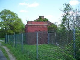 Gate house on north edge of West basin