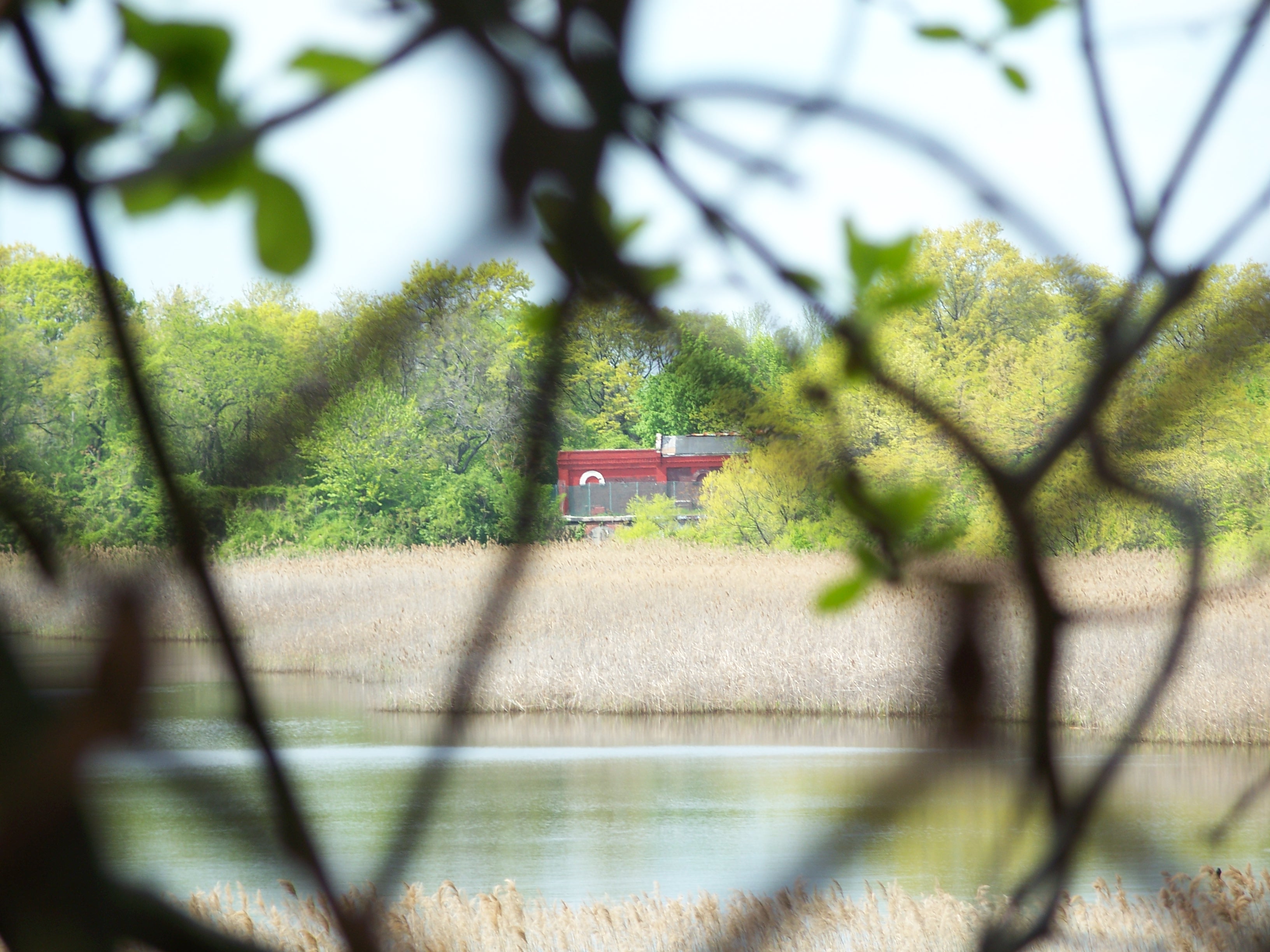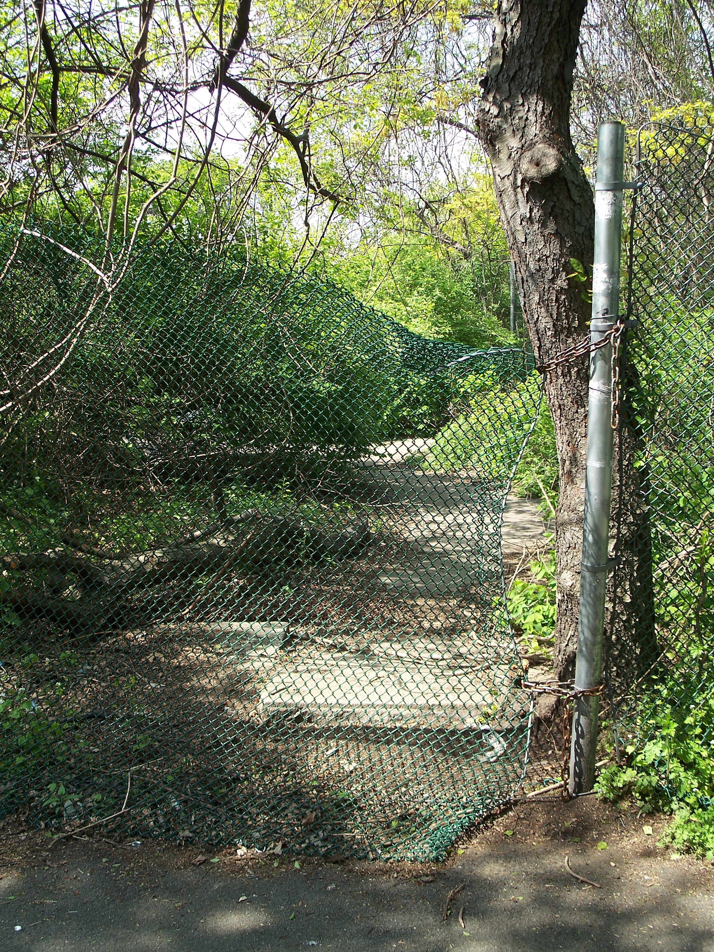 Ridgewood Reservoir is actually a bit difficult to photograph legally. While there are numerous (and obviously well-used) breaches in the fence, concerns for personal safety (and legal status) trump my interest in getting the perfect picture. Pictures have to be taken over or through a 10-foot chain link fence and the view is often obscured by vegetation or the older, delapidated chain-link fence that was left in place when the new fence was erected.