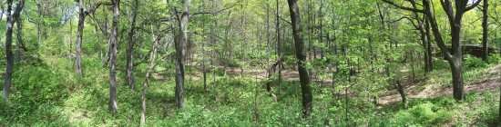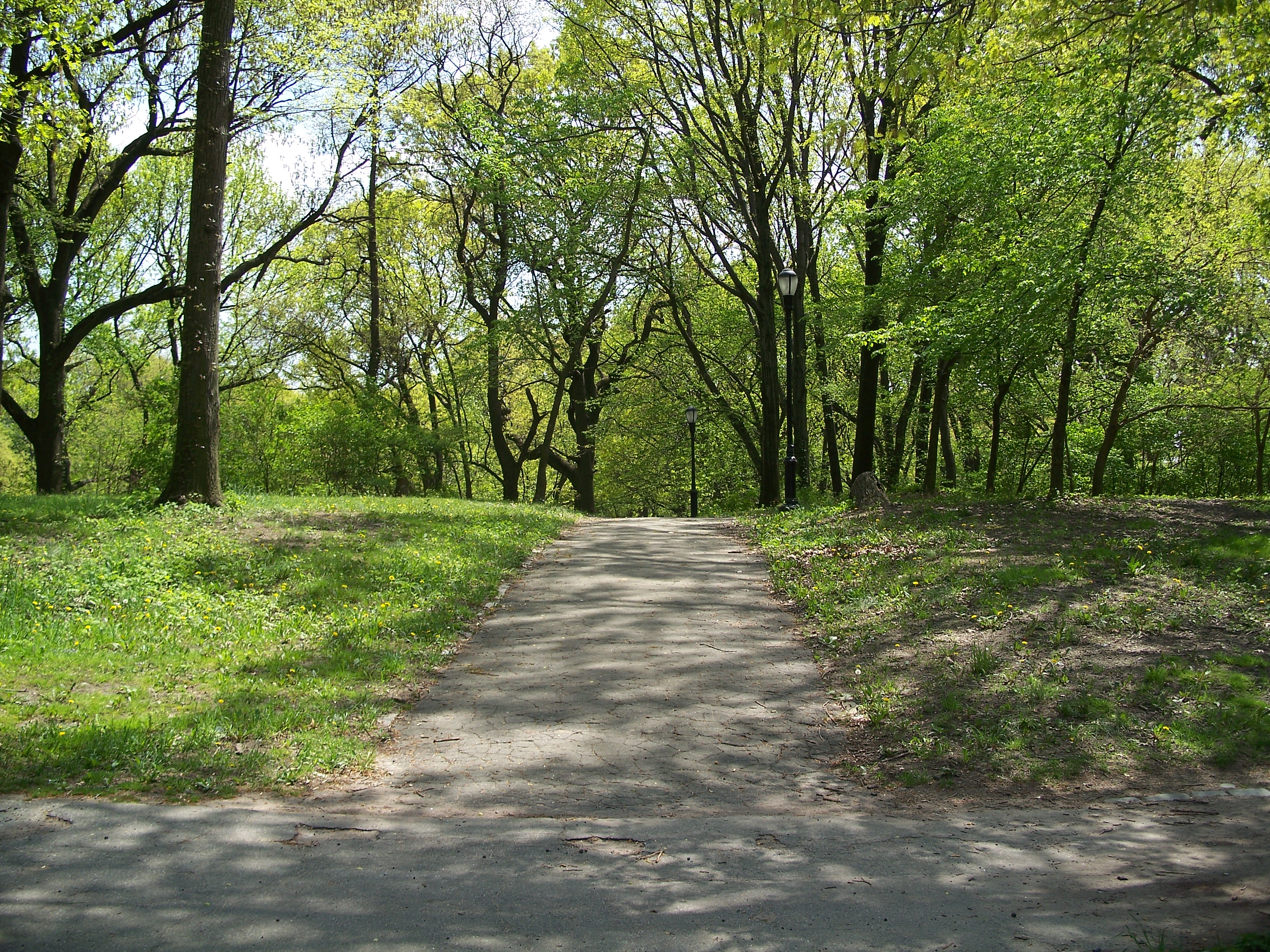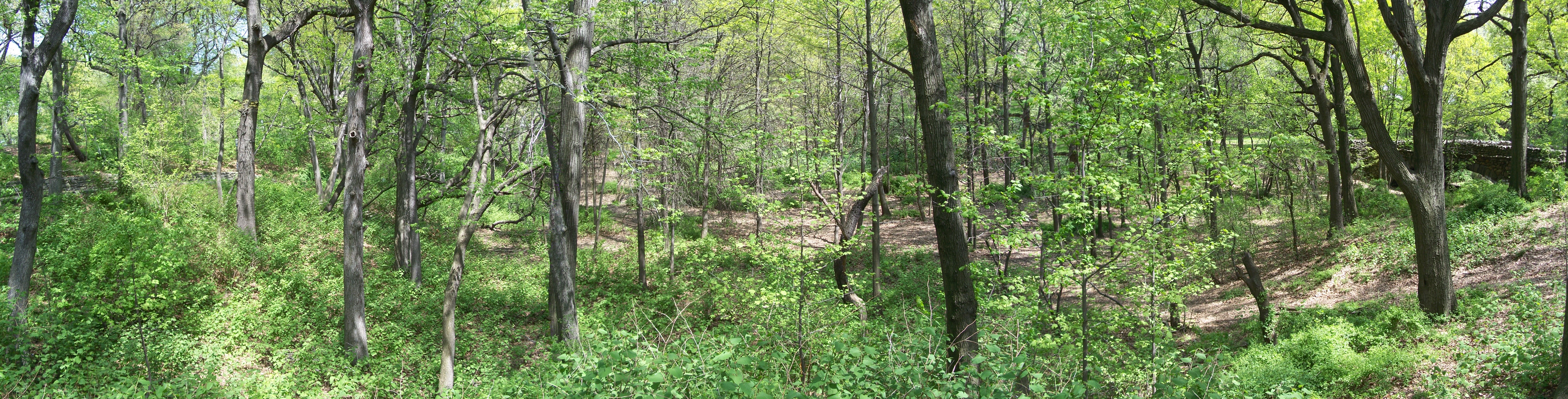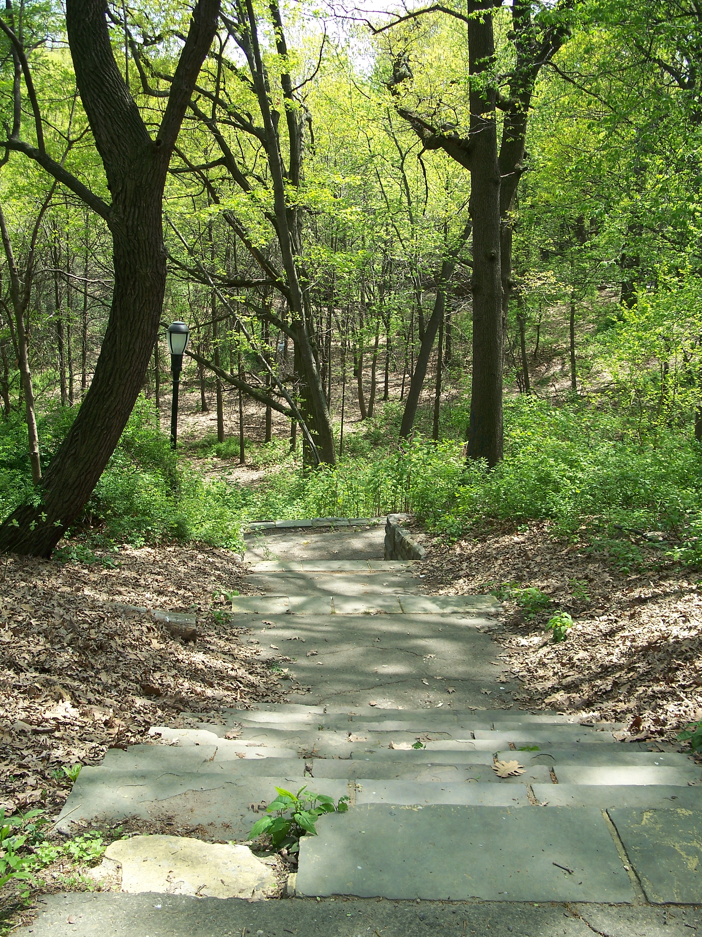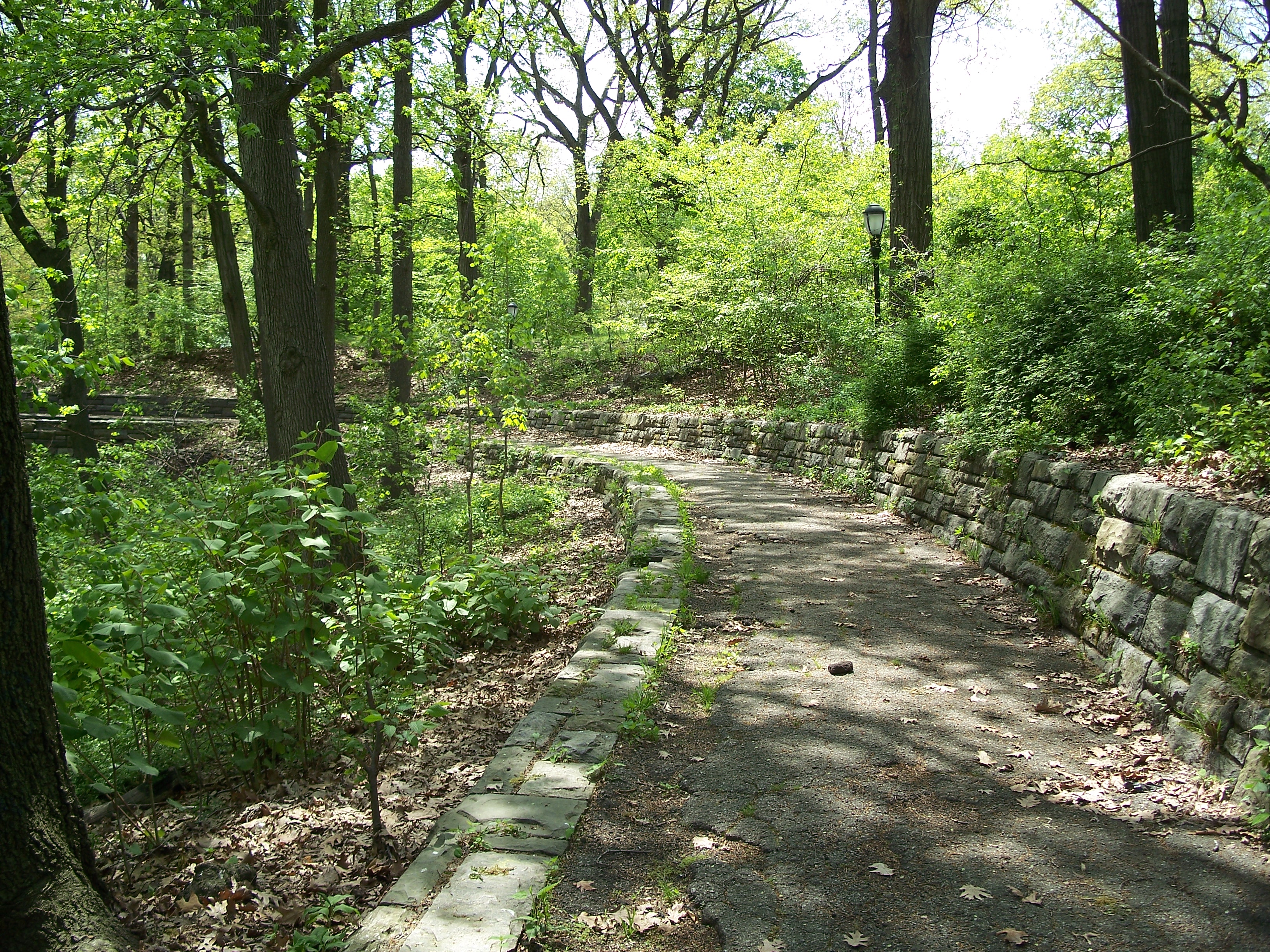 This naturally-occuring glen in the western part of the upper park has a paved walkway around its upper rim and a surprisingly ornate scenic overlook ("the fort"). From inconclusive historic photos, this glen may have contained a pond during the early years of the park (which would explain the overlook) but no trace remains. The glen is now well overgrown with trees and small plants and does not appear to be very carefully maintained or used by local residents.