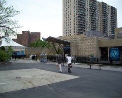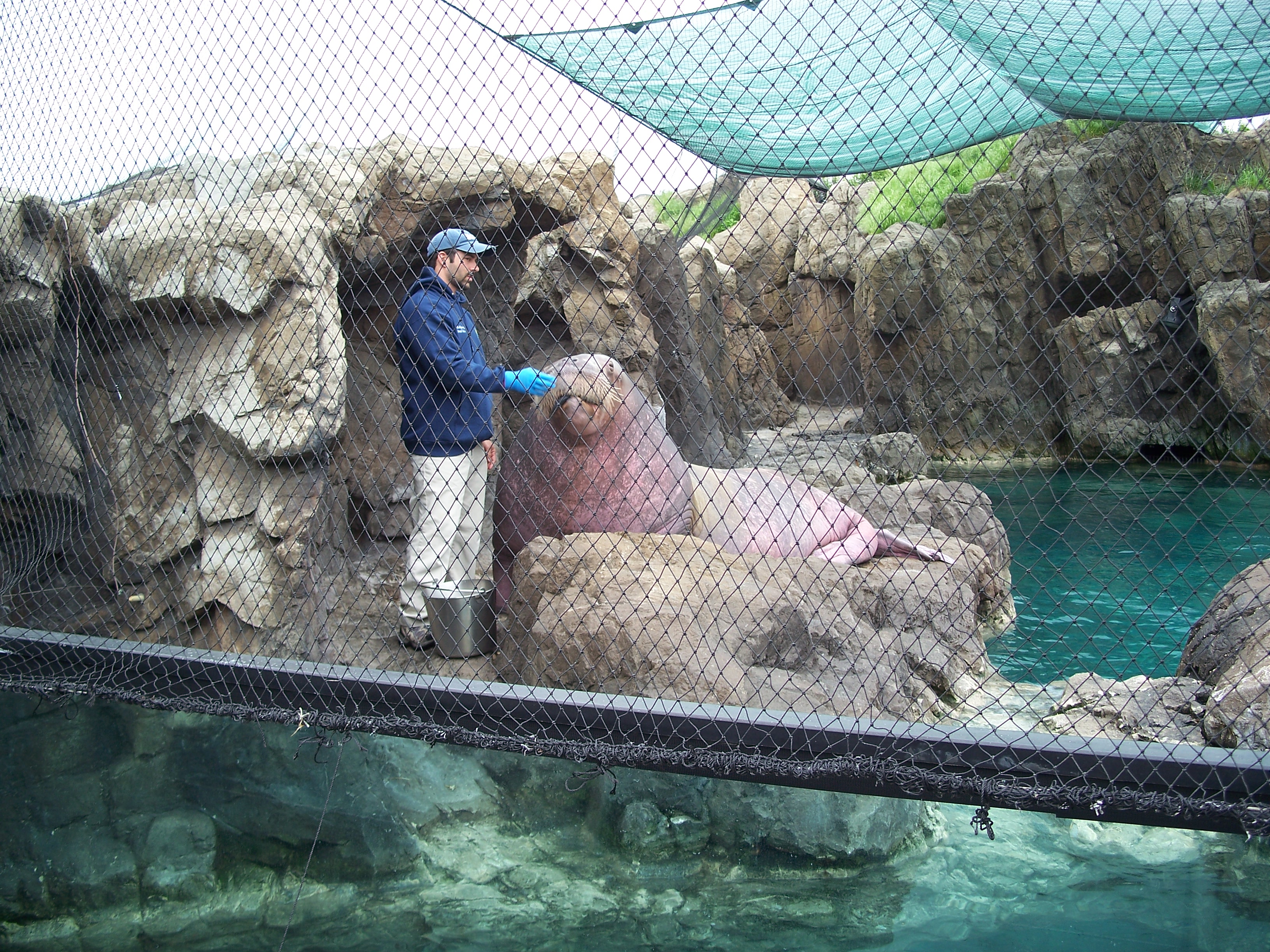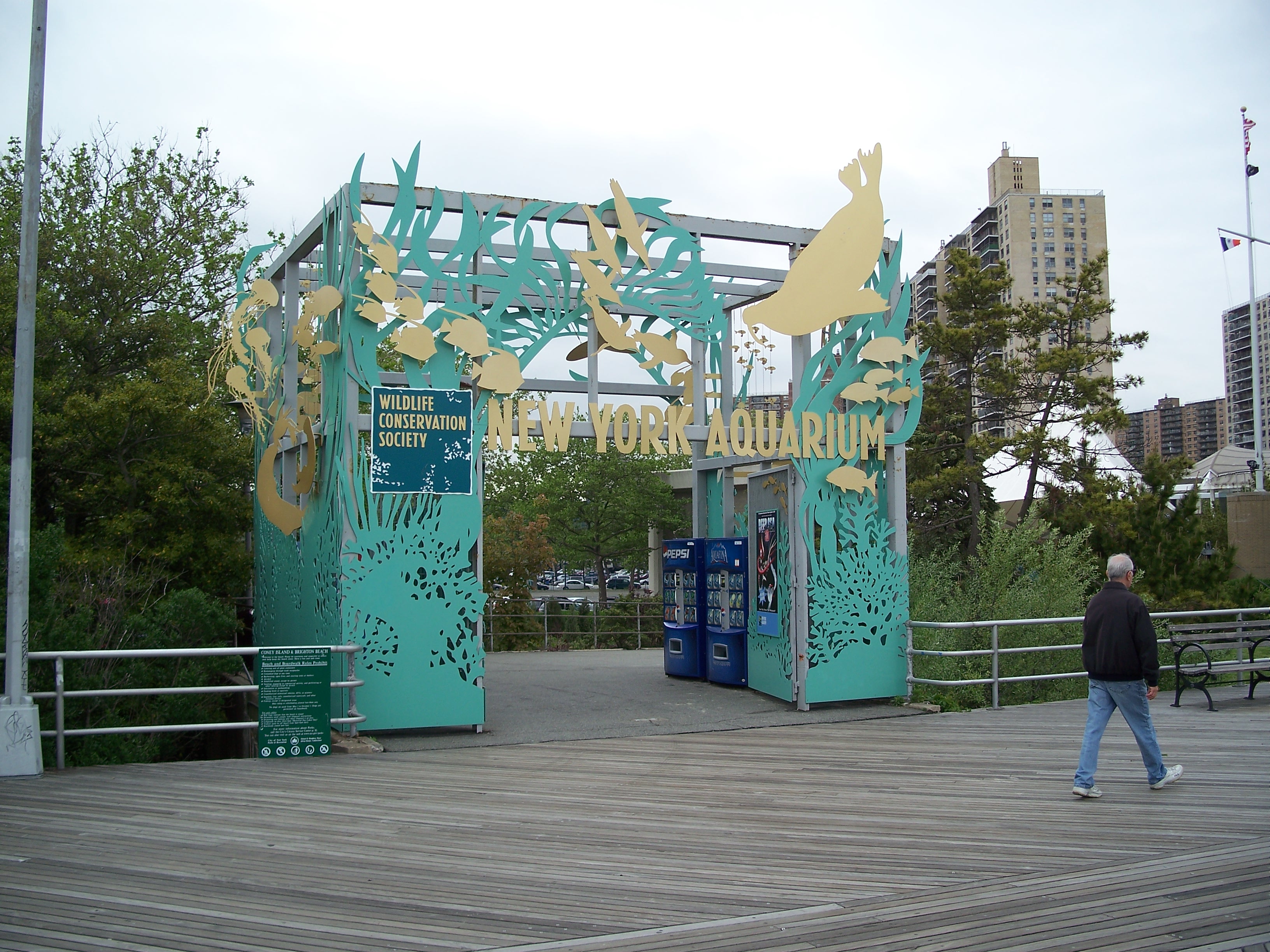The New York Aquarium opened in 1896 at its first home in the Castle Clinton in what is now Battery Park. When that building stood in the path of Robert Moses' planned Brooklyn-Battery Bridge (which morphed into the Brooklyn-Battery Tunnel), the Aquarium was temporarily relocated to the Bronx Zoo. Moses later promoted contruction of its current home on Coney Island, which opened in 1957.