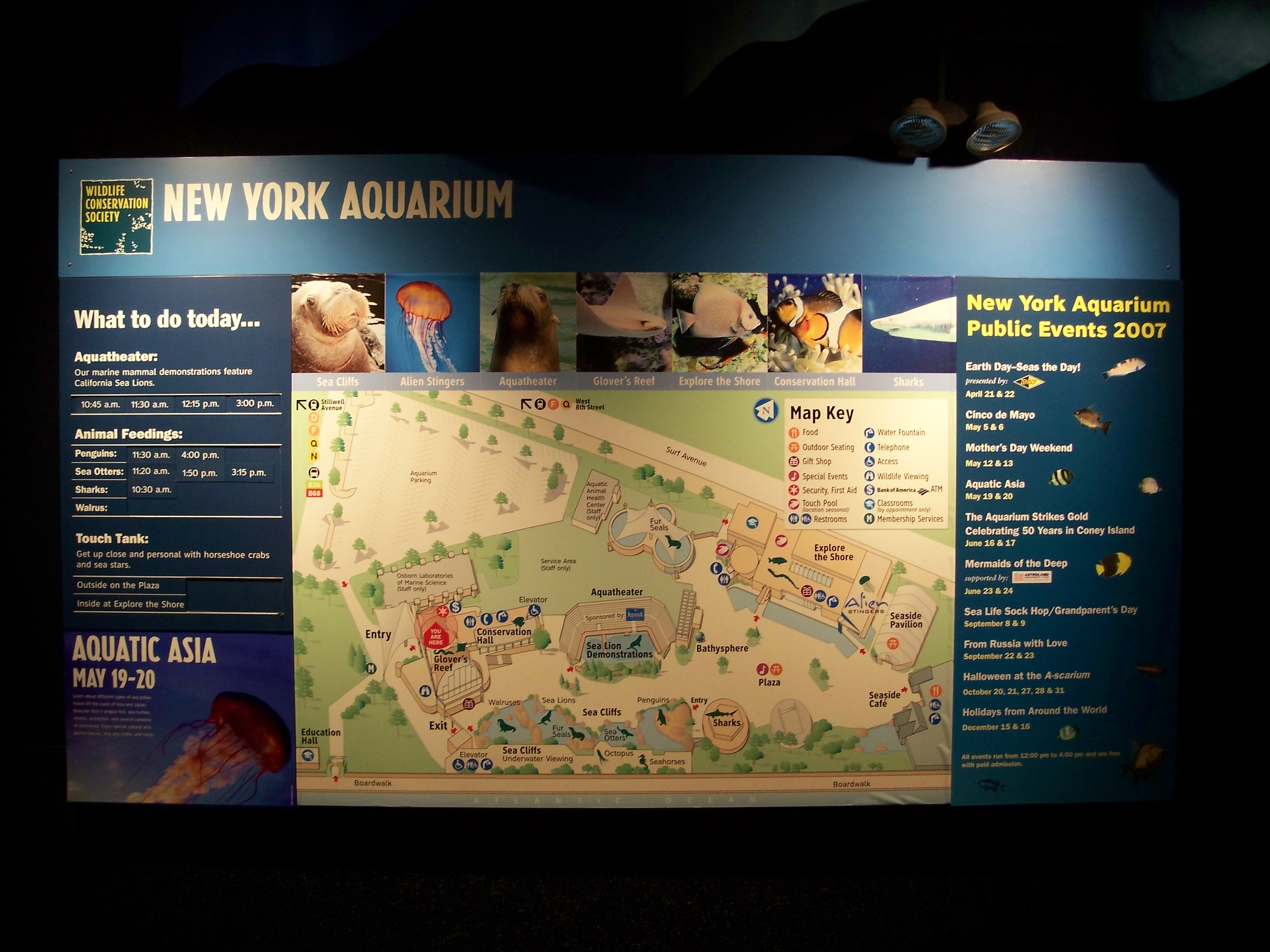 It's not an overwhelmingly large facility and can be pleasantly traversed in an afternoon. The Aquarium sits on 14 acres by the sea and is home to over 350 species of aquatic wildlife and over 8,000 specimens. It was adopted by the New York Zoological Society in 1902, an organization now known as the Wildlife Conservation Society that also runs the zoos in the Bronx, Central Park, Queens and Prospect Park.