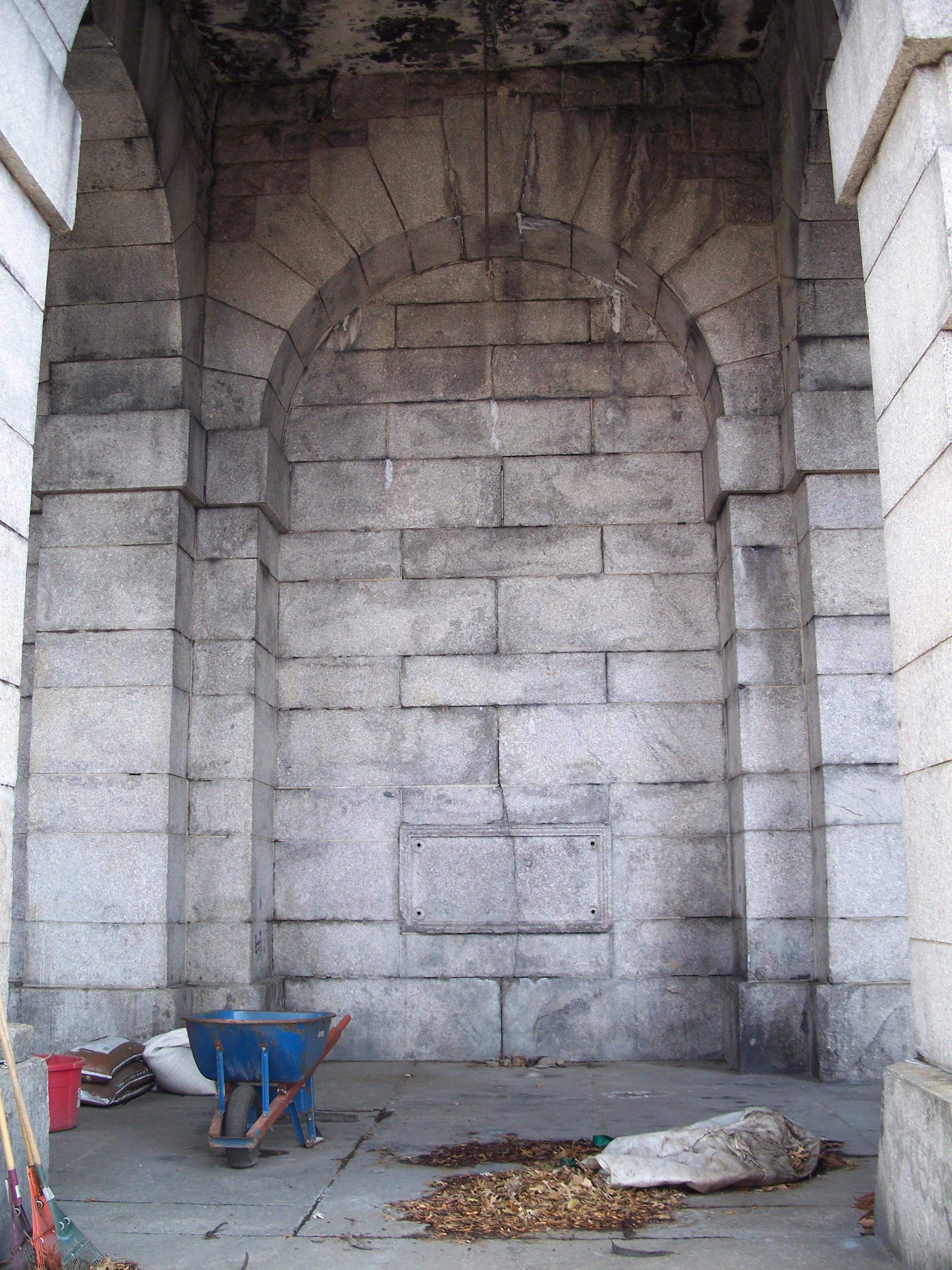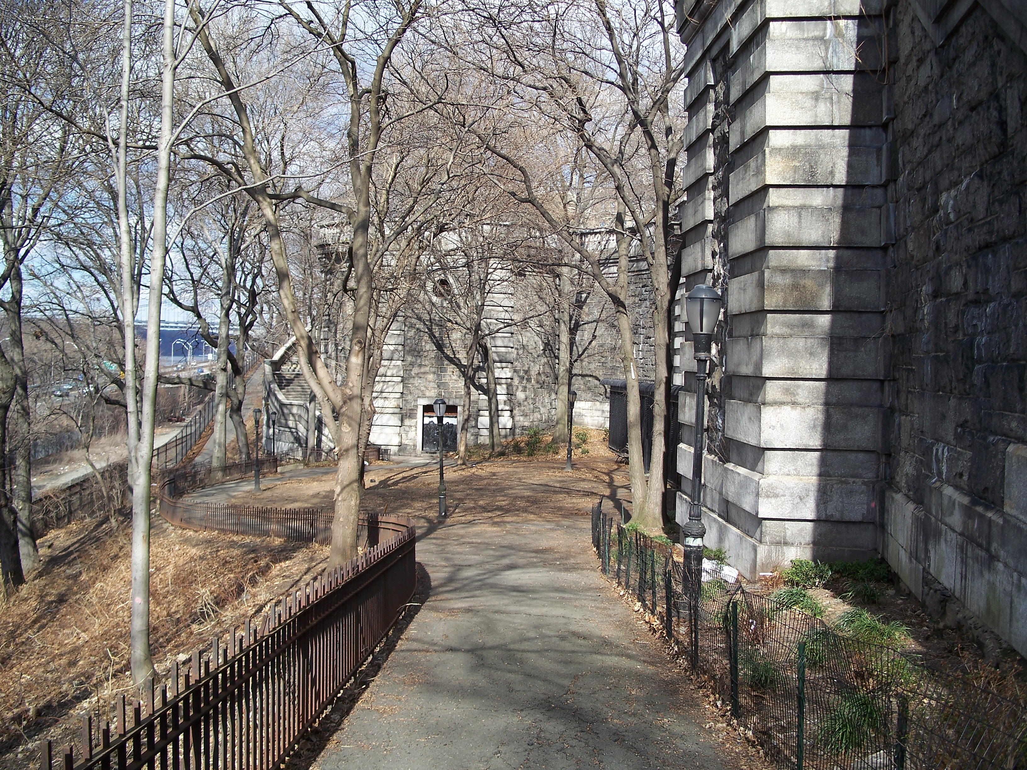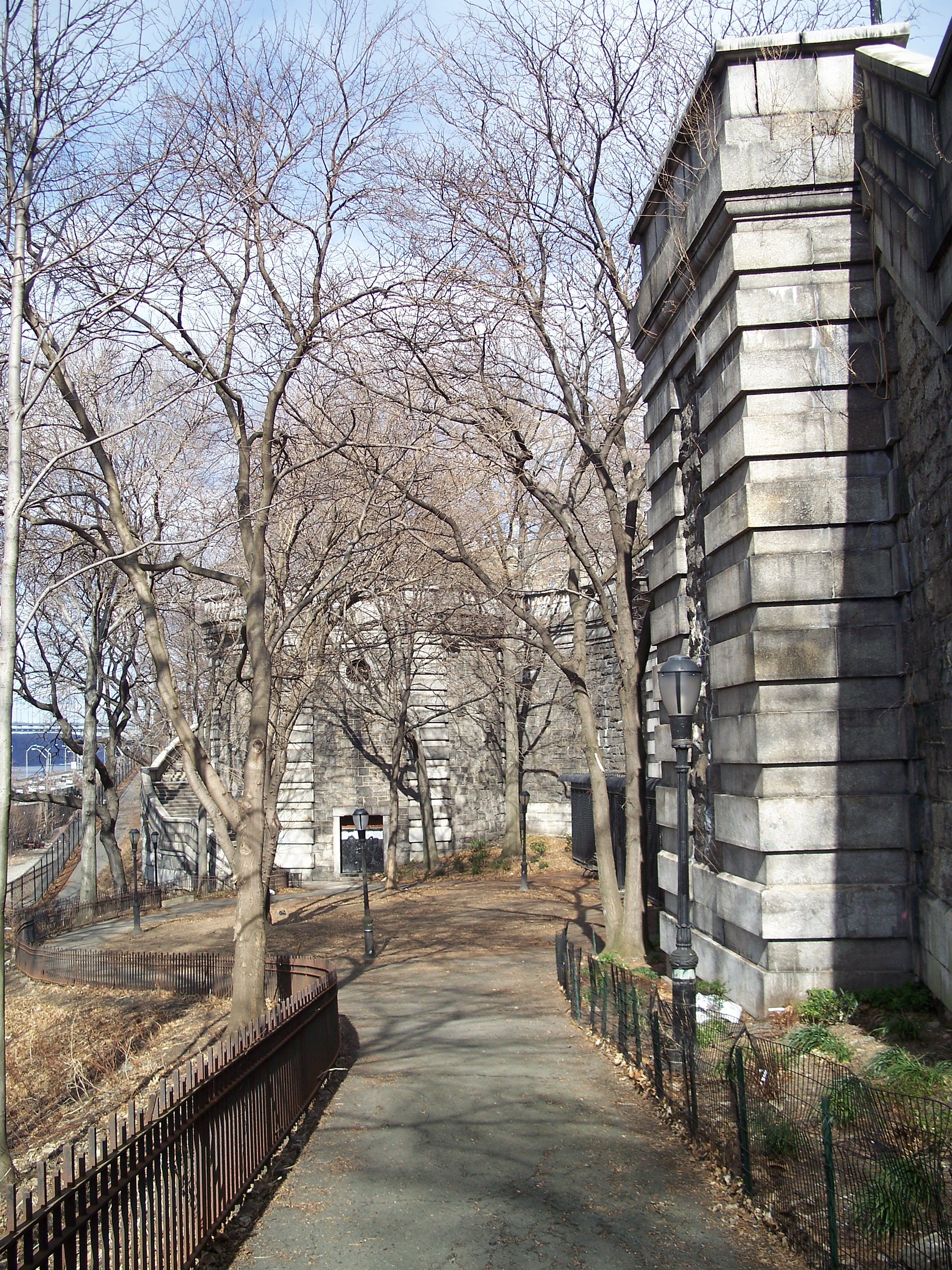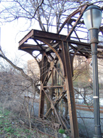 This ornate overlook and staircase structure also used to be the location of a gantry over the railroad tracks. It may have been a pedestrian bridge prior to the 1934 park improvement, but it only served to carry some conduit over the tracks when I visited in the Spring of 2005. When I returned in 2008, it was gone.