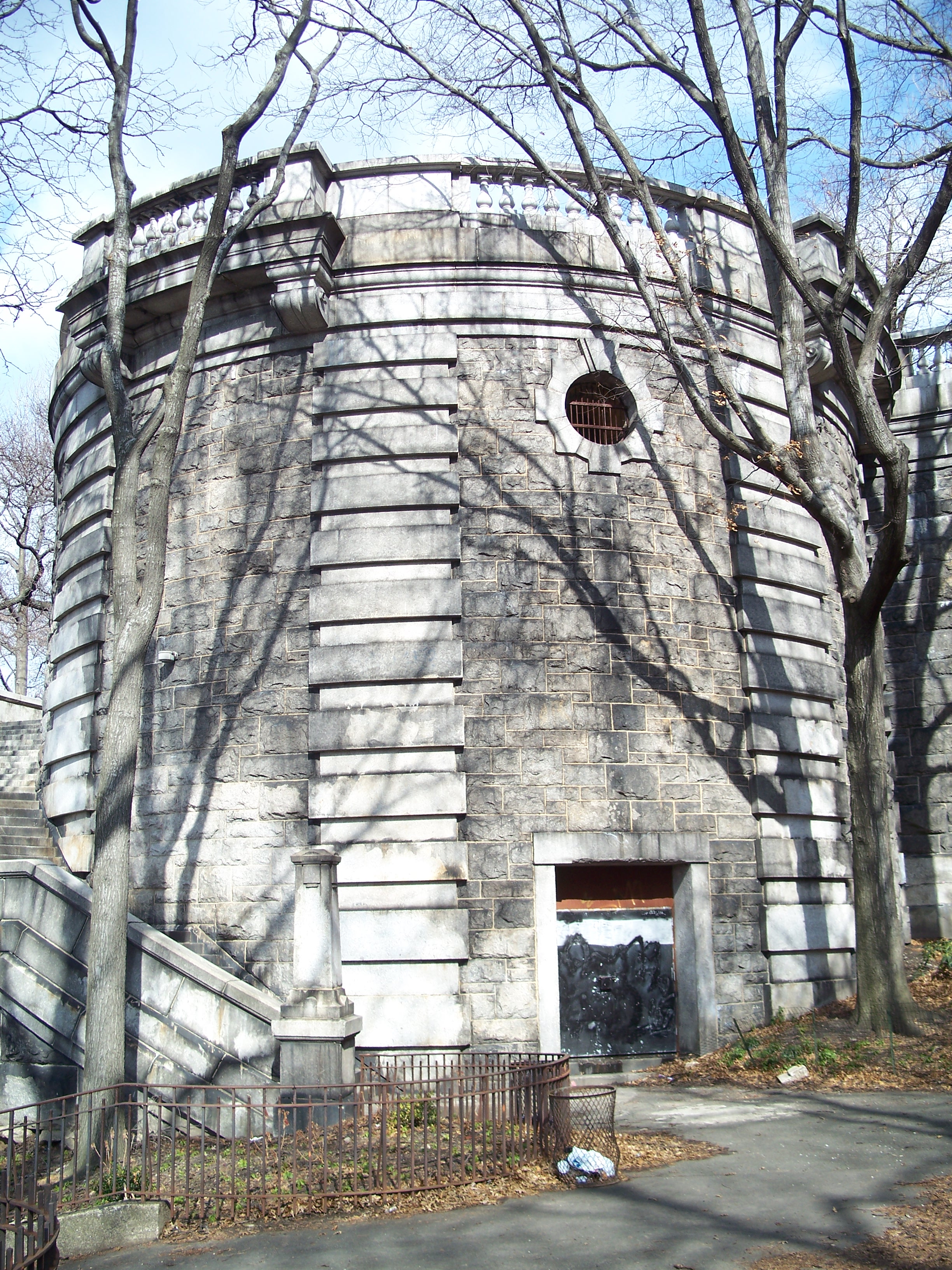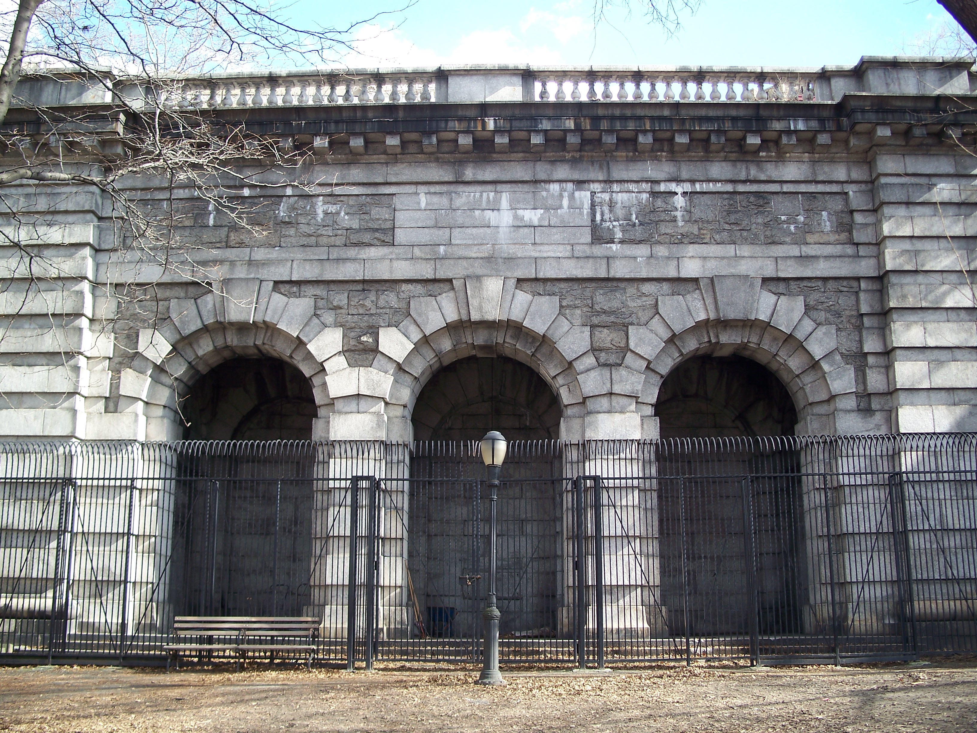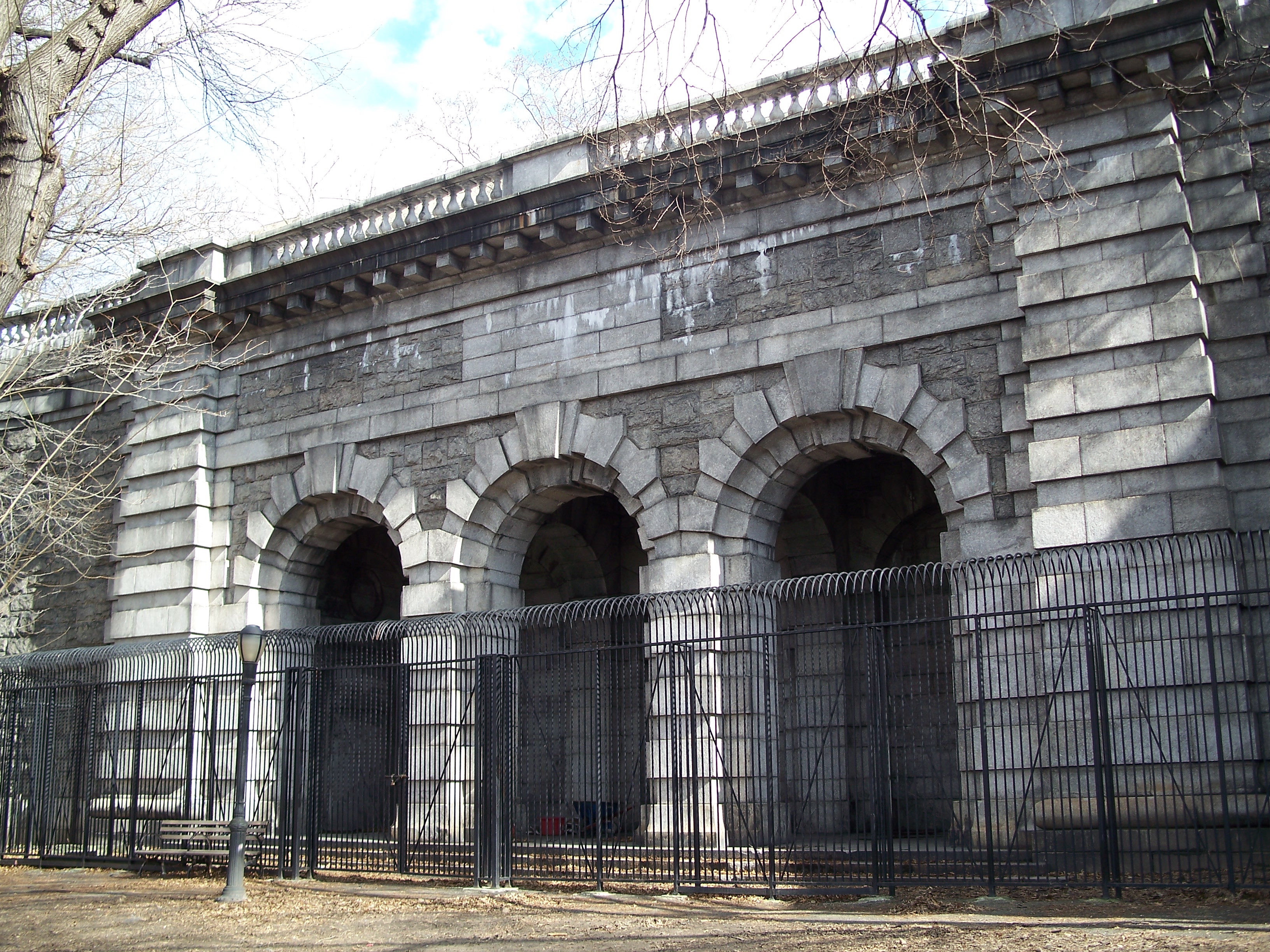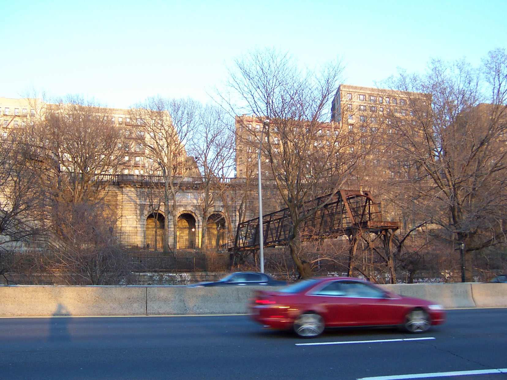 This ornate overlook and staircase structure also used to be the location of a gantry over the railroad tracks. It may have been a pedestrian bridge prior to the 1934 park improvement, but it only served to carry some conduit over the tracks when I visited in the Spring of 2005. When I returned in 2008, it was gone.
