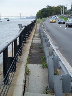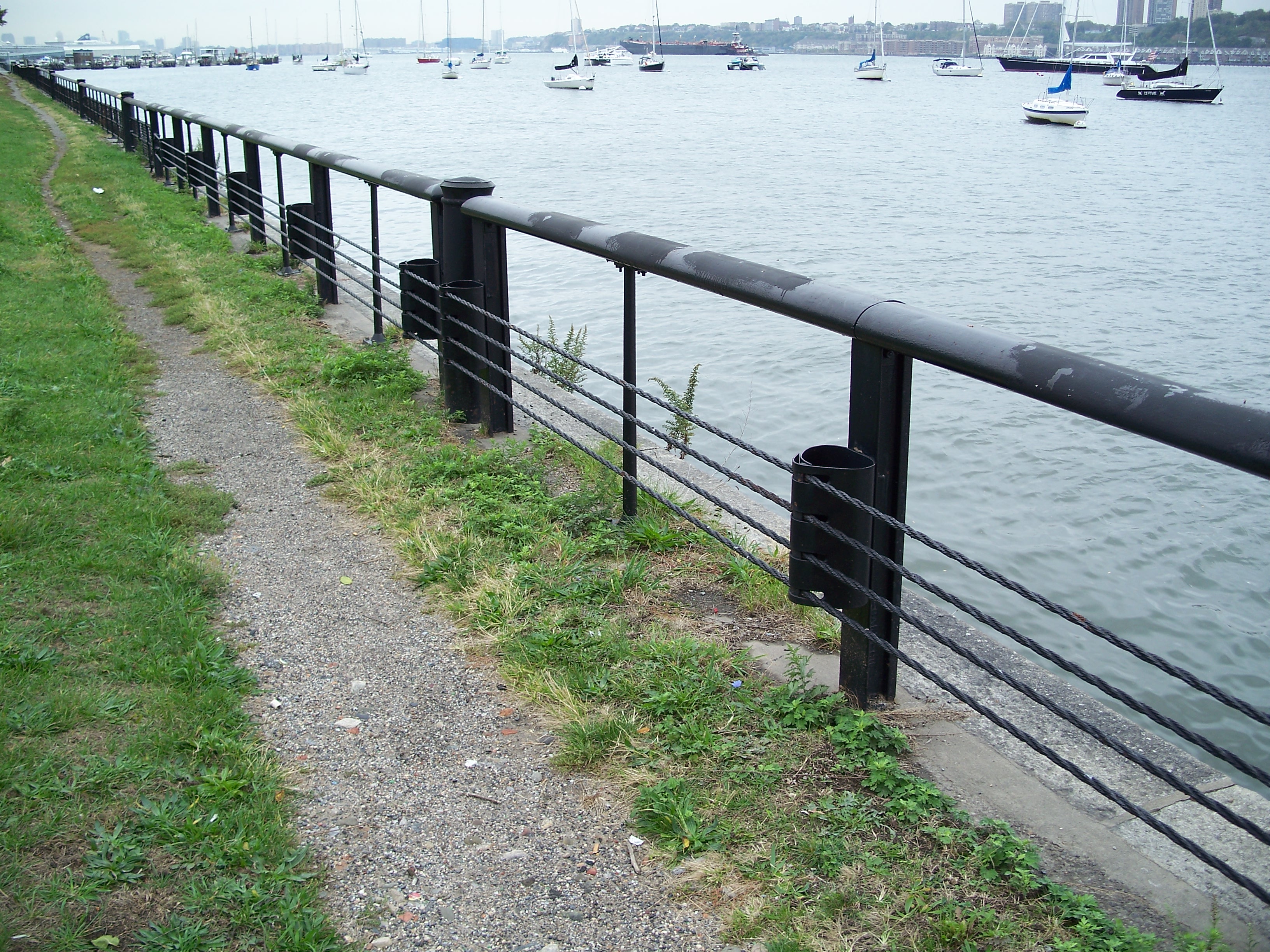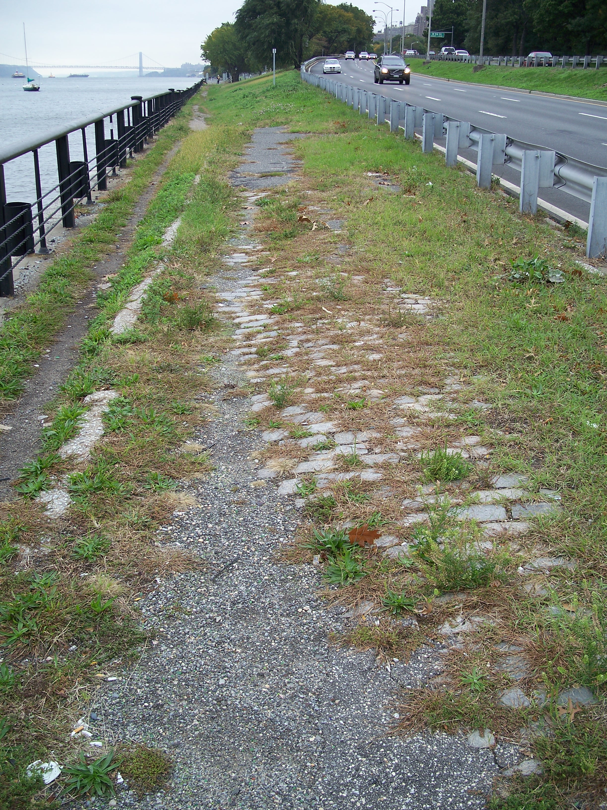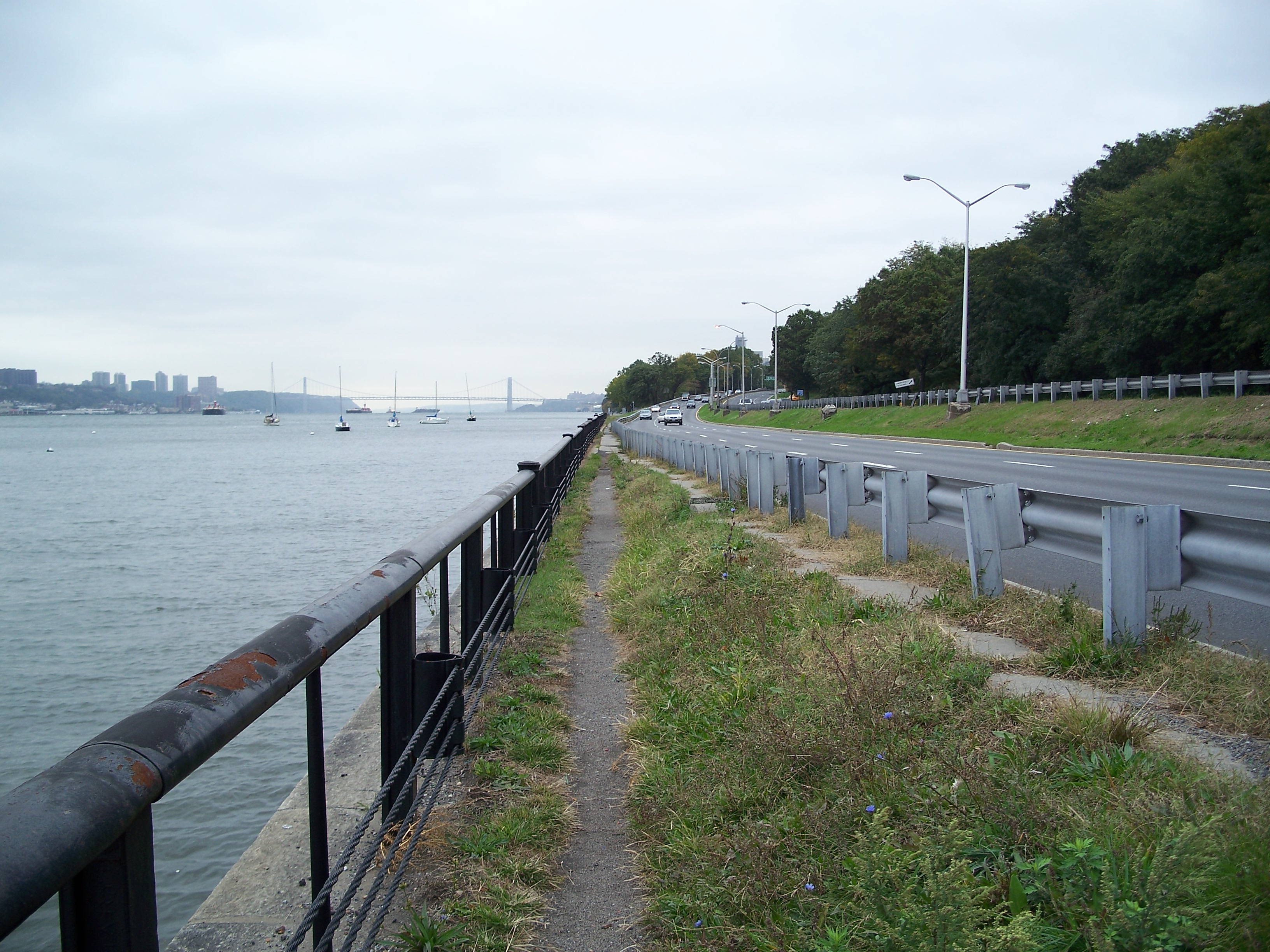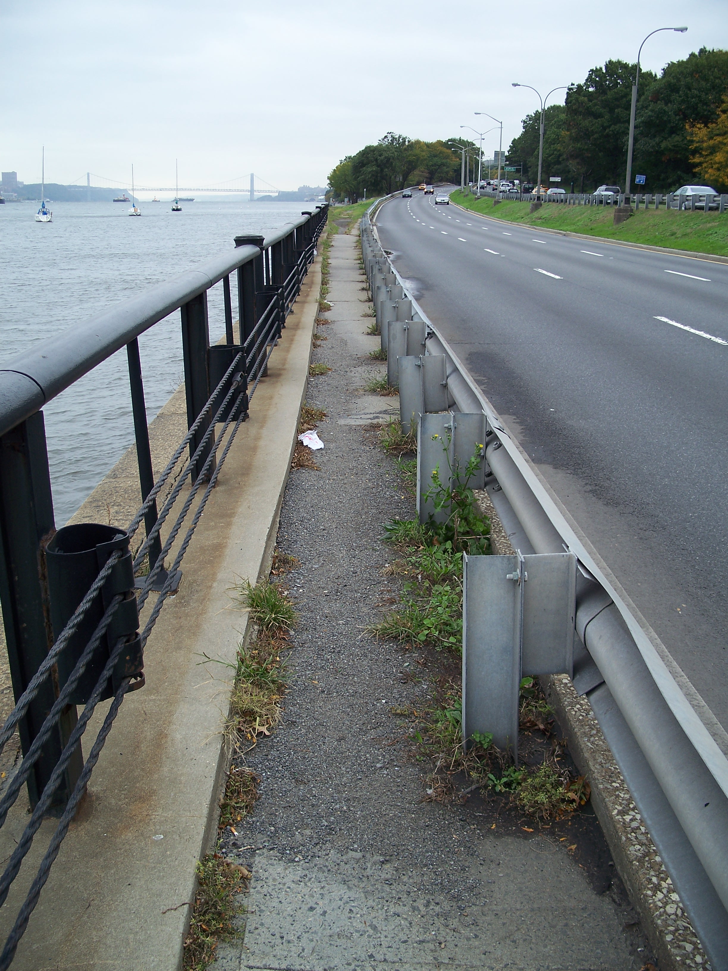 This section of the Hudson riverfront had long been an odd gap in the greenbelt surrounding Manhattan. While there were lovely esplanades just to the south and the north, the placement of the railroad tracks away from the cliffs forces the Henry Hudson Parkway almost flush with the Hudson River, leaving only a narrow walkway for pedestrians. For years, this area had been minimally maintained with signs to the south and north warning pedestrians to cross under the parkway and use the esplanade that is built over the railroad tracks to the east.