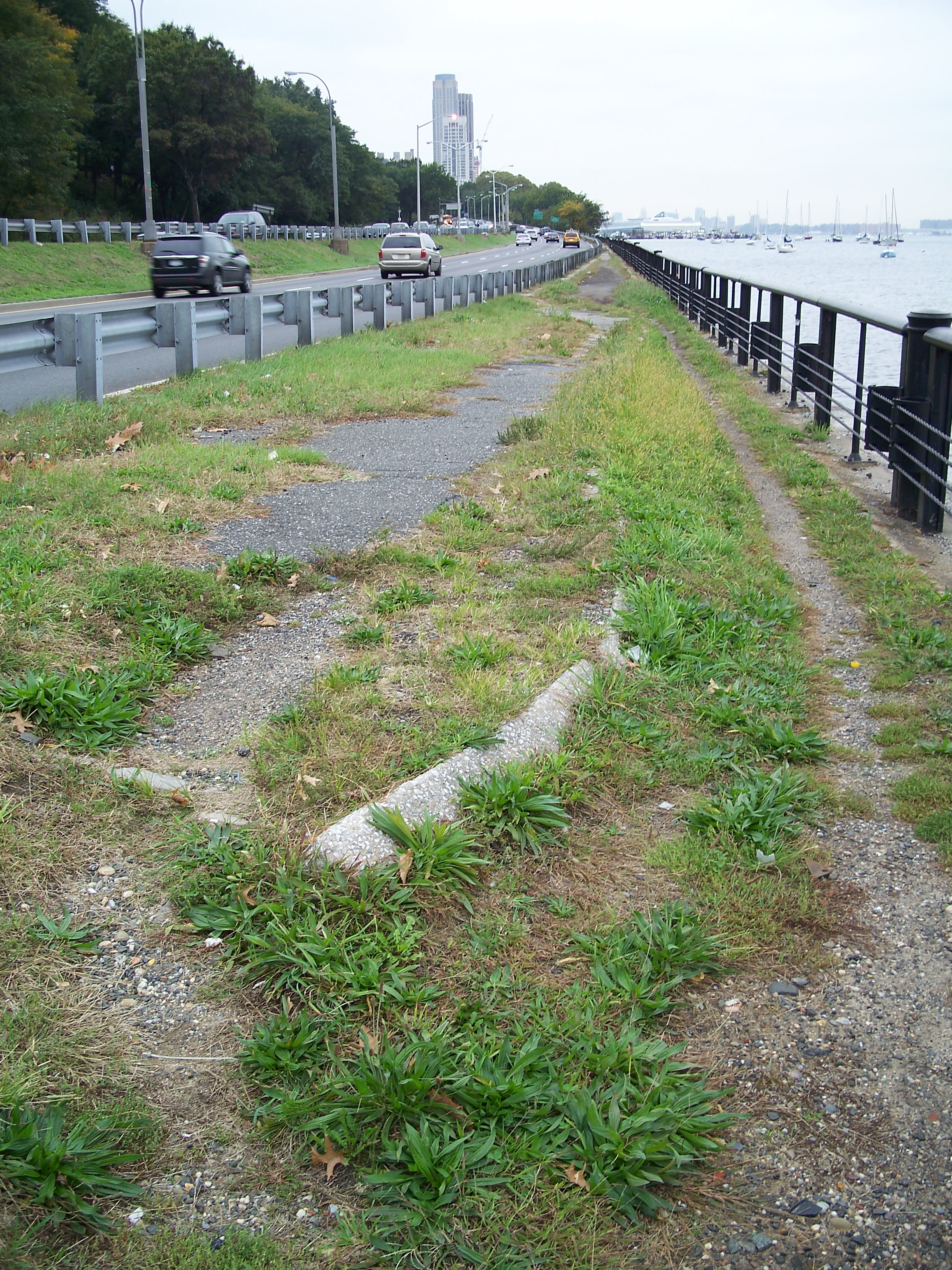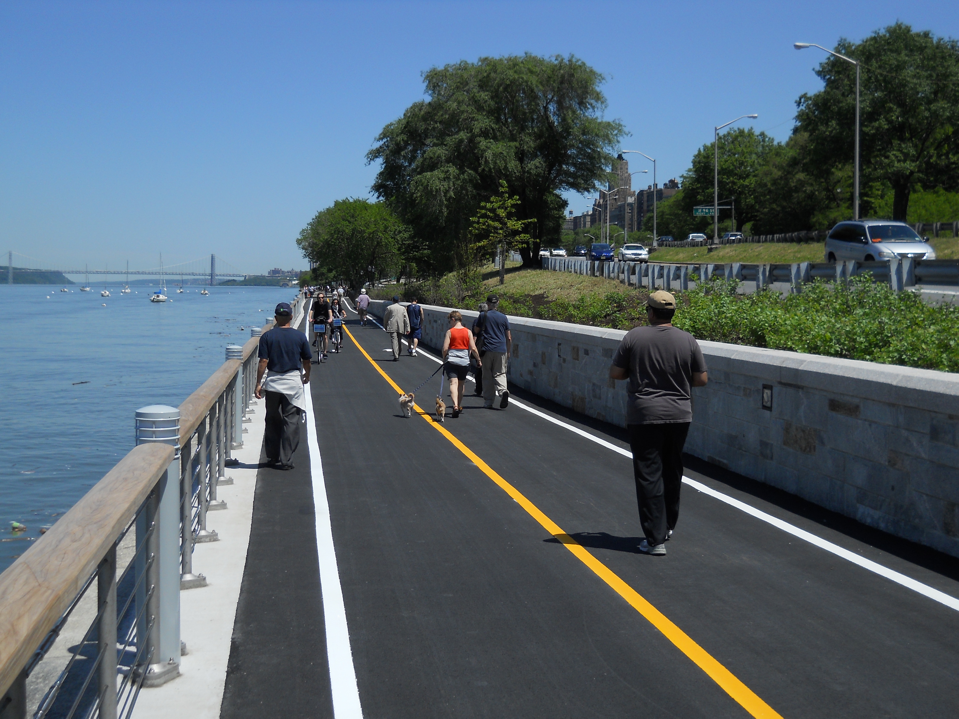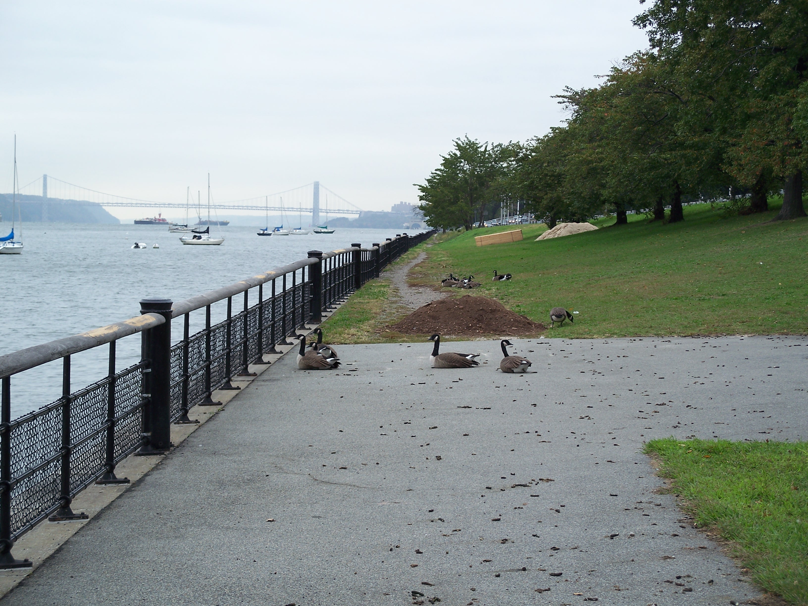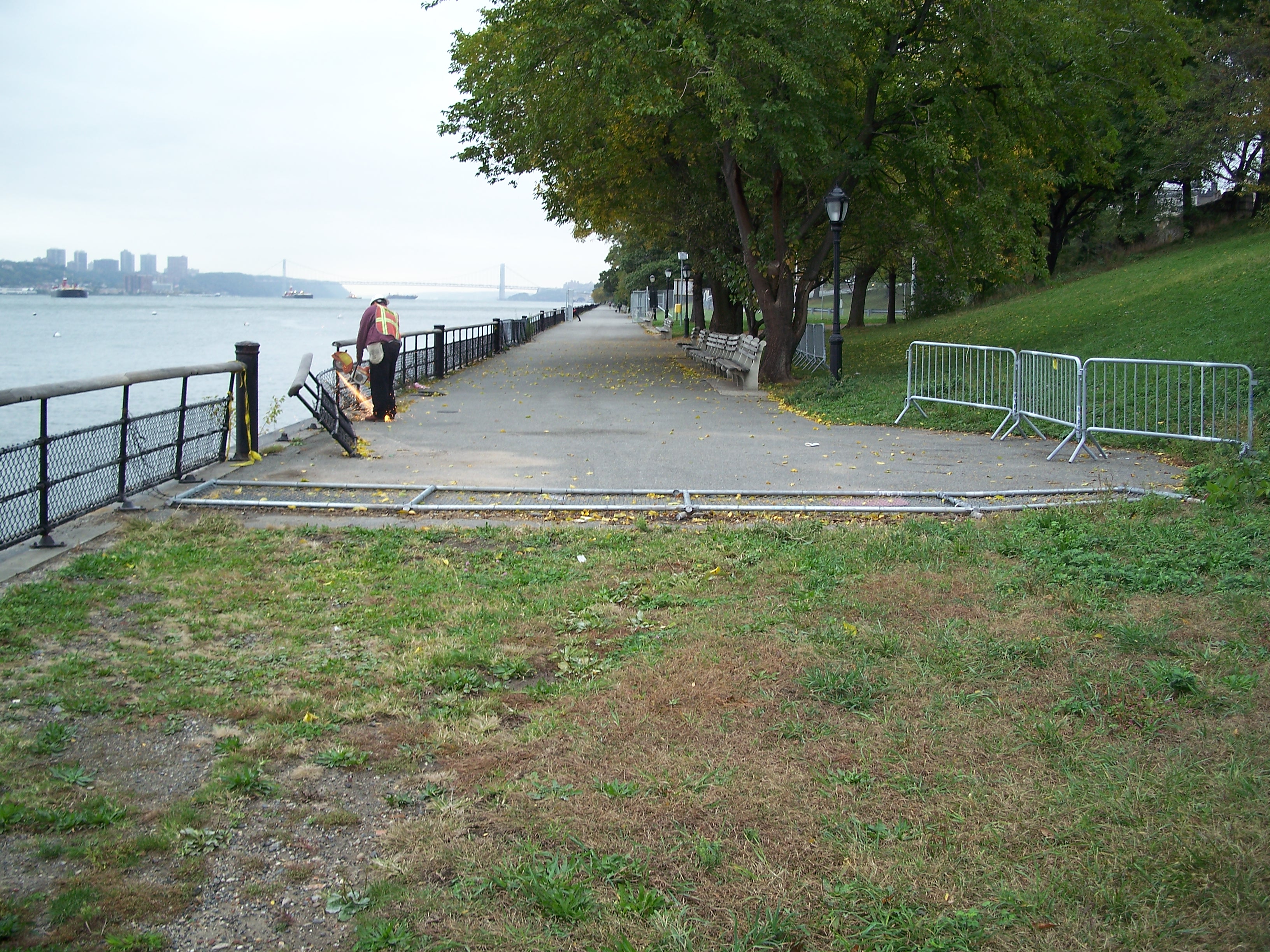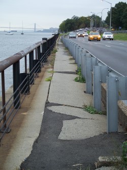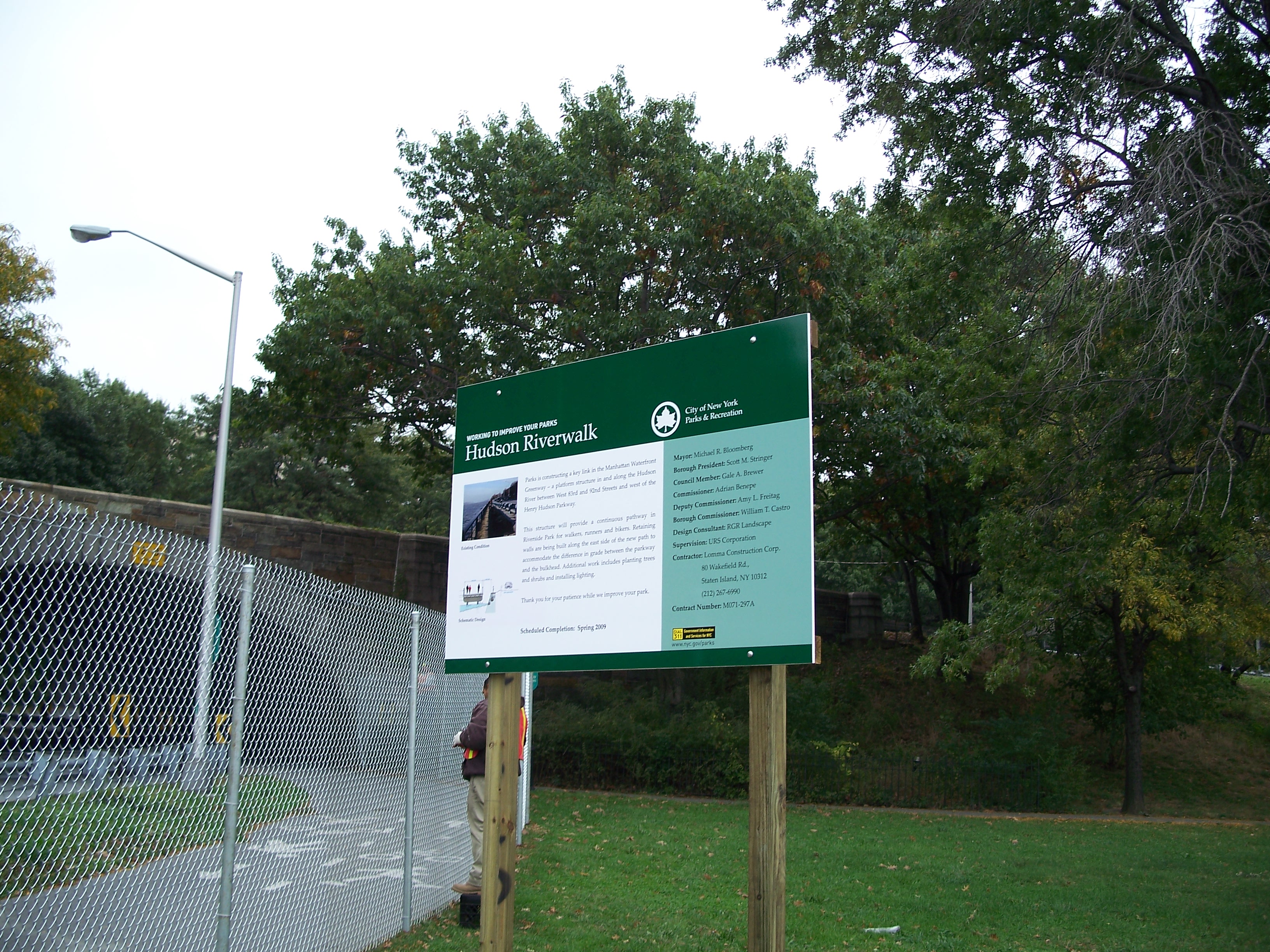 This section of the Hudson riverfront had long been an odd gap in the greenbelt surrounding Manhattan. While there were lovely esplanades just to the south and the north, the placement of the railroad tracks away from the cliffs forces the Henry Hudson Parkway almost flush with the Hudson River, leaving only a narrow walkway for pedestrians. For years, this area had been minimally maintained with signs to the south and north warning pedestrians to cross under the parkway and use the esplanade that is built over the railroad tracks to the east.