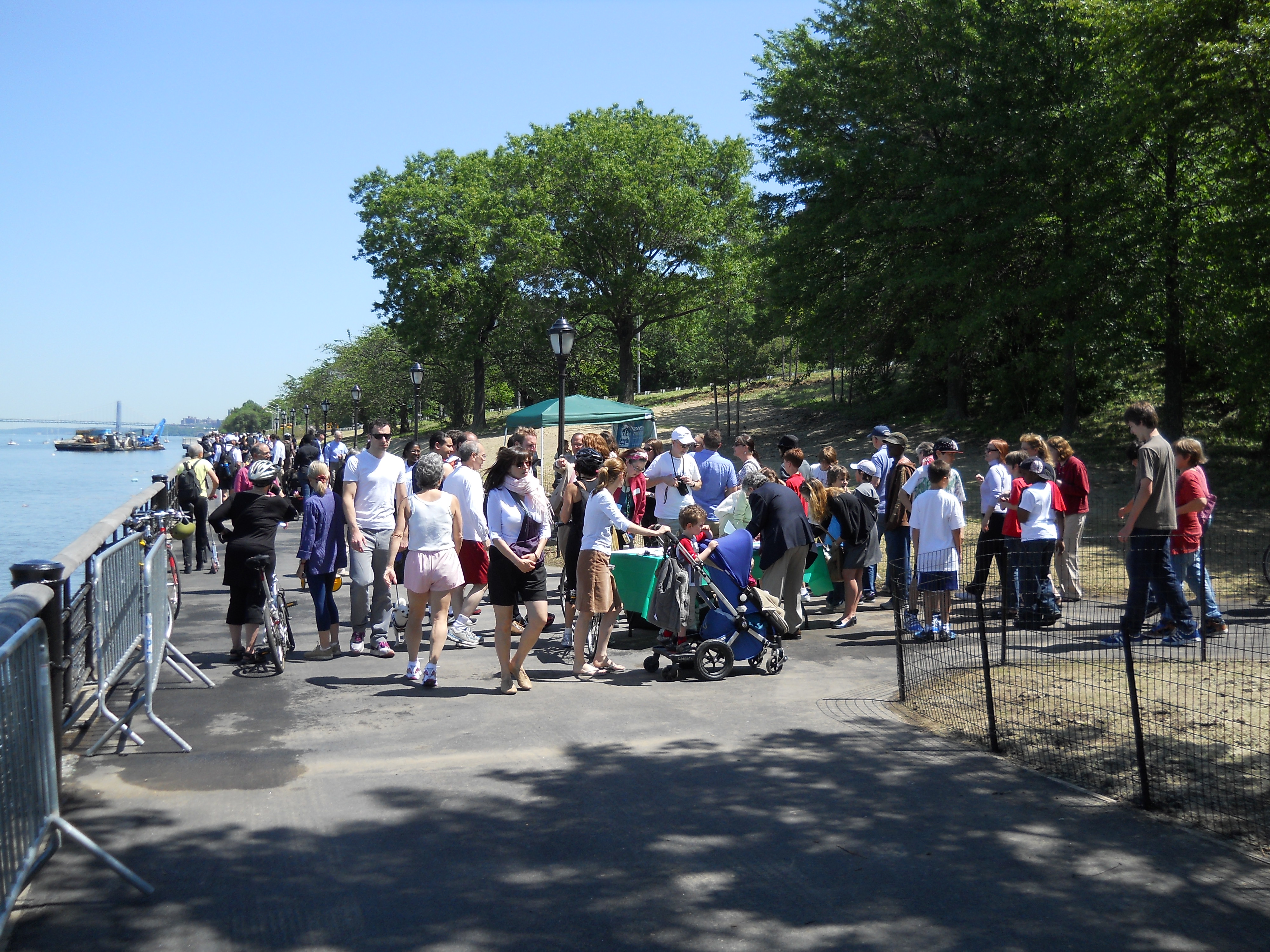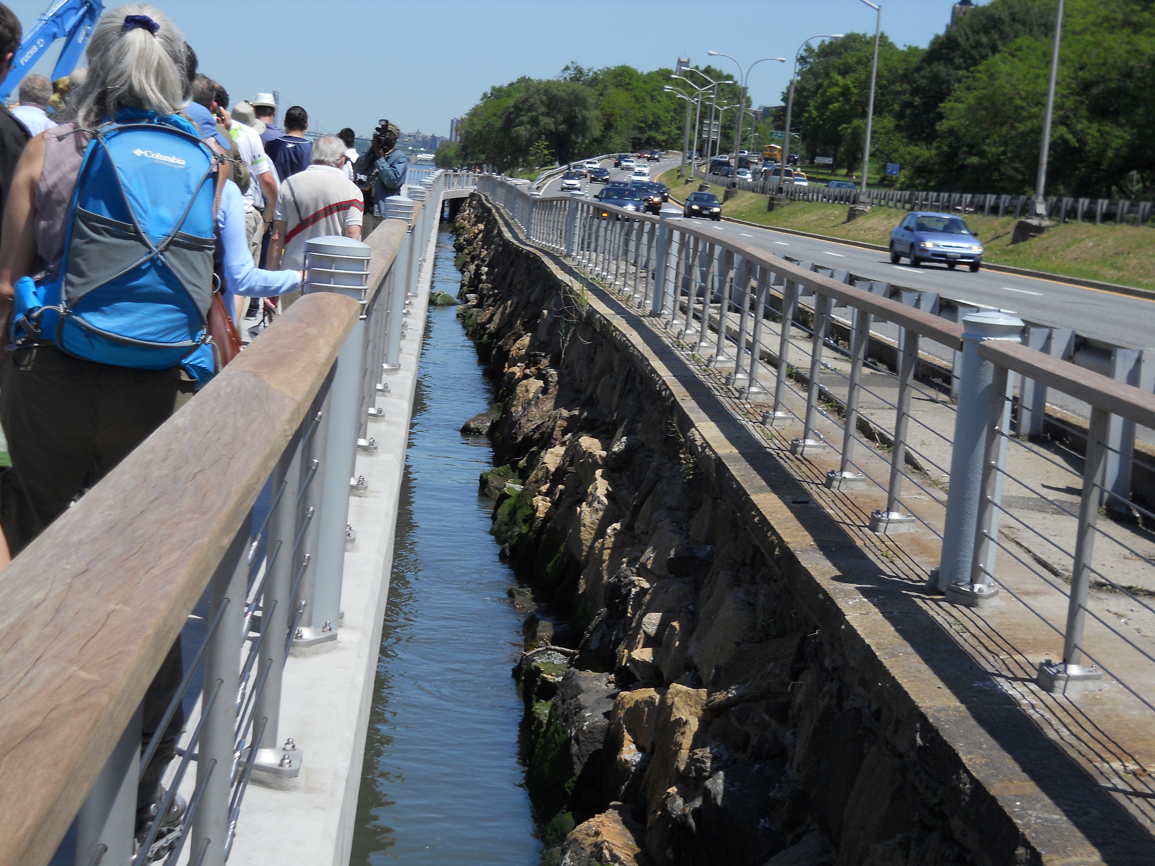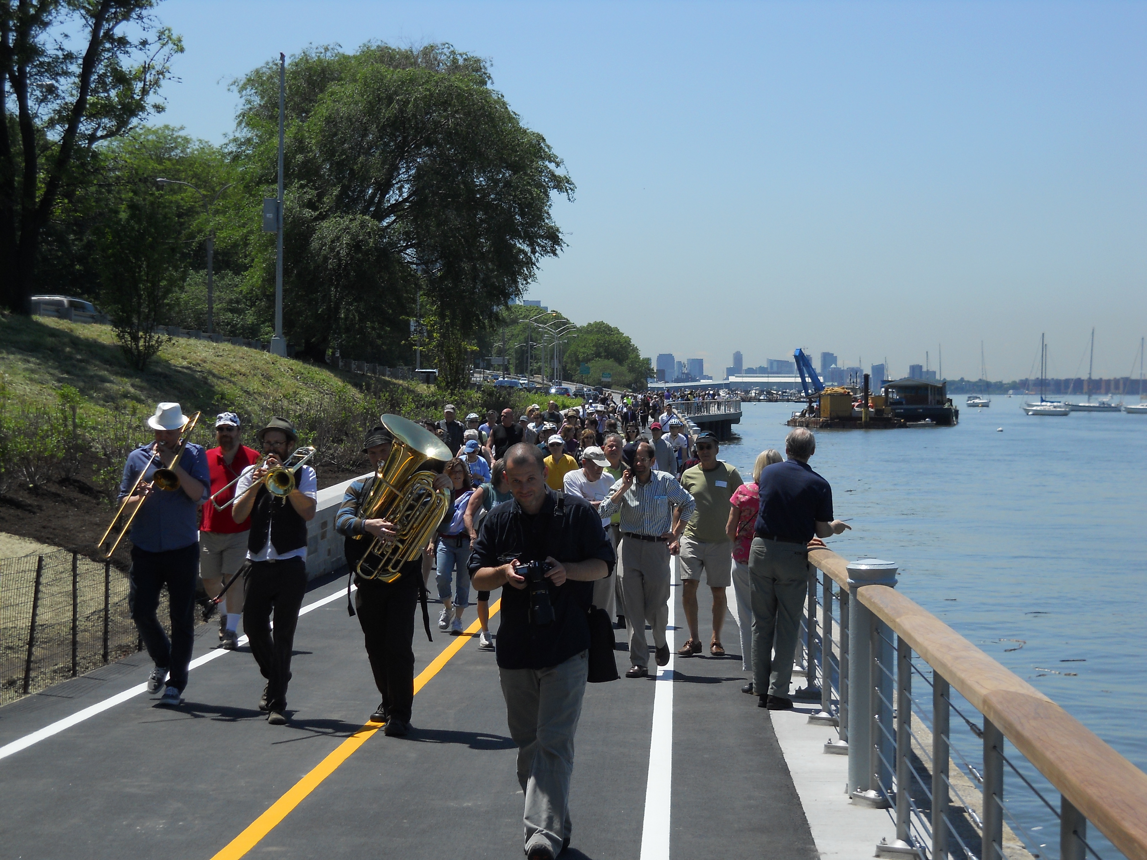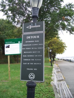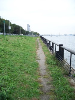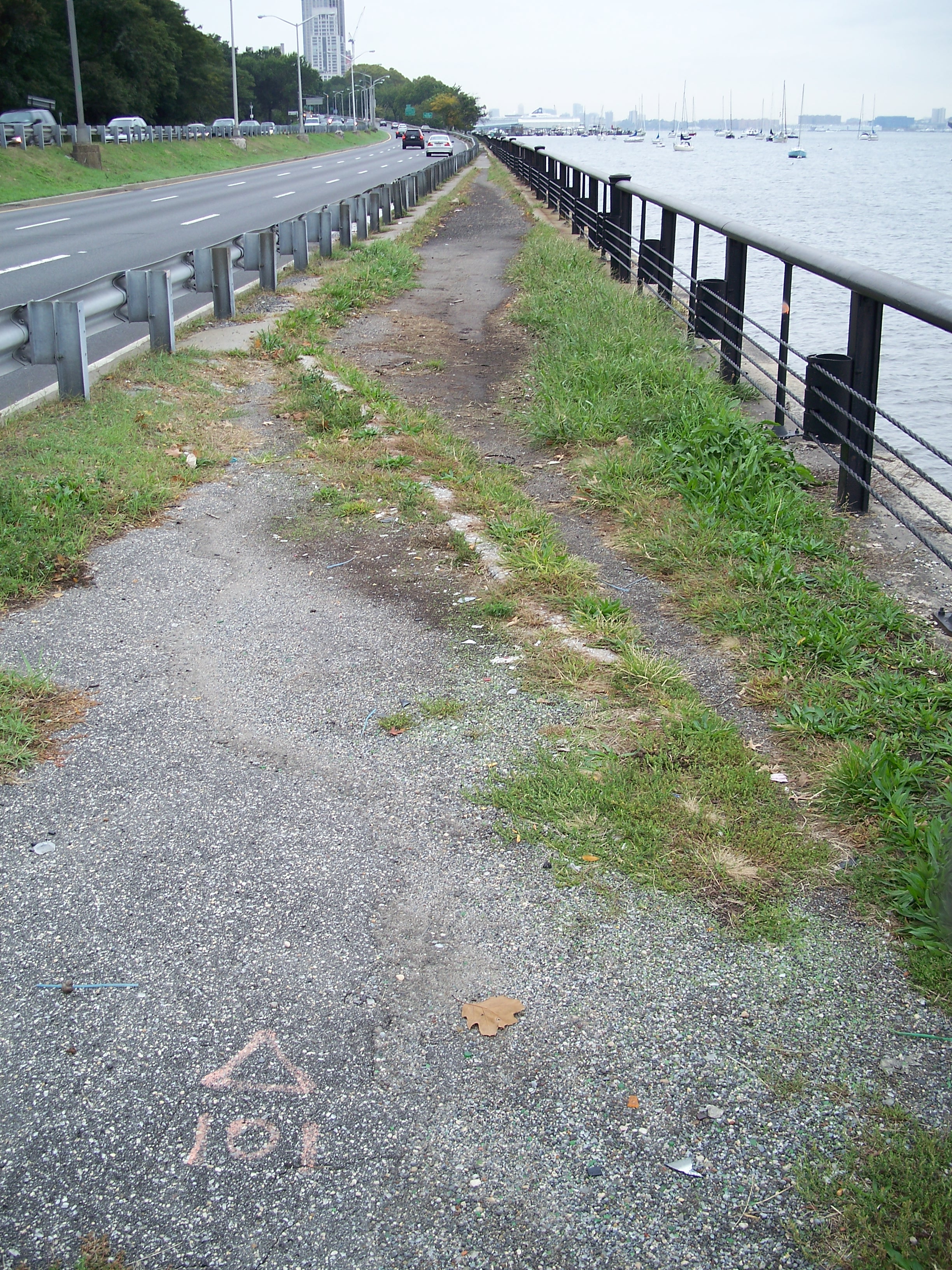 This section of the Hudson riverfront had long been an odd gap in the greenbelt surrounding Manhattan. While there were lovely esplanades just to the south and the north, the placement of the railroad tracks away from the cliffs forces the Henry Hudson Parkway almost flush with the Hudson River, leaving only a narrow walkway for pedestrians. For years, this area had been minimally maintained with signs to the south and north warning pedestrians to cross under the parkway and use the esplanade that is built over the railroad tracks to the east.