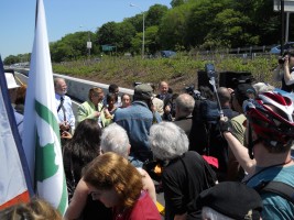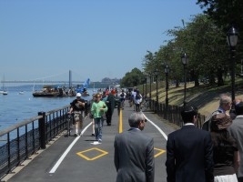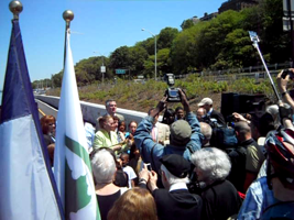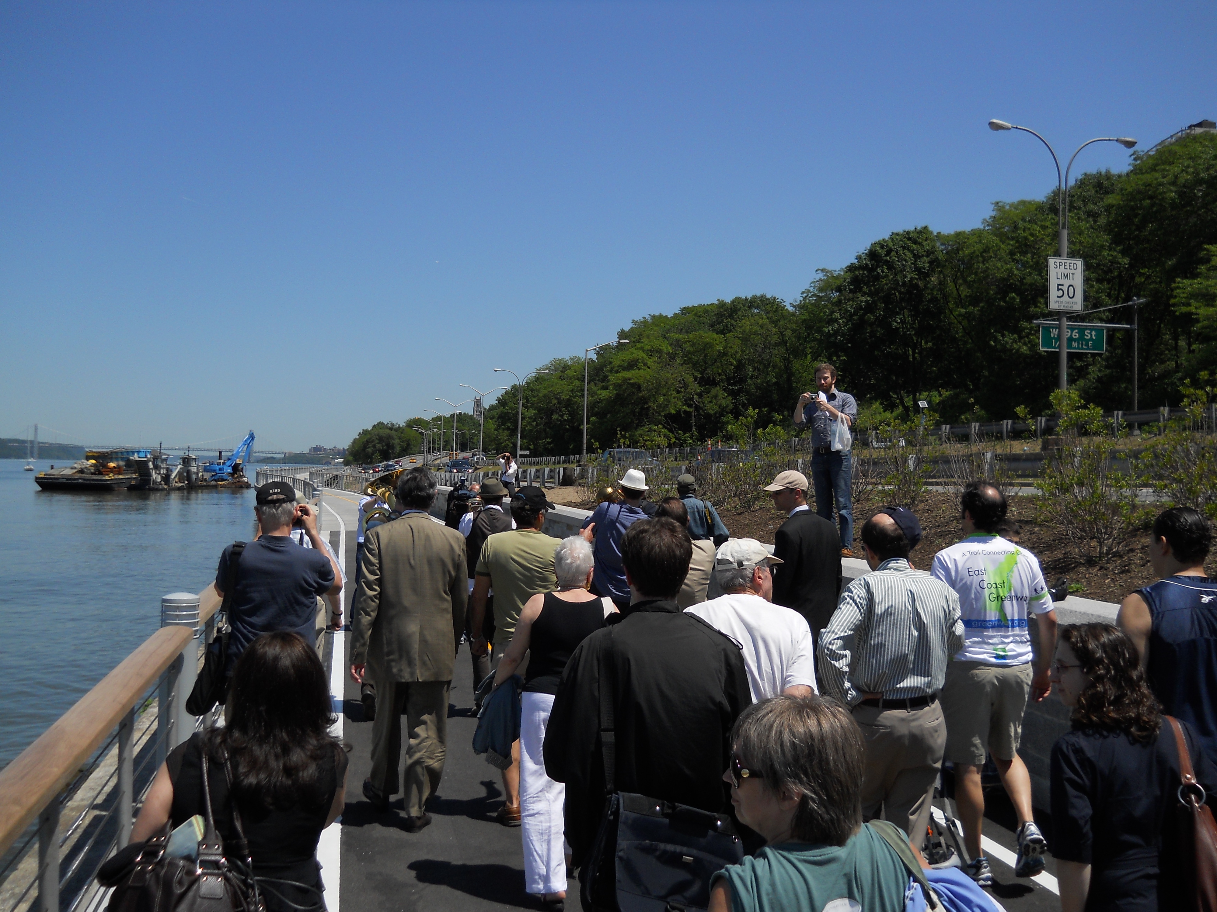 After an extensive period of consideration, groundbreaking for a pedestrian platform through this area was held on October 17, 2007, with scheduled completion for the Spring of 2009. The $15.7 million project had an official ribbon cutting on May 20, 2010, attended by Parks Commissioner Adrian Benepe, City Council Member Gale Brewer and Riverside Park Fund President John Herrold. (press release)