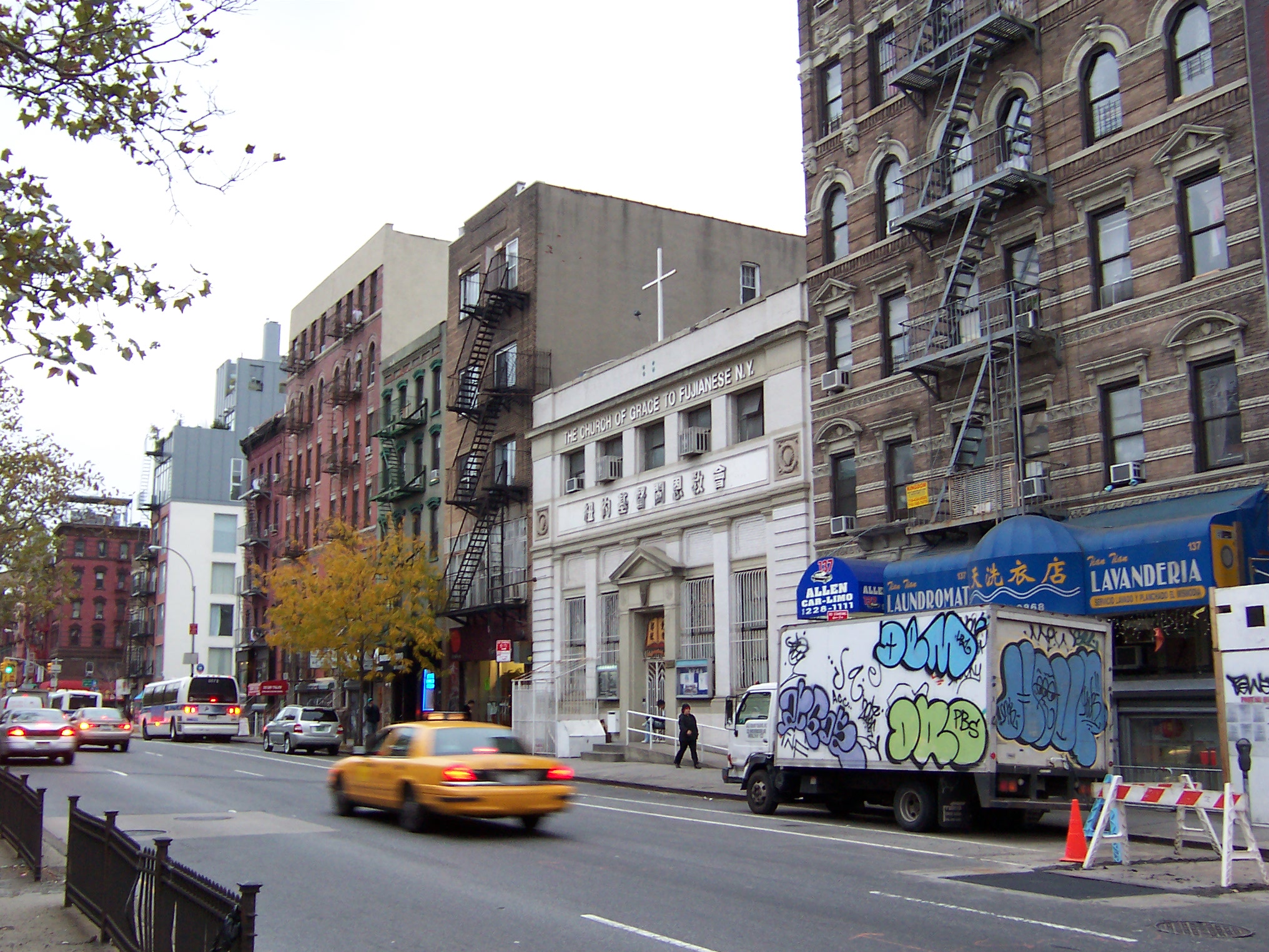 The Allen Street bath was located in what was, for most of the 20th Century, a red-light district. The bath was the final survivor of the 20 public baths, closing in 1975 during the city's financial crisis. The building was sealed in 1988, auctioned off in 1992, and as of this writing (Fall 2006) is home to the Church of Grace to Fujianese, a Chinese congregation.