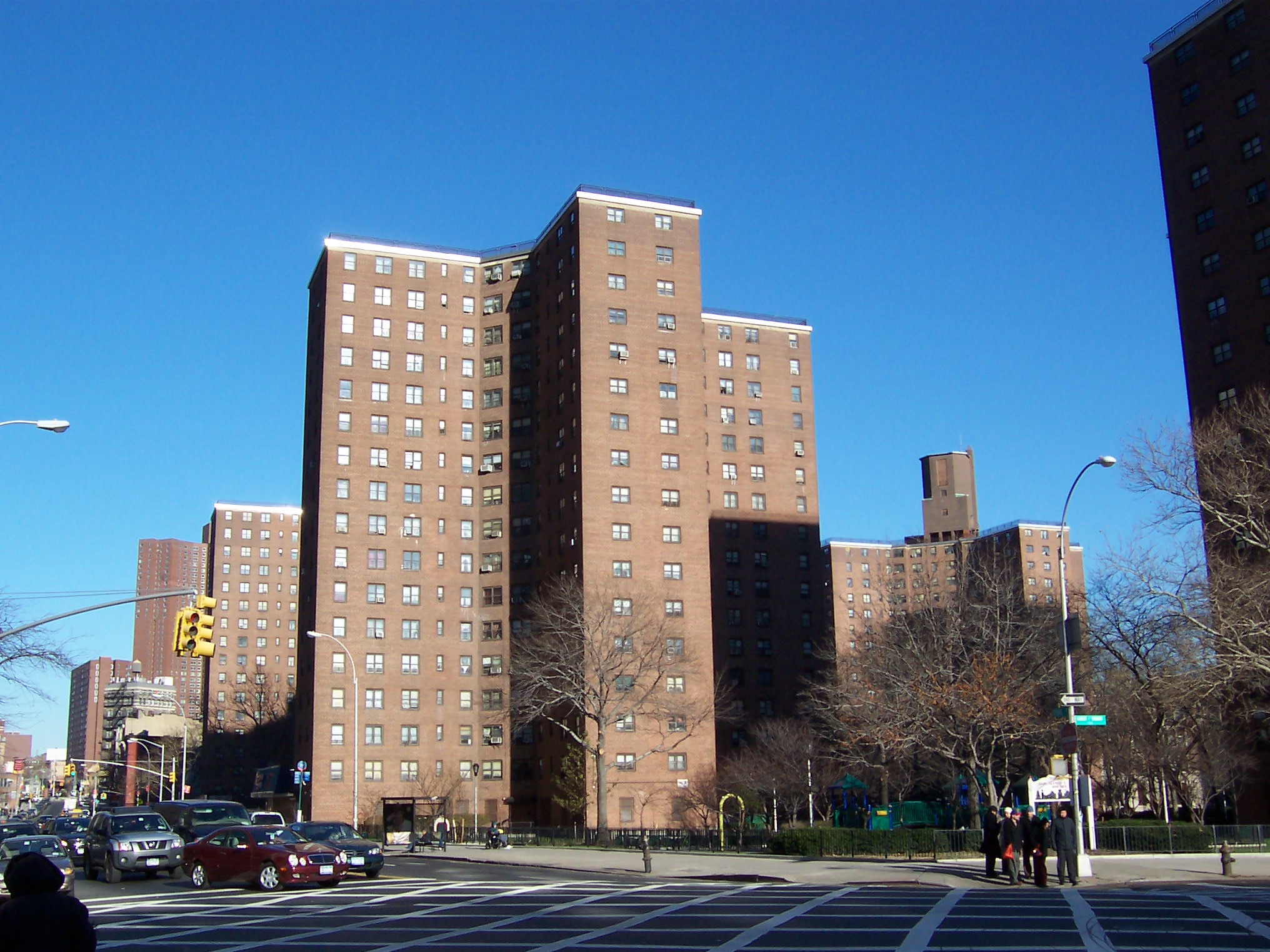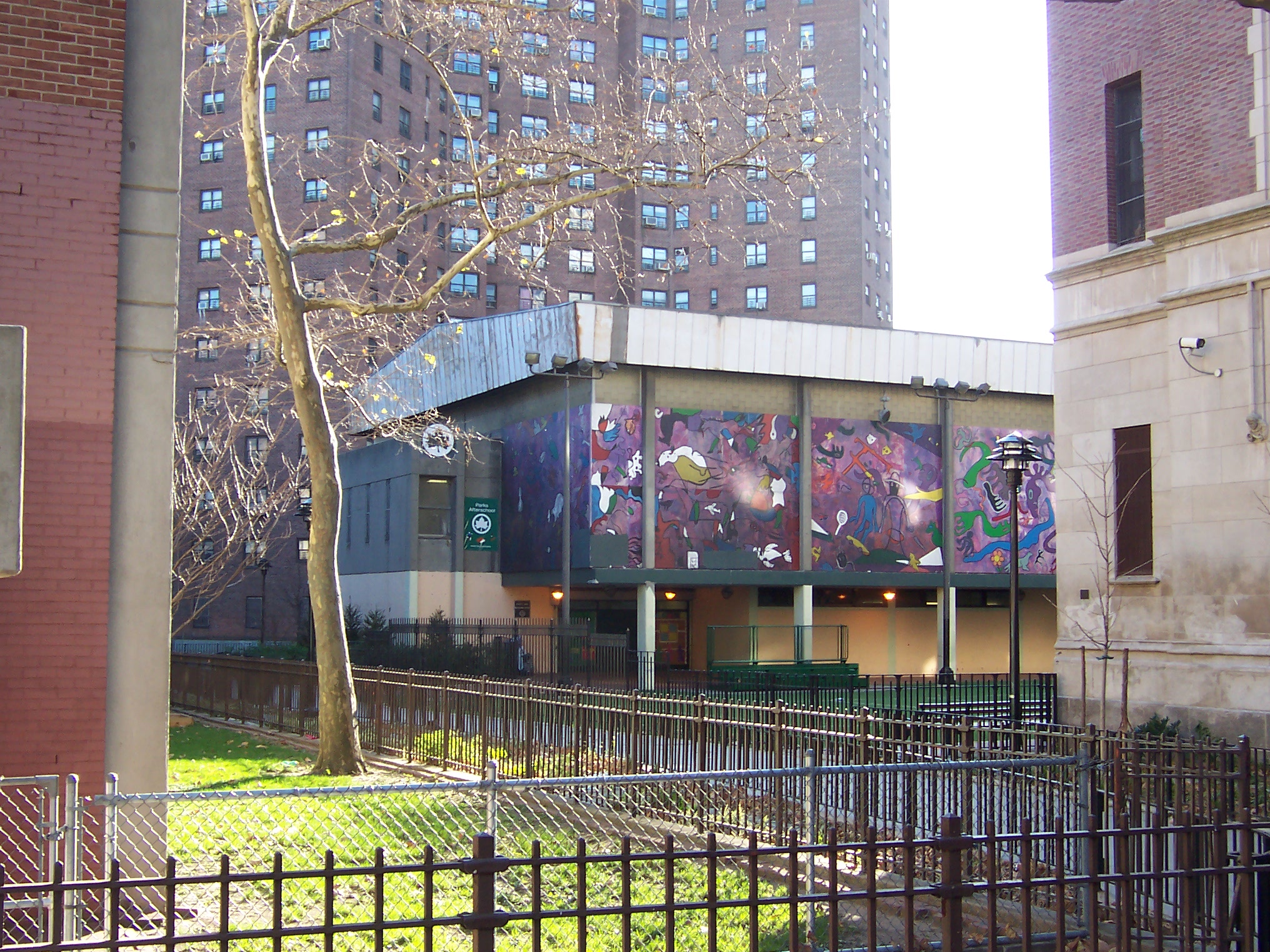 The former PS 114 behind the recreation center and next to the Alfred Smith Playground was spared the wrecking ball when the complex was built, and the school became a family shelter.