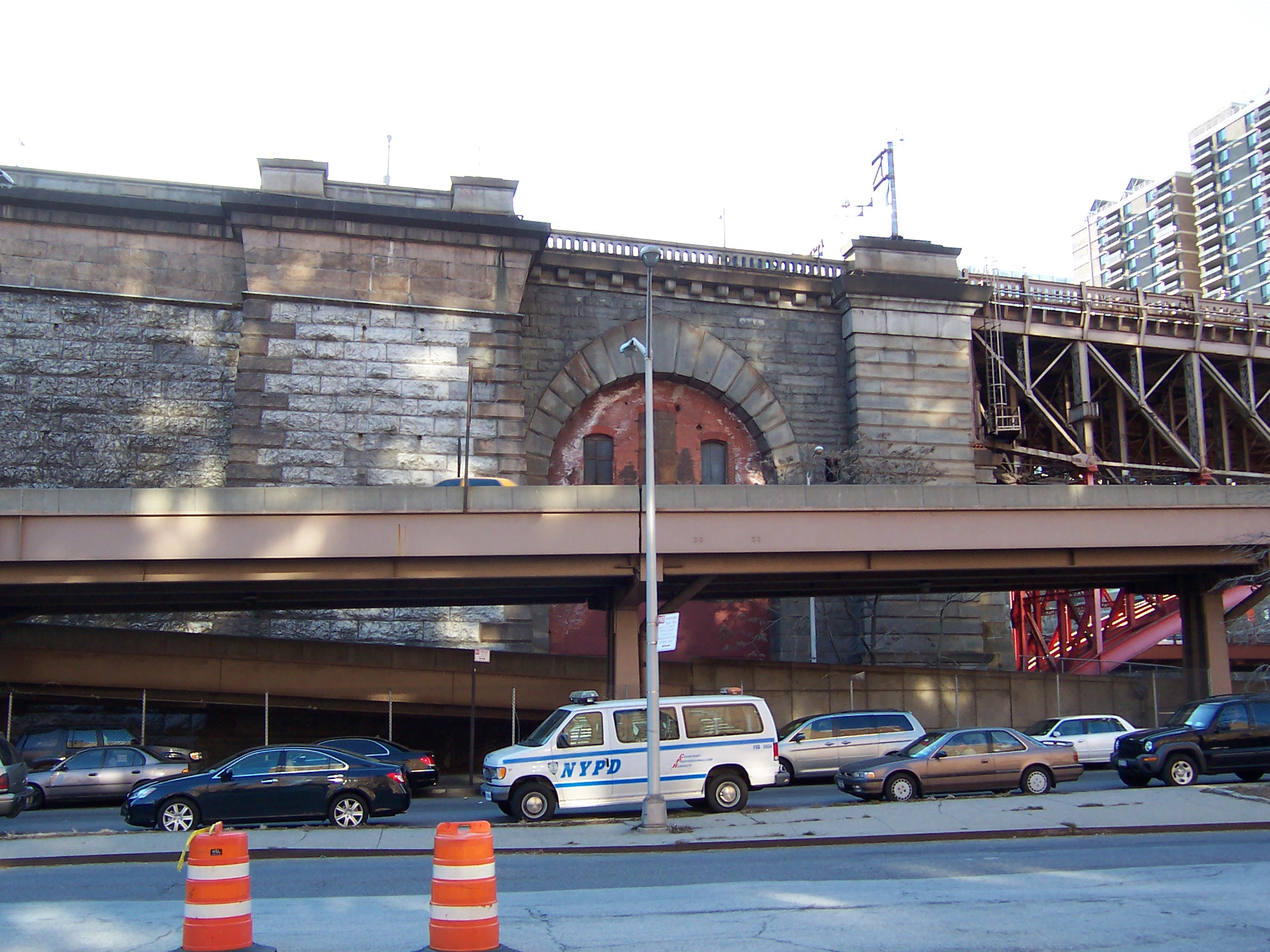 Cherry Street used to run all the way south to where the Brooklyn Bridge north approach currently stands. Number One Cherry Street was George Washington's presidential mansion. Tantilizingly, the anchorage contained habitable space at one point and two bricked-in entrances hidden behind on-ramps to the FDR drive are vaguely reminiscent of the separate men's/women's entrances used for bathhouses.