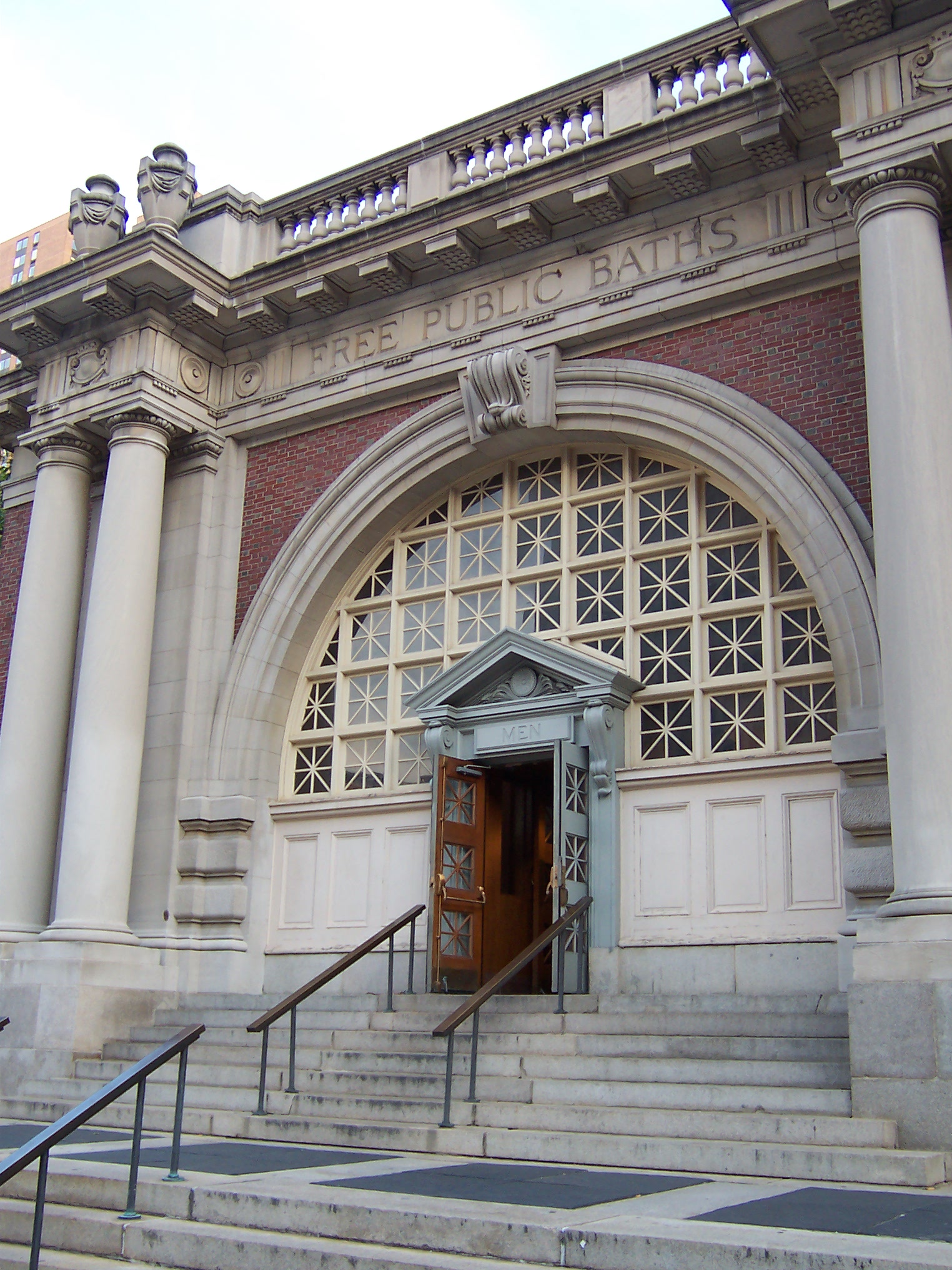Perhaps the most lavish, substantial and well-preserved of the public bath buildings is the 23rd Street bath designed by architects Arnold W. Brunner and William Martin Aiken. The building was intended to echo the style of the ancient Roman baths and was inspired by the "City Beautiful" movement (also reflected in the ornate design of the original subway stations), that theorized that citizens would behave in a more civilized manner if they were surrounded by more civilized architecture. The Roman Revival style building (Neo-Roman) features vaulted ceilings, balconies, mullion windows, skylights, and stone urns. The building was built to serve what was then the primarily Irish immigrant residents of the "Gashouse District"