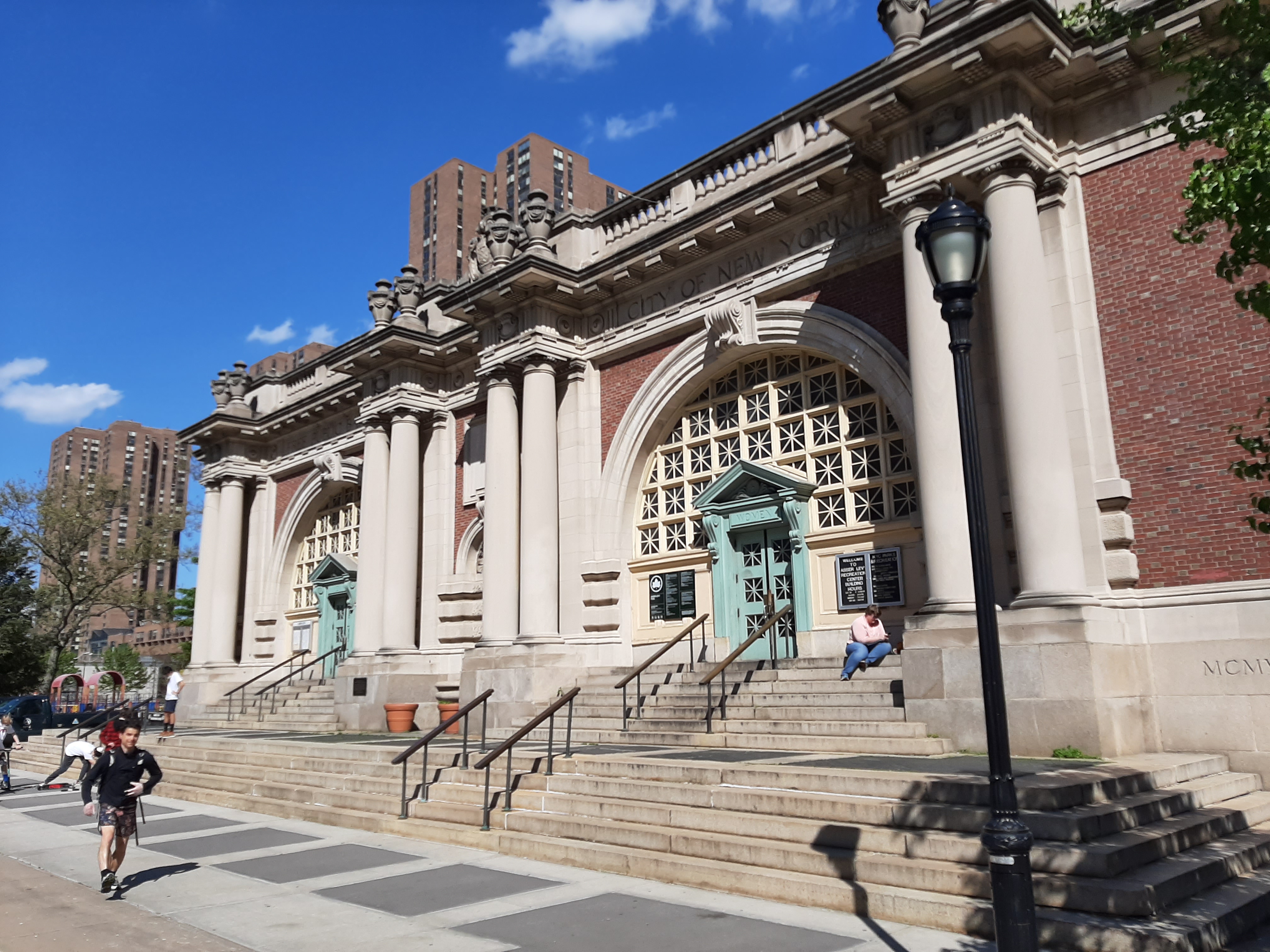 New outdoor swimming and diving pools and an expanded playground were added in 1936 with the New York City Department of Parks and Recreation taking jurisdiction over the bathhouse and recreation center in 1938. In 1974 the building was landmarked and underwent and extensive renovation from 1988 to 1990. In 1993, the Asser Levy Playground opened as one of the first playgrounds in Manhattan build for disabled children.