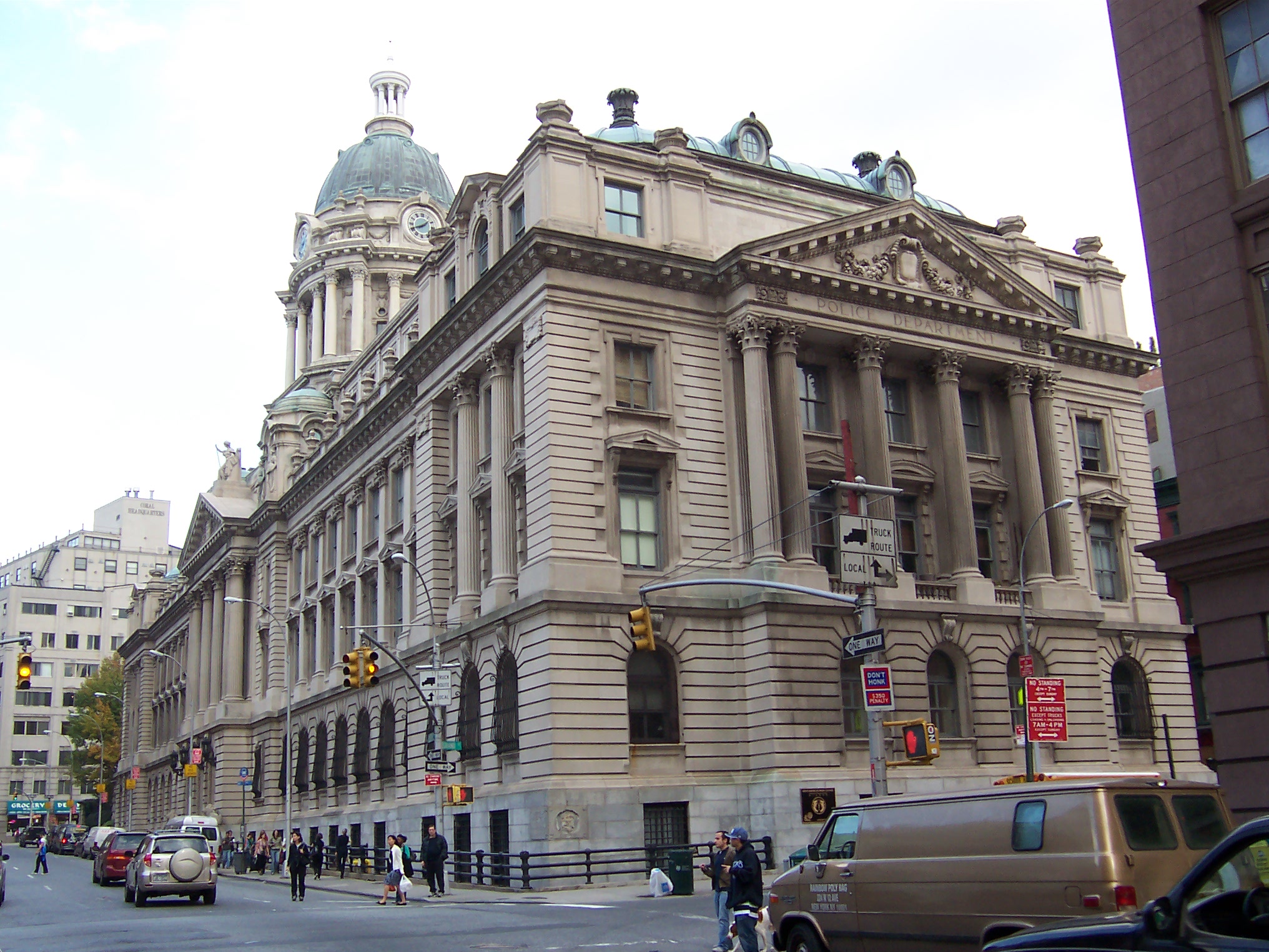 The Old Police Headquarters is a large and attractive building on at 240 Centre Street that opened in 1910 just after the People's Baths closed just to the East. The police department moved to a hideous "brutalist" style building near the Municipal Building on Park Row in 1973 and the Old Police Headquarters was converted to luxury apartments in 1987.