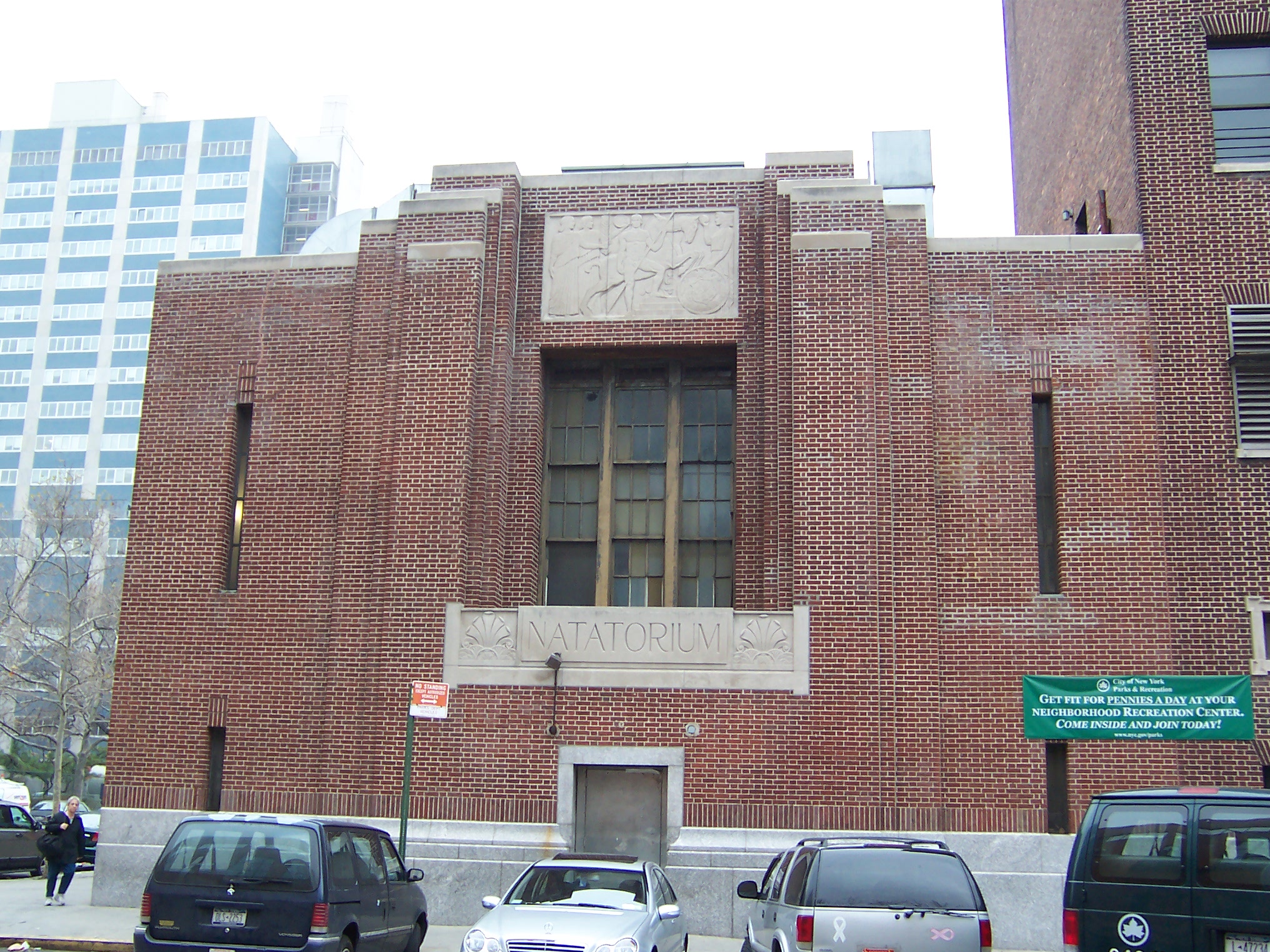 A city web site lists construction on this building as beginning in 1907 and ending in 1925. Williams' book lists this bath as opening in the late 1920s, which would make it the last of the municipal buildings built with a significant public bath component. The public bath movement had essentially ended in 1915 and the anomalous construction of public baths in Harlem a decade later may be a testament to delays in social services and the persistence of social ills in this segregated community. The natatorium is particularly attractive with a magnificent skylight and elegant mosaic tiling around the pool. When I visited the site was the J. Rozier Hansborough Recreation Center and although I was unable to find any web references to Hansborough, I assumed that he was a significant Harlem civic leader.