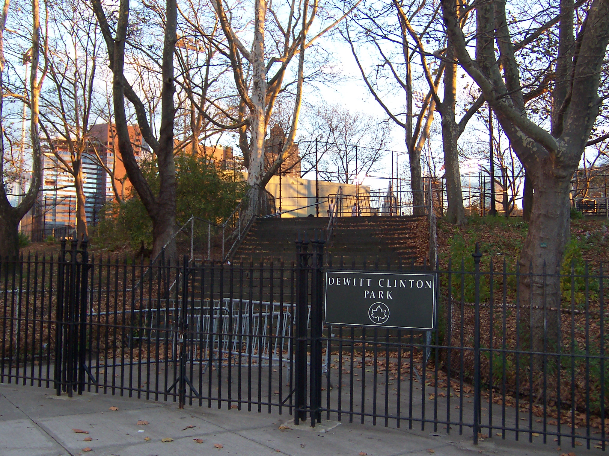 The Parks Department acquired a 7.4-acre lot in Hell's Kitchen in 1901 and officially opened DeWitt Clinton Park in 1905. The park was designed by landscape architect Samuel Parsons, Jr. and featured a recreation / bathing pavilion (by the architectural firm of Barney & Chapman) overlooking the Hudson River, a gymnasium, a running track, playgrounds, and a children's farm garden. I assume that the 1911 bath house was separate from the 1905 pavilion that was probably built for river bathing. (historical sign).
