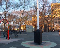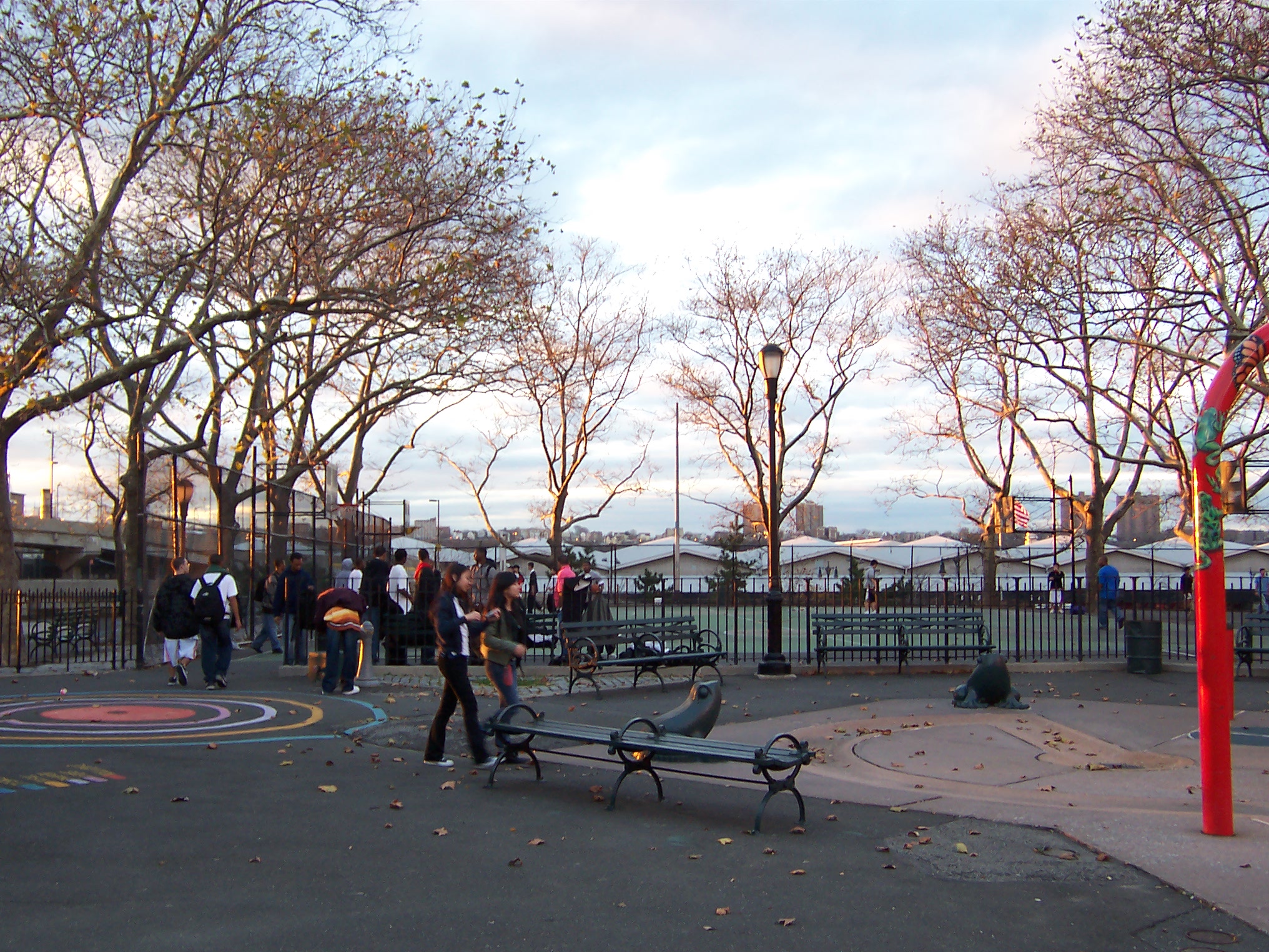 There is a building across 52nd Street from the south side of the park that has an institutional and early 20th century quality, but the address is wrong. The park itself is a dreary shell of its former self due to overuse and undermaintenance.
