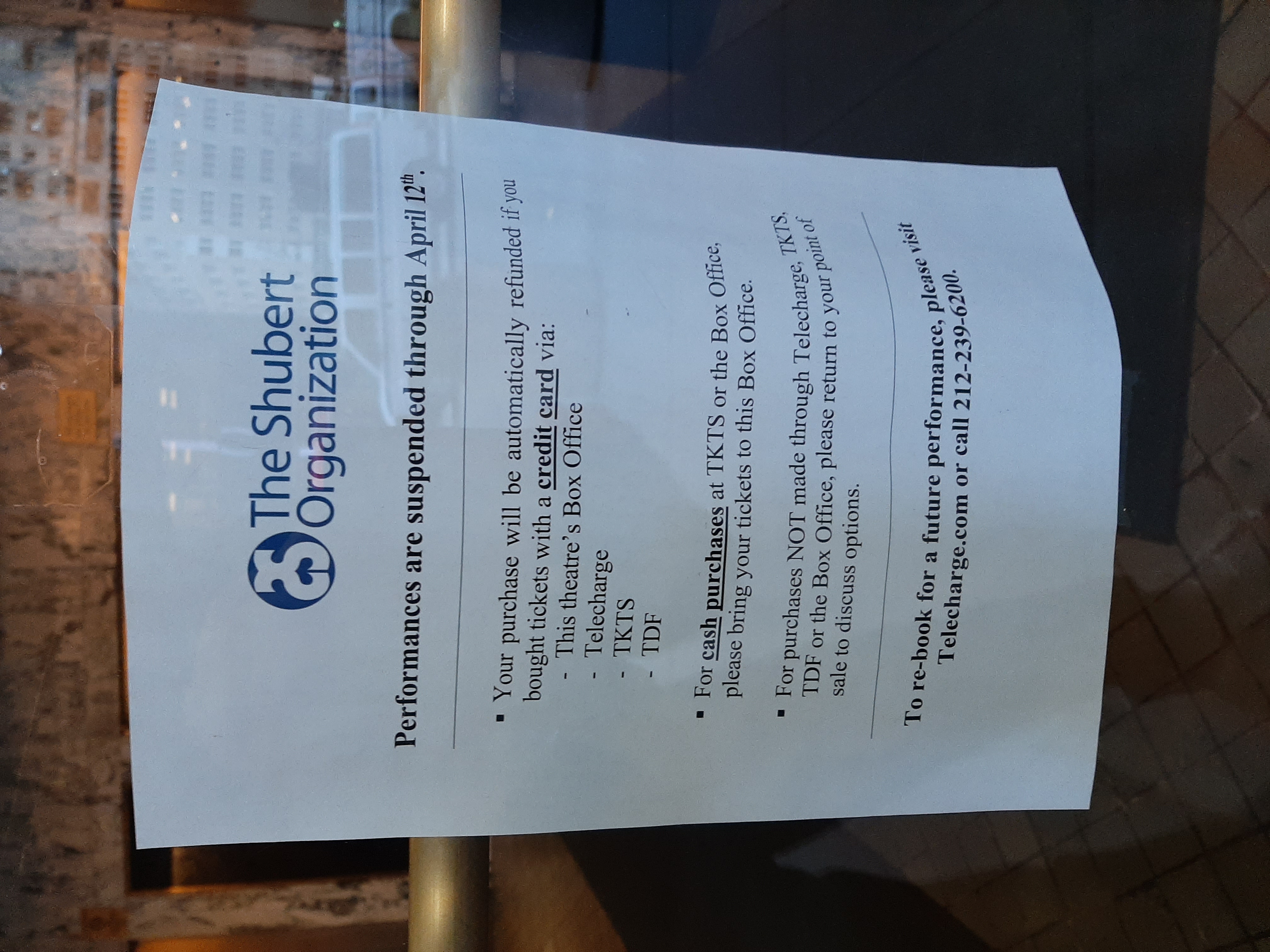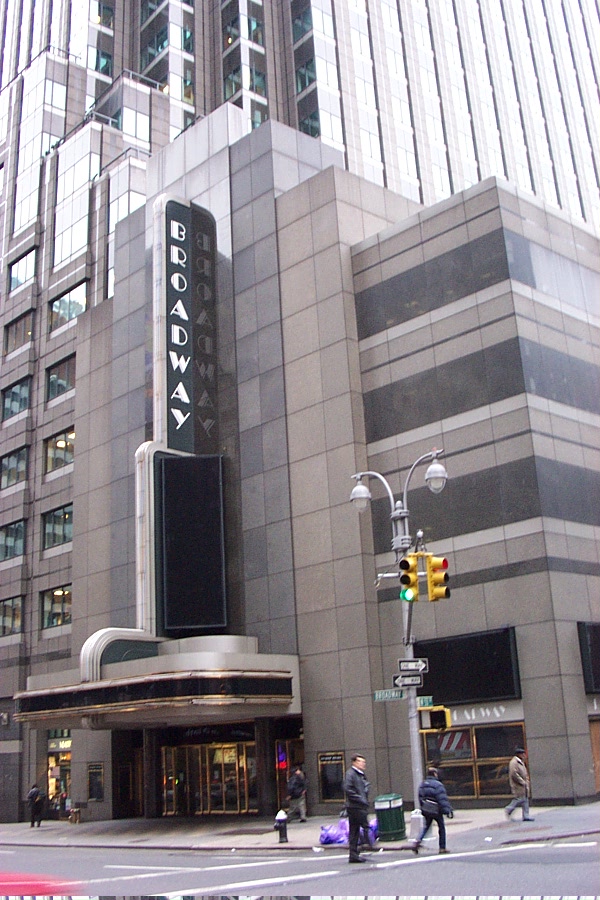 Built as B.S. Moss's Colony Theatre (a movie house) by Benjamin S. Moss. Also Known as Universal's Colony Theatre (1926-1930), B.S. Moss's Broadway Theatre (1930-1932), Earl Carroll's Broadway Theatre (1932), Broadway Theatre (1933-1934), B.S. Moss's Broadway Theatre (again, 1935-1936), Cine Roma (Italian movie theatre 1937-1938). Opened as the Broadway Theatre in 1939 with the premiere of Disney's Fantasia. Notable productions include: The New Yorkers (1930), Earl Carroll's Vanities of 1932, Too Many Girls (1940), This is the Army (1942), Lady in the Dark (1943), Carmen Jones (1943), Up in Central Park (1945), Song of Norway (1946), Mr. Wonderful (1956), Most Happy Fella (1957), Gypsy (1959), Funny Girl (1966), Cabaret (1968), Evita (1979), Les Miserables (1987), Miss Saigon (1991).