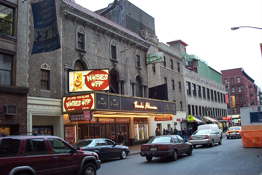 Built by Henry and Irwin Chanin as the Mansfield Theatre. Named after producer/director Richard Mansfield. Briefly known as Lew Field's Mansfield Theatre in 1928. Idle from 1950-1960. Reopened and renamed for NY Times theatre critic Brooks Atkinson in 1960. Notable productions include: Present Arms (1928), Shuffle Along (1933), Come Blow Your Horn (1961), Lenny (1971), Same Time Next Year (1975), Talley's Folly (1980), Beyond Therapy (1982), Noises Off (1983), Death and the Maiden (1992).