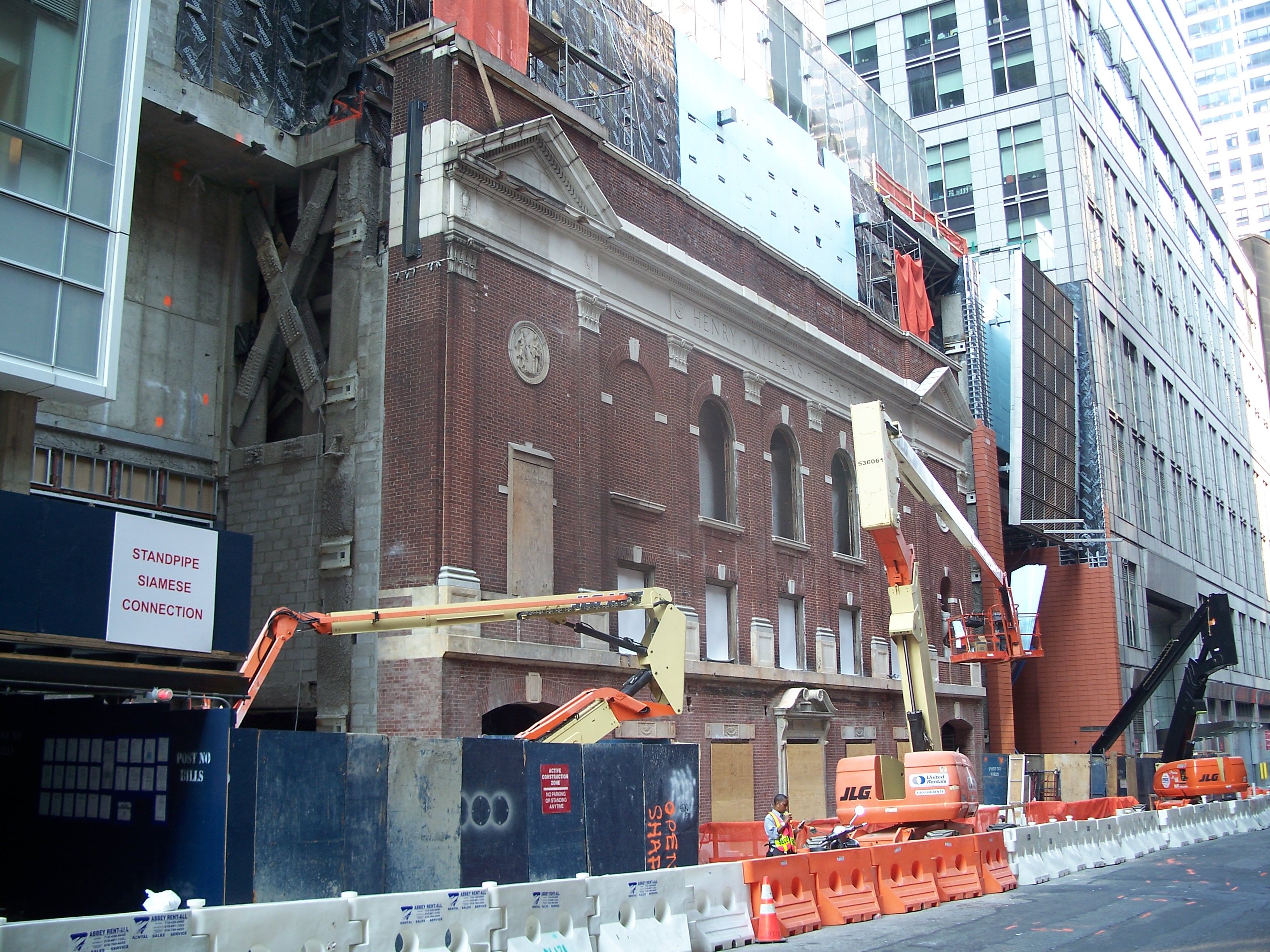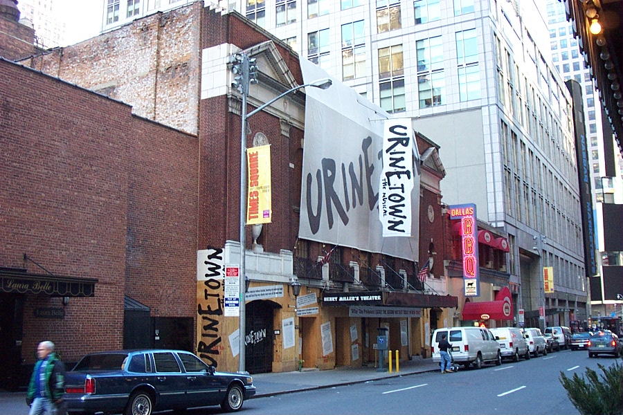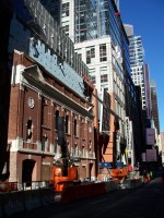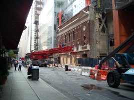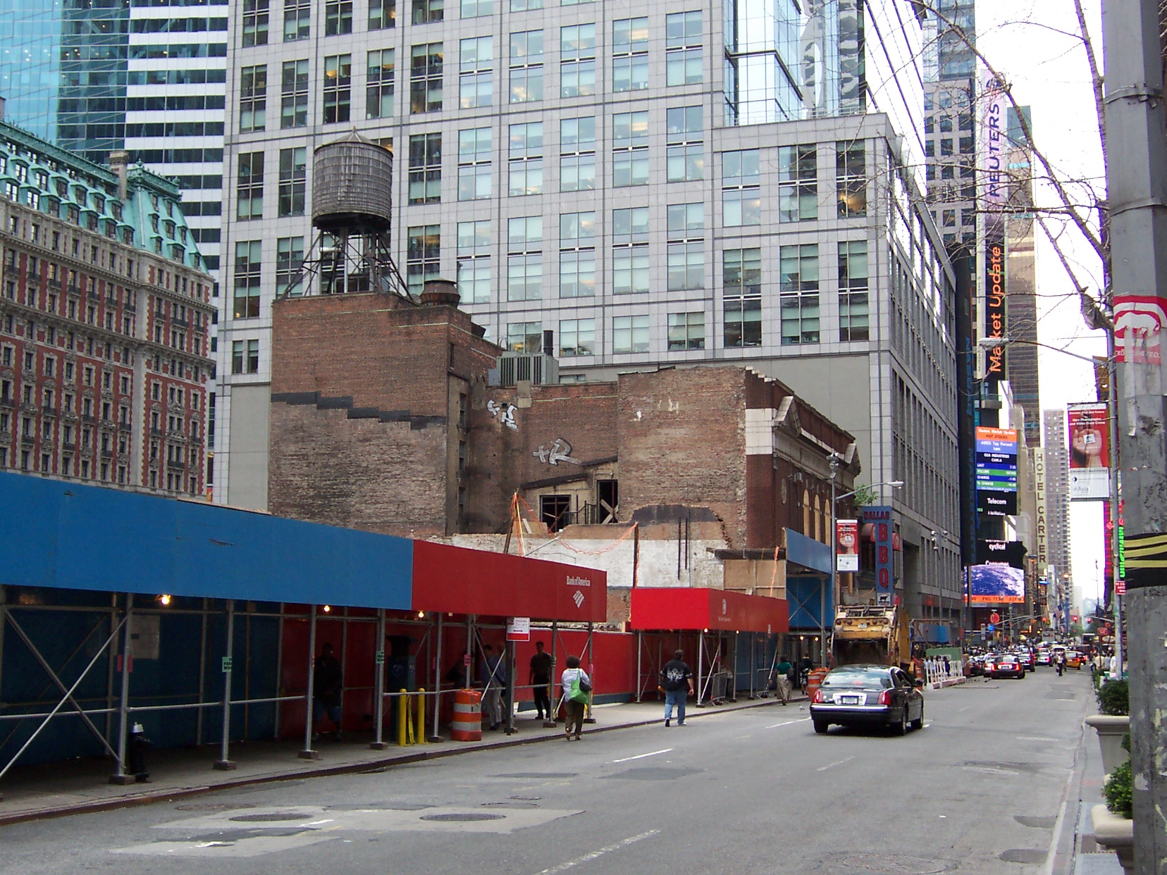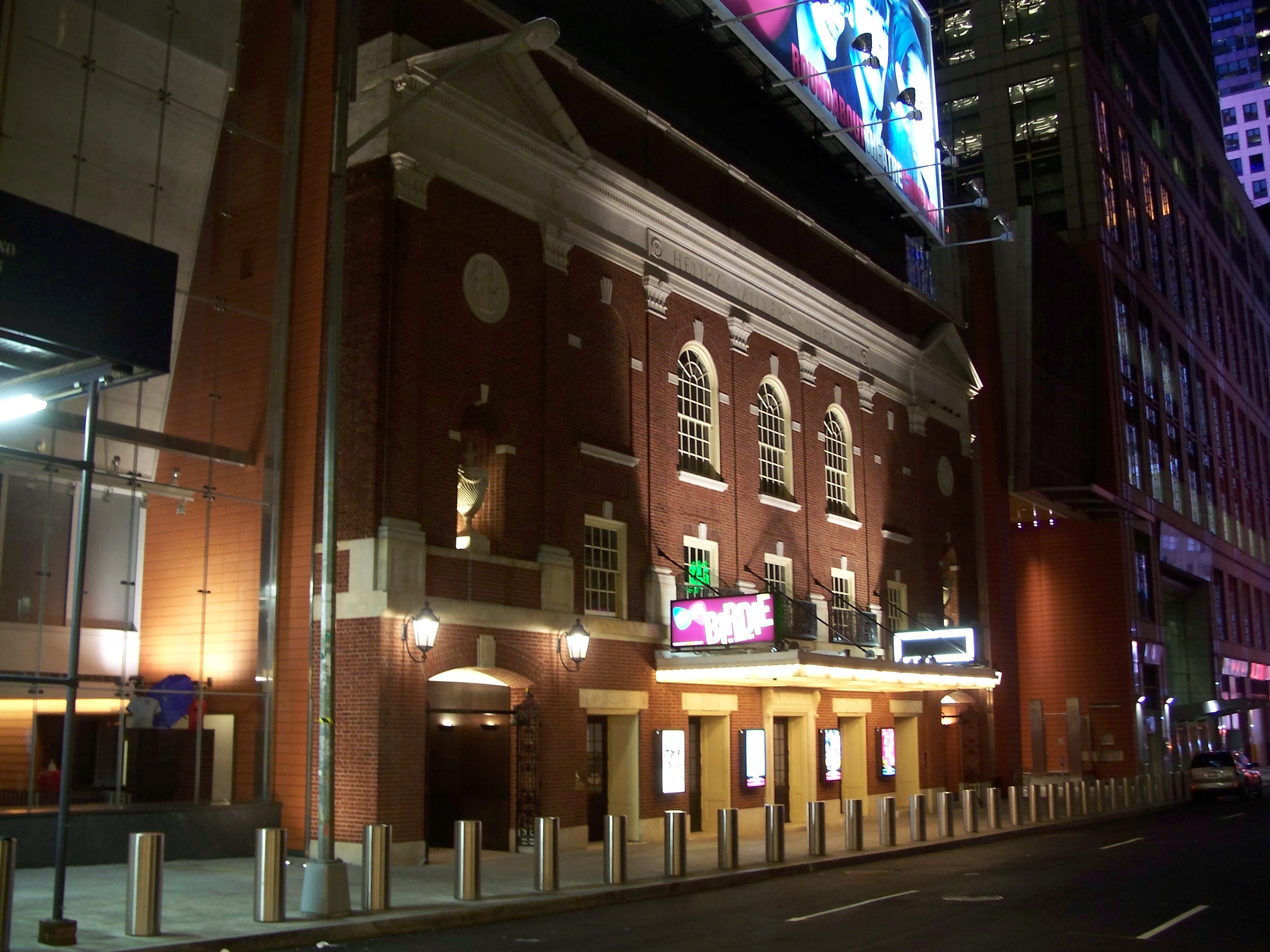 Built by Henry Miller and served as a lovely, intimate, three-tiered legit theatre until 1969. Past productions included Our Town (1938), Born Yesterday (1948), The Subject was Roses (1965), Urinetown (2001). Spent time as a porn movie house and nightclub before reopening in 1998 with a revival of Cabaret. Her charm outlived her economic usefulness and the body of the theatre was destroyed in 2004 with the landmarked facade incorporated into a new skyscraper that included a completely new subterranean Broadway theatre.