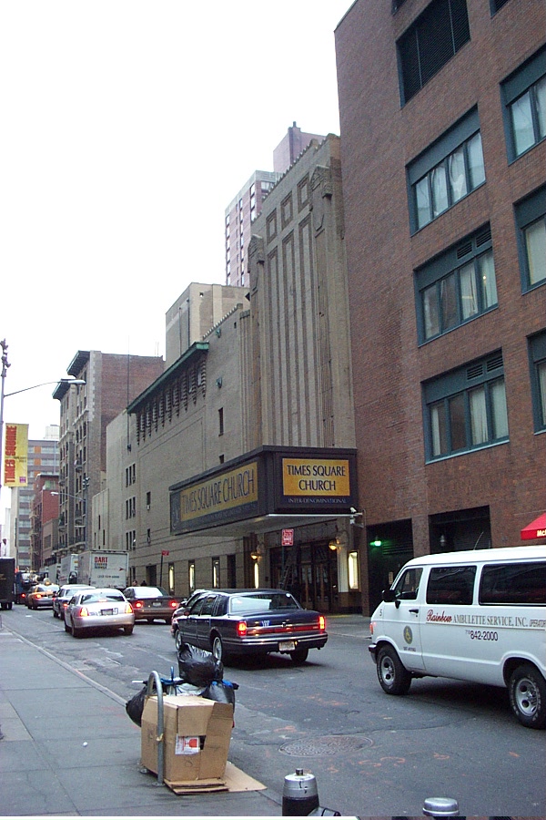 Built by Warner Brothers as one of the last movie palaces in midtown. Converted to live theatre in 1934 and renamed the 51st Street Theatre. The film screen was removed in 1949 when the theatre was renamed after critic Mark Hellinger. The theatre was leased to a Times Square Church in 1989 and purchased by the church in 1992 for $17 million. (reference)