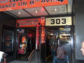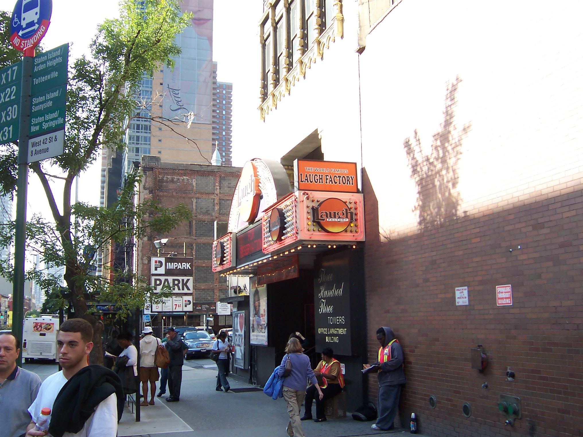 The Laugh Factory is the newest of the block's residents and apparently has an L-shaped configuration that wraps around the Duane Reade drugstore on the corner with a main entrance on the 42nd street side of the block. I seem to recall that it also has a porn background but none of the theatre history websites list any film or legitimate theatre that may have been there back in the day.