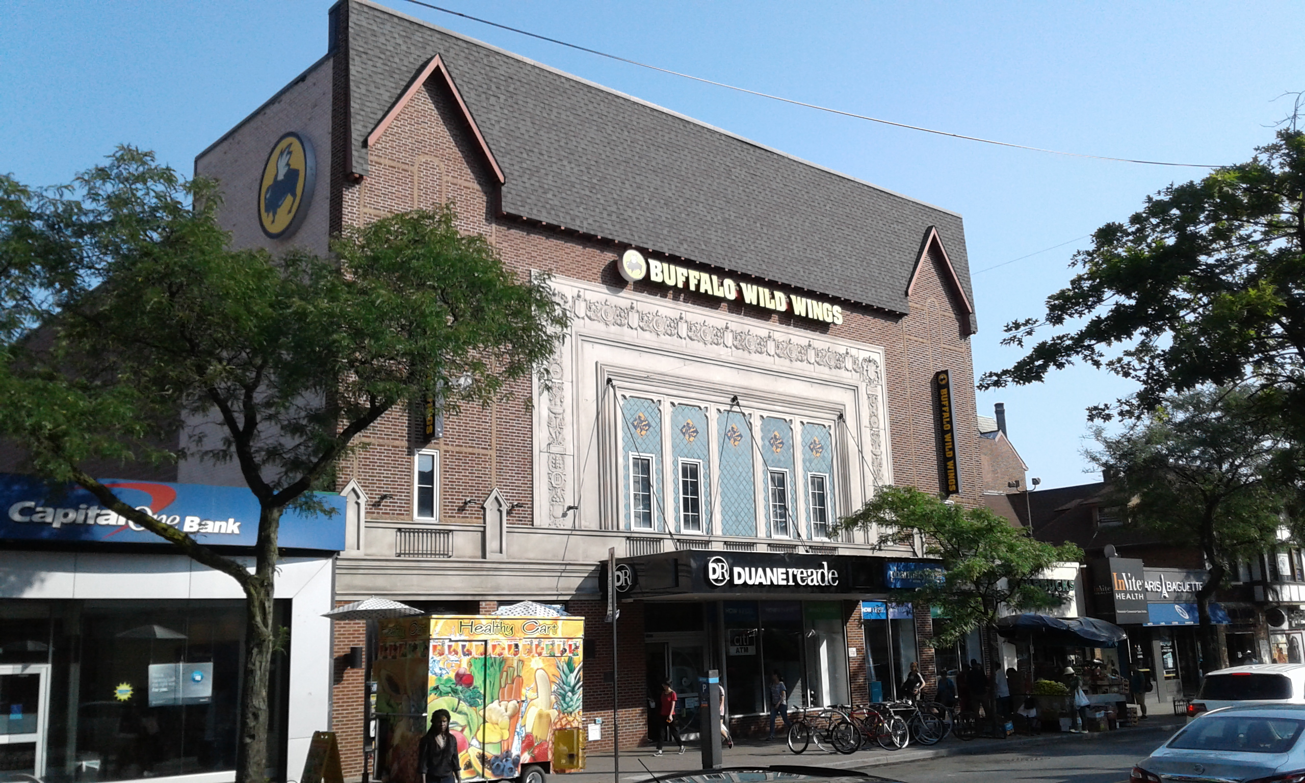 A facadicide where the theatre was demolished in 1998, but the facade was preserved and restored for a drugstore.