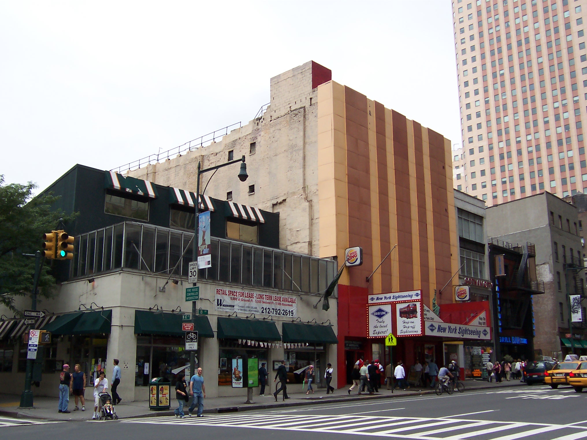 Originally opened in the gay 70's as a double-barreled porn theatre. Briefly served as a revival house during the '80s before returning to porn. Was the information center for Gray Line bus tours (with a Burger King in the basement) when I took this shot in the Summer of 2006.