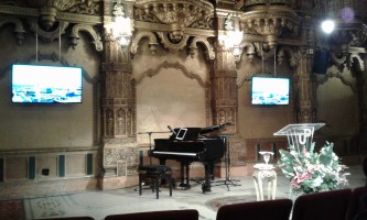 In 1969, during the period of waning fortunes for both NYC and movie palaces in general, the theatre was purchased by the United Christian Evangelistic Association in 1969, under the direction of Dr. Frederick Eikerenkoetter ("Rev. Ike") as the home for his Christ United Church, naming the performing space the United Palace Auditorium. While some may have their concerns about Reverend Ike, his contribution to the city in the maintenance of this grand structure is unquestionable.