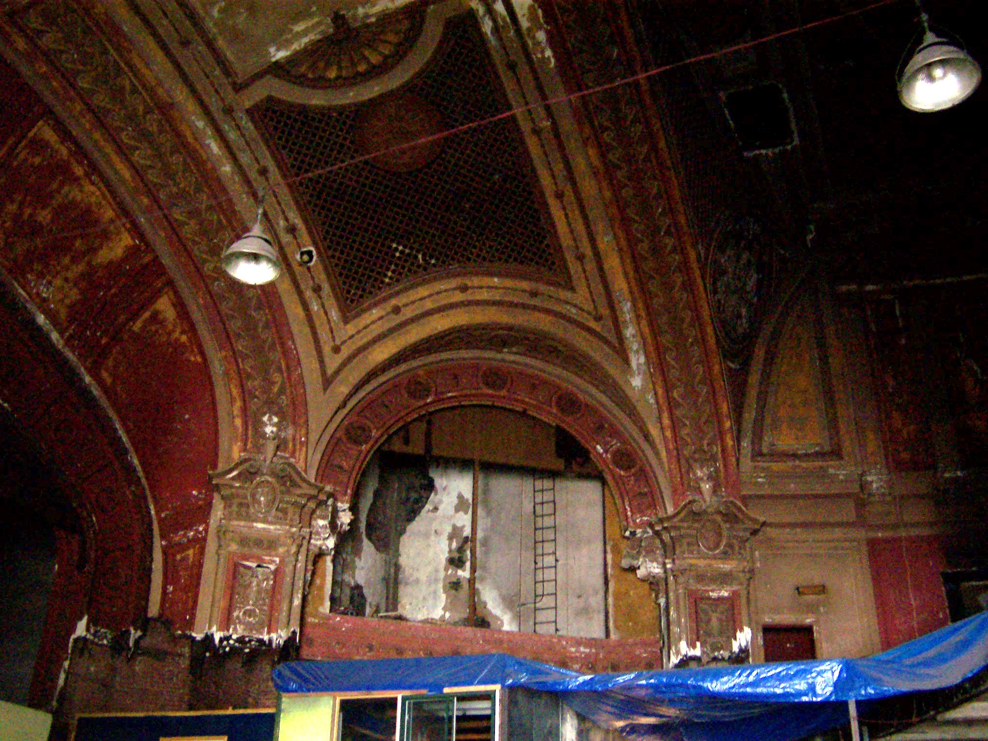 When I visited in 2005, the auditorium served as an auto repair facility with many of the old auditorium features still visible, albeit dimly lit and in considerable disrepair.