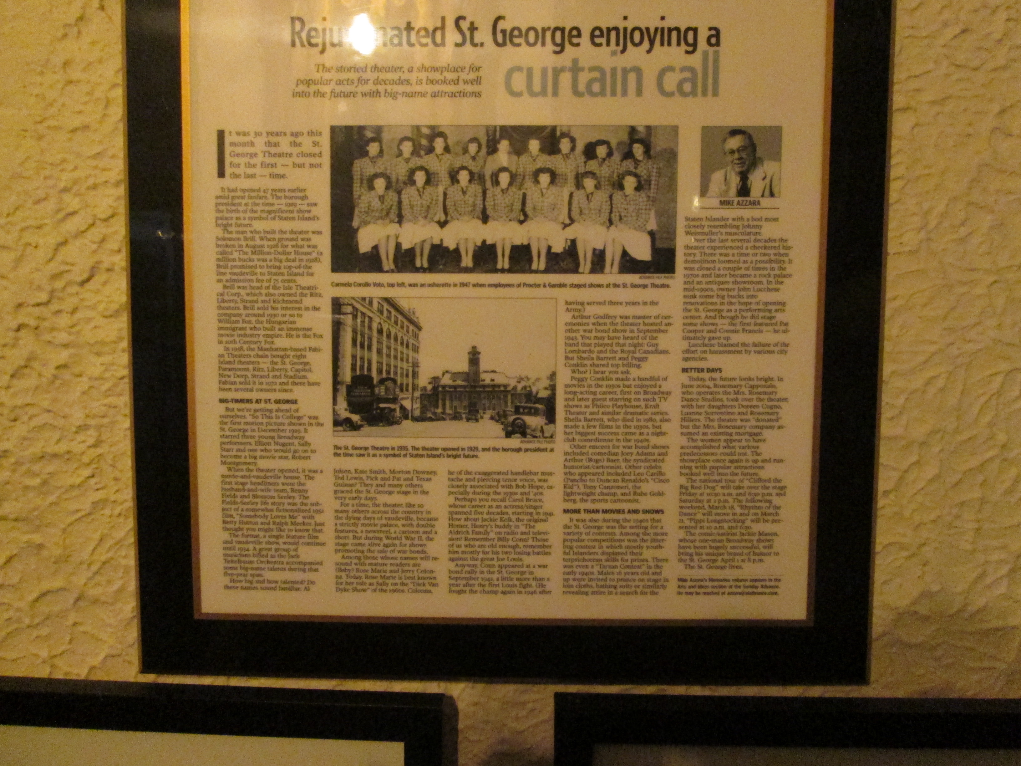 This movie and vaudeville house was built by independent theatre owner Solomon Brill as part of a $2 MM office and theatre complex. The Spanish and Italian Baroque interior originally featured a Wurlitzer theatre organ. The theatre was largely devoted to film after 1934 until 1977. Subsequent attempts over the next three decades to turn the theatre into a roller rink, an antique showroom, a night club, and a performing arts center were unsuccessful until 2004 when dance teacher Rosemary Cappozalo and her daughters, Luanne Sorrentino, Doreen Cugno, and Rosemary Hillers, started a not-for-profit organization to save the theatre from demolition and reopen it as a live performance venue.
