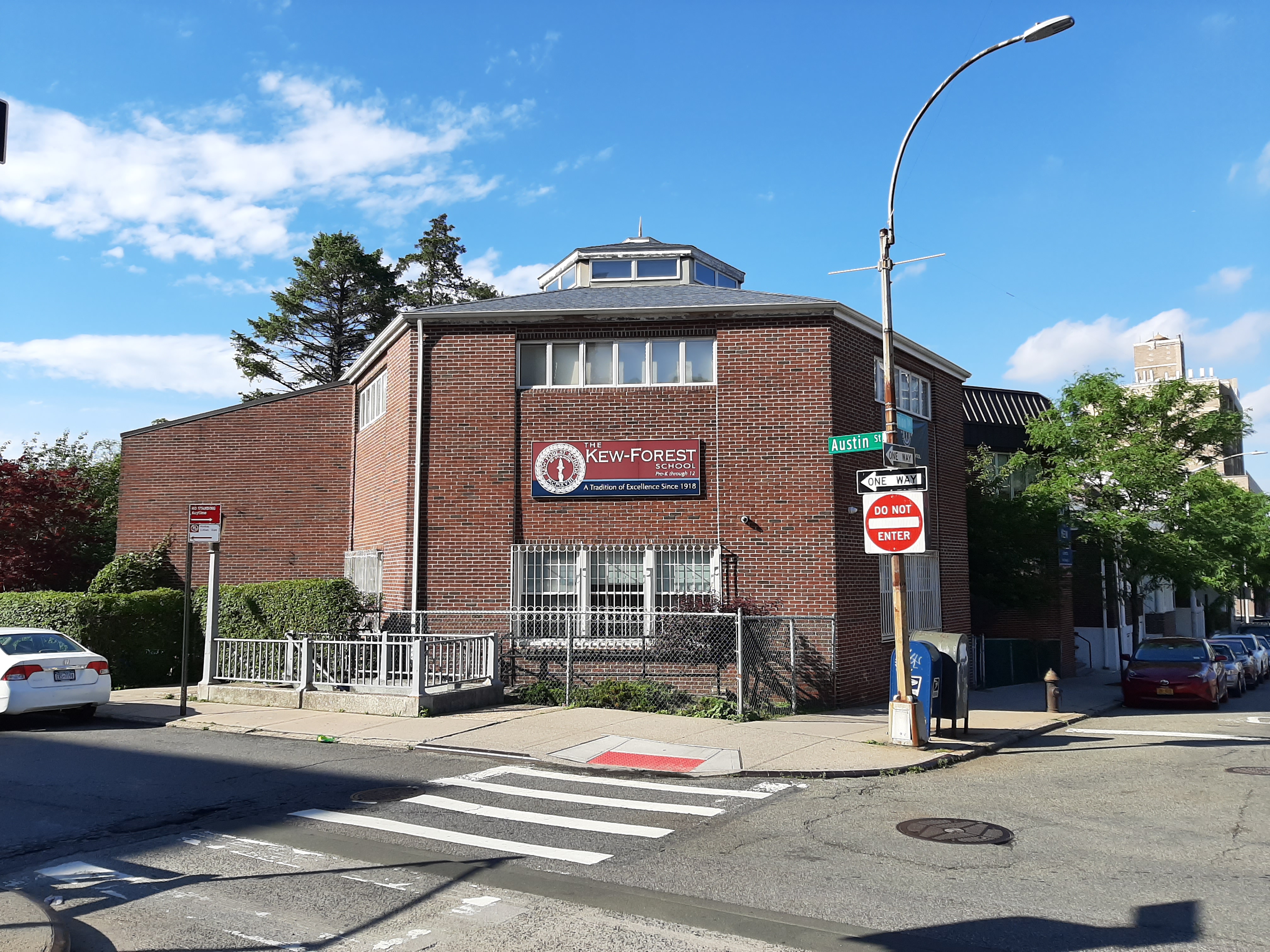 Kew-Forest School is an "independent, coed, college preparatory school for students in Grades Pre-K-12, established in 1918 to serve the Kew Gardens/Forest Hills community of Queens." Donald Trump attended the school from kindergarten through seventh grade, before attending the New York Military Academy.