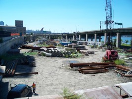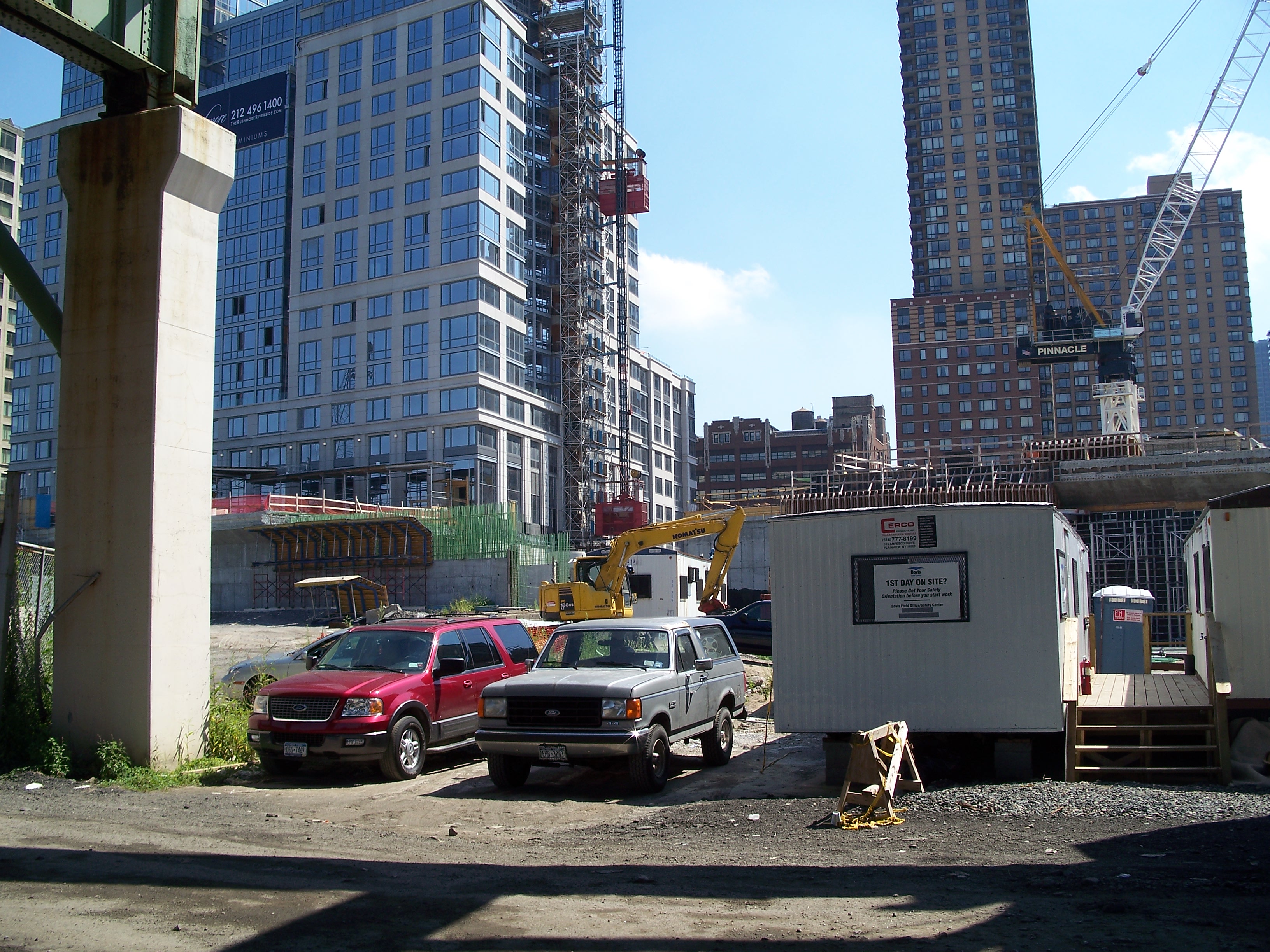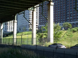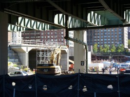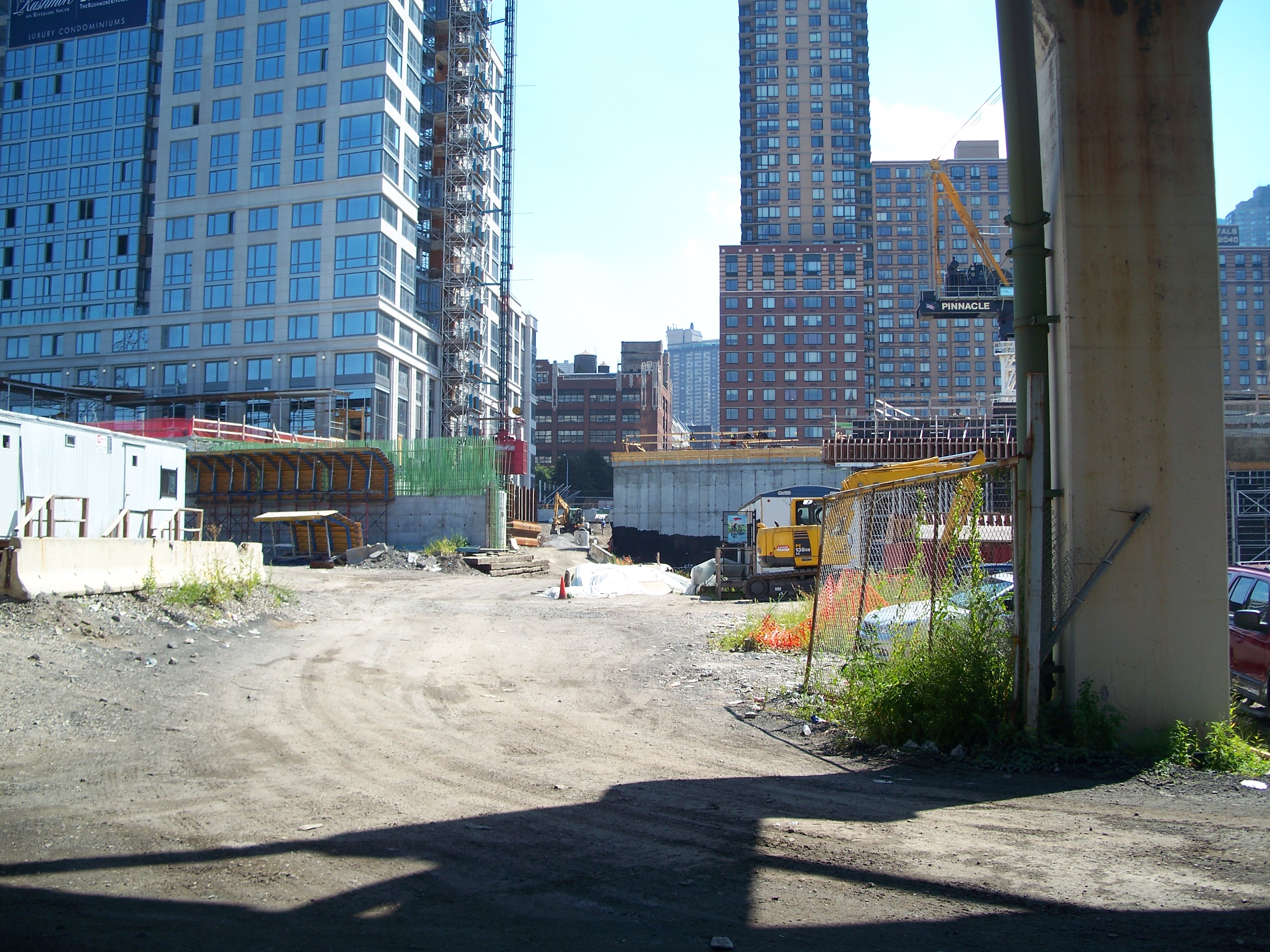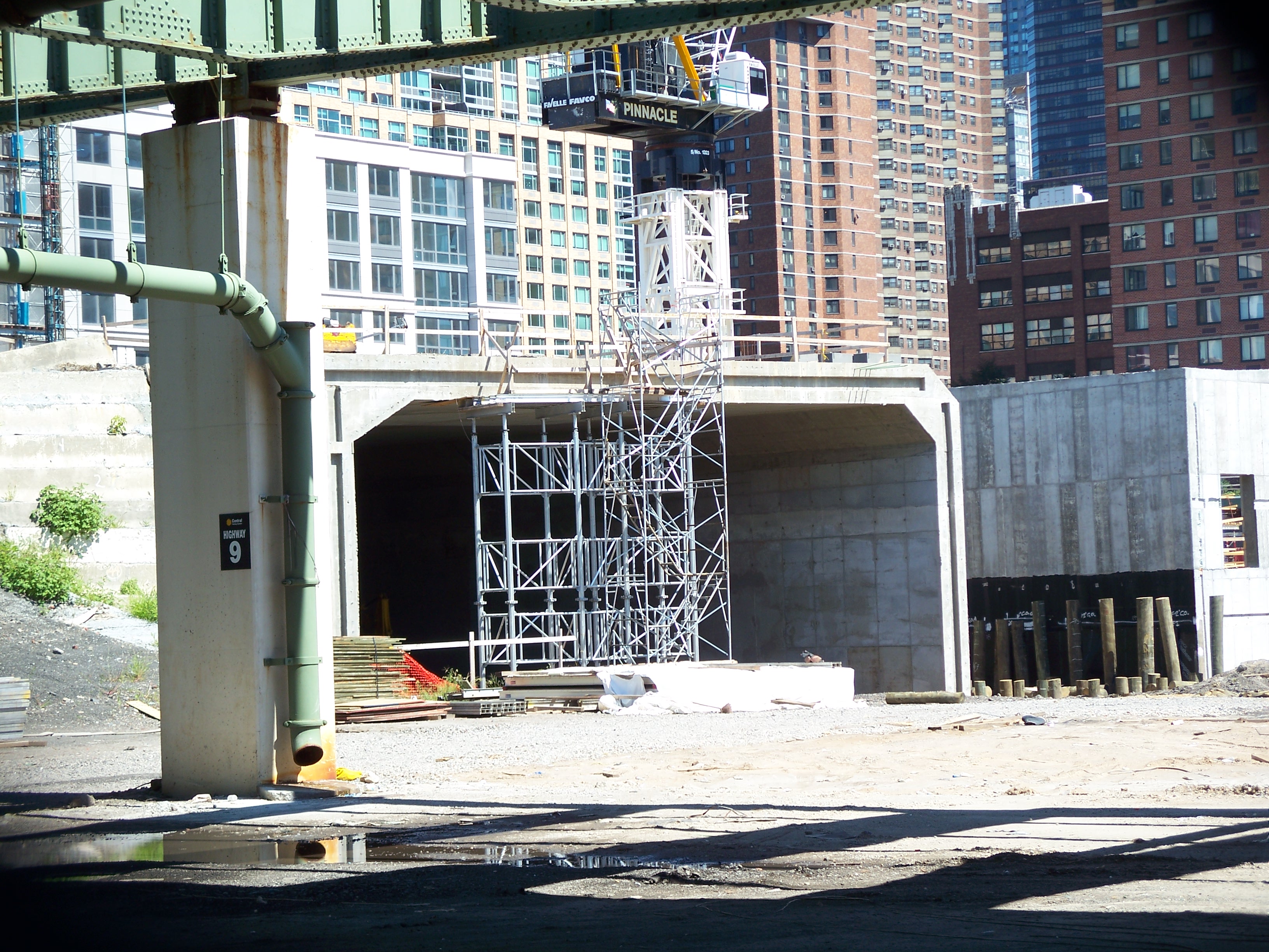 The development plan for Riverside South included a rerouting of the Miller Highway into a tunnel through the railyard grounds, leaving the residents of the complex with a nice expanse of parkland and unimpeded views of the river. But although Trump was able to muscle the development into existence over vociferous community opposition, he was not able to convince lawmakers to expend public funds for a tunnel whose primary virtue would be to add value to a luxury housing development. The northernmost buildings were the first to rise and the boulevard in front of them was created over fill that could later be excavated for the tunnel. Development of the buildings and boulevard further south include the tunnel. Once the complex is completed and the renovated viaduct starts to reach the end of its design life in 2025 or so, the tunnel idea will likely be revisited.