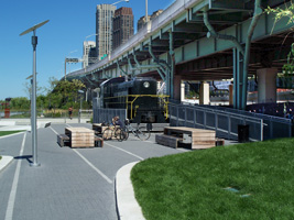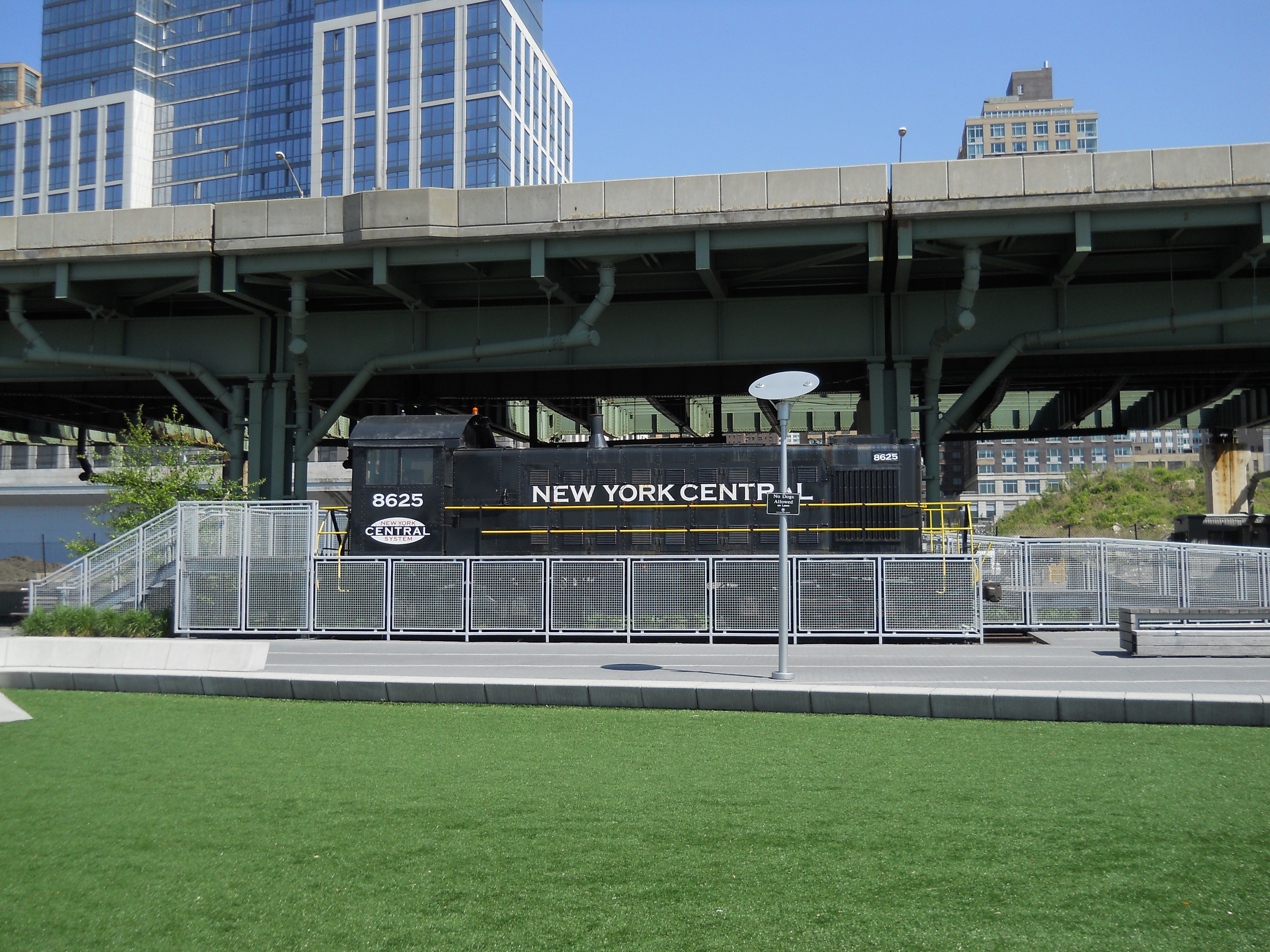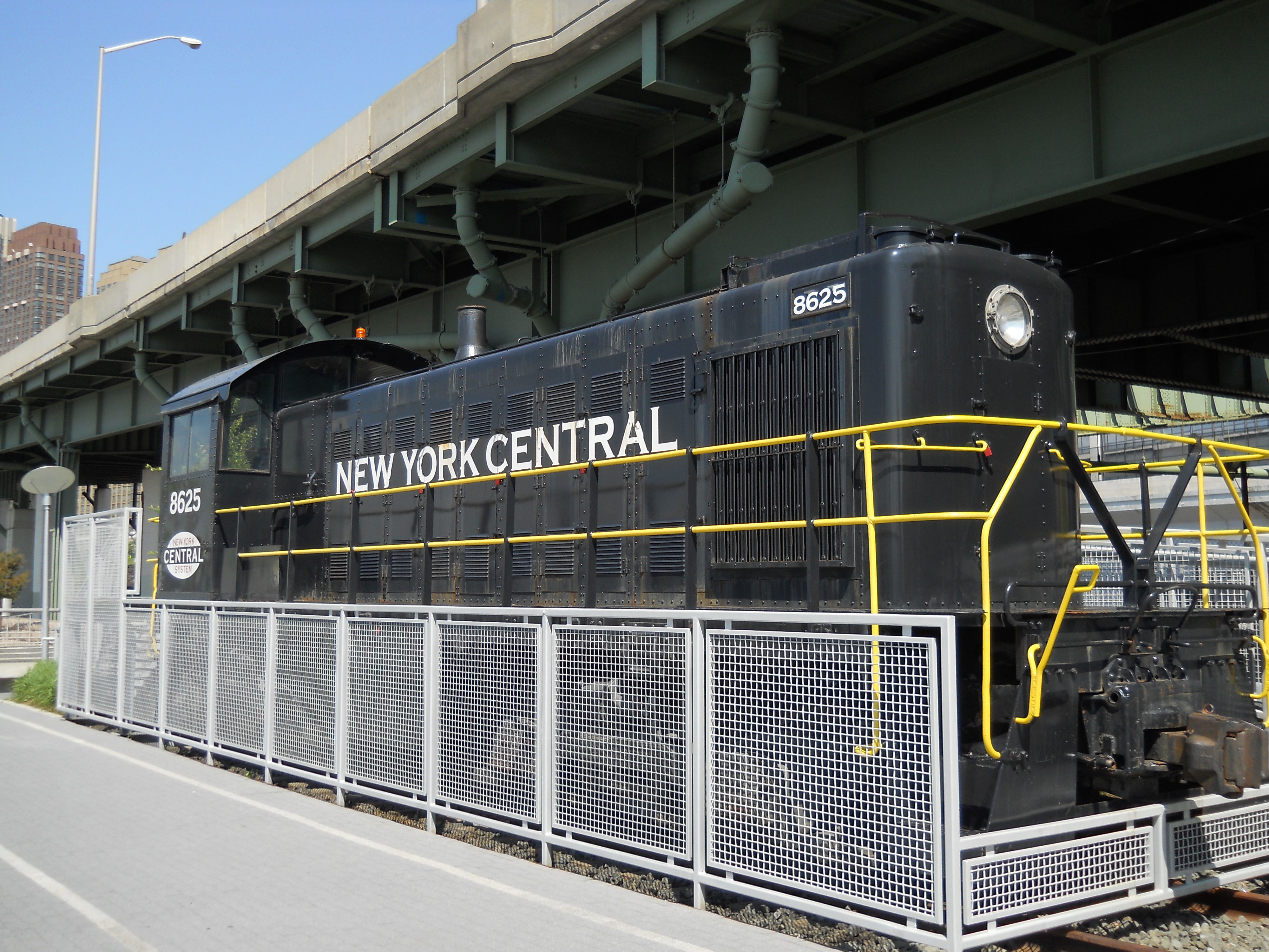 Just east of Pier B is an exhibit of a locomotive similar to the ones that moved cars around the 60th St. Yard. Locomotive 8625 is a 60-ton, 660-horsepower was a switching engine built in 1964 by American Locomotive Company. This engine served similar service in Brooklyn's Cross Harbor Railroad before being retired and moved here as an exhibit in 2006.