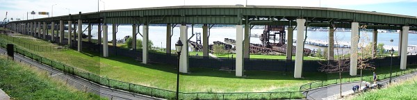 The West Side Highway was an elevated parkway extending from West 72nd Street down to Chambers Street that was constructed between 1927 and 1931. The highway permitted trucks to travel between the piers on the waterfront to warehouses on the island without obstructing auto traffic. The highway was named the Miller Elevated Highway after Julius Miller, the Manhattan Borough President who shepherded it into existence through a bureaucratic maze.