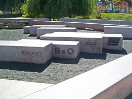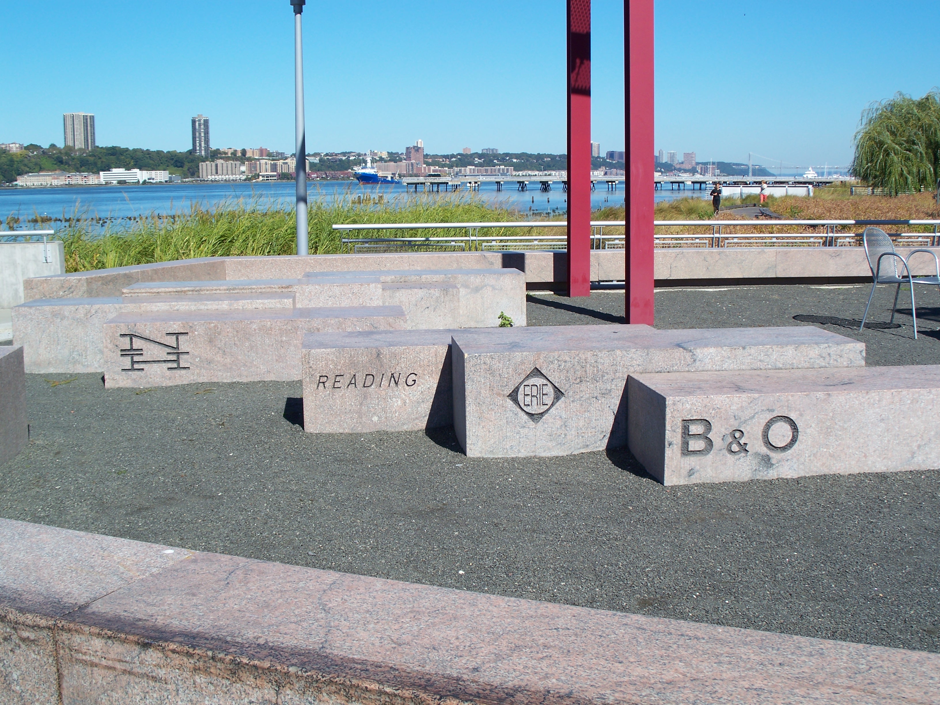 Ornamental stone seats at Pier D