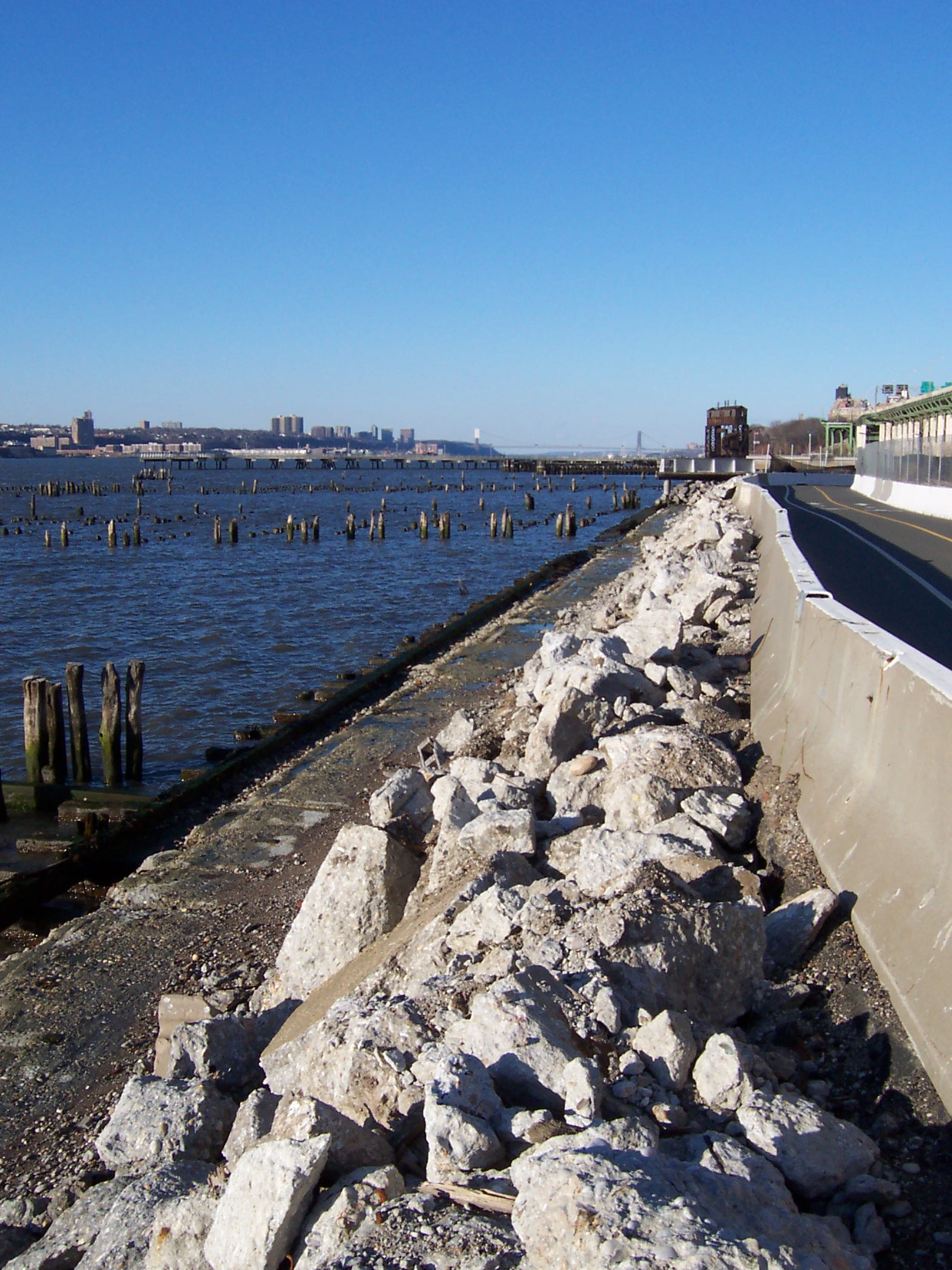 Pier remnants, temporary bikeway