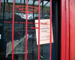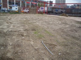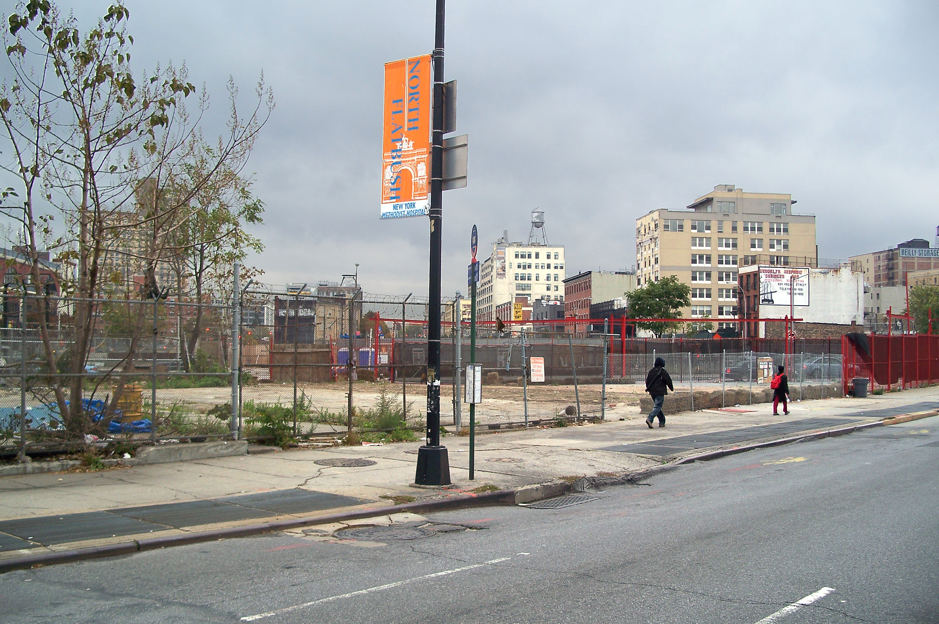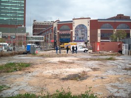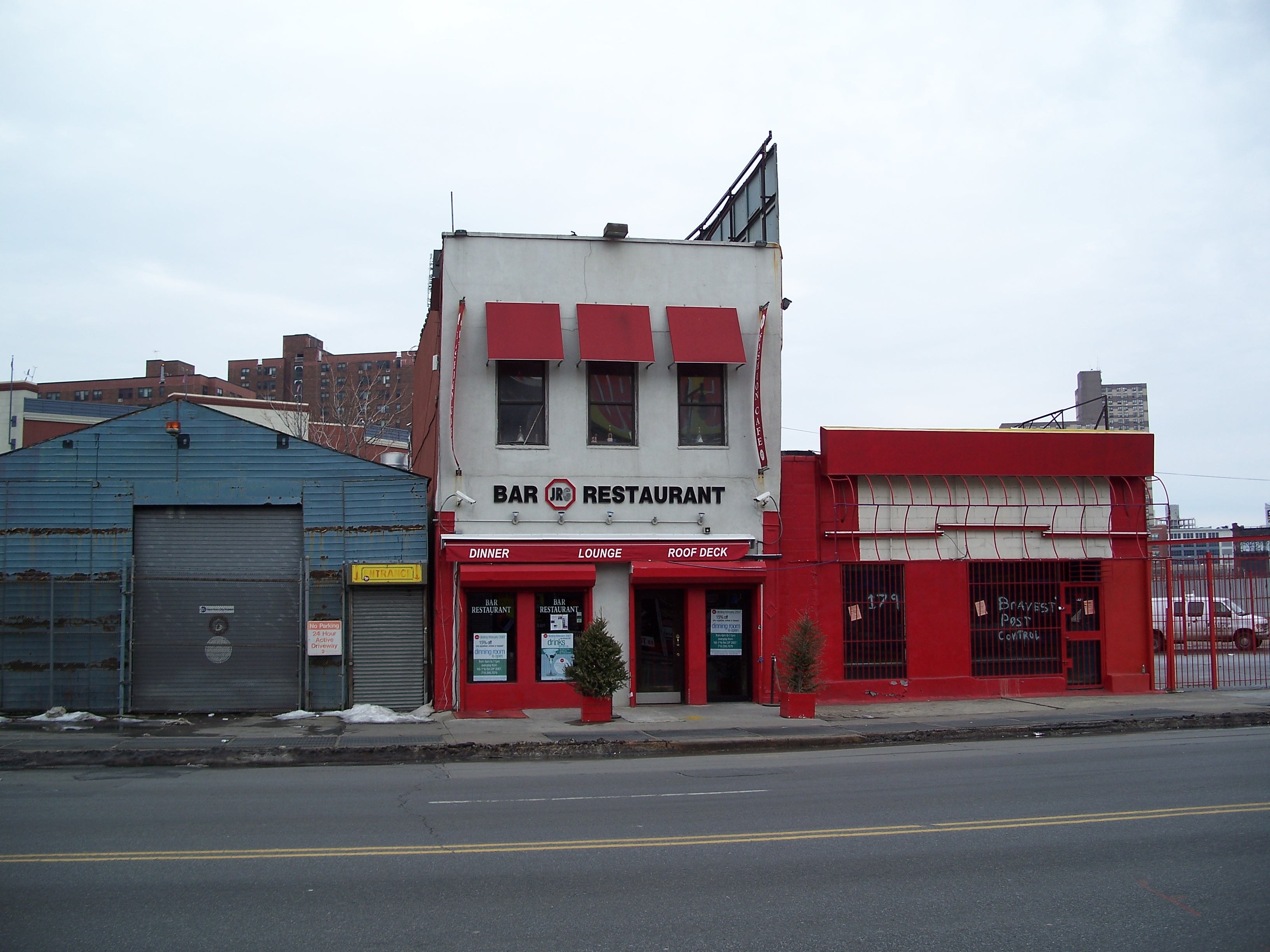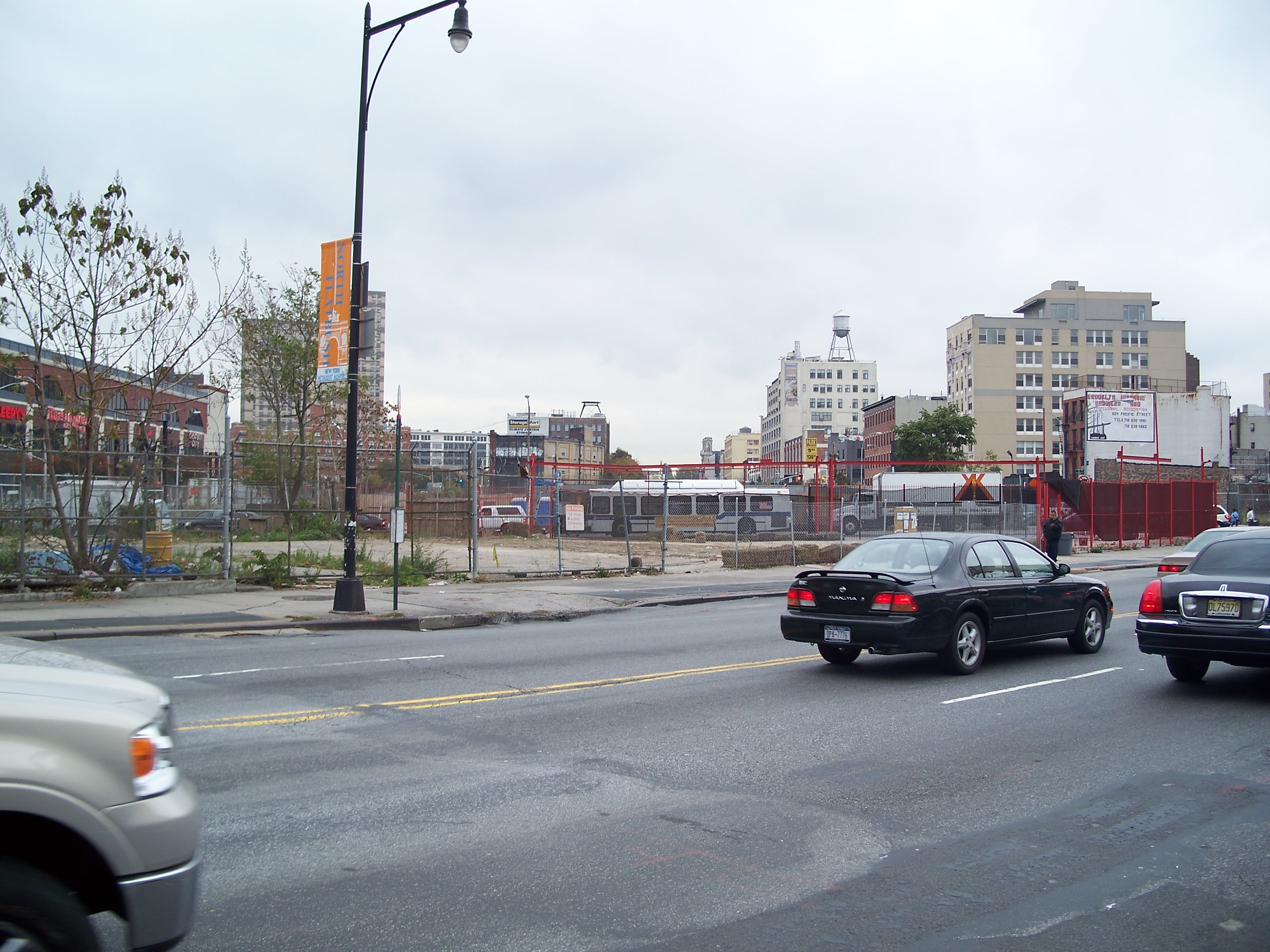 Just to the east was a desolate triangle of land used as parking and equipment storage for the LIRR. It was also the home of the JRG Bar and Restaurant. The vacant building next door to the restaurant bore a notice about being baited for rats, a sure precursor to demolition. This block will be combined with the adjacent blocks to the east as the location of the new arena. The short stretch of 5th Avenue between Flatbush Avenue and Atlantic Avenue will be closed.