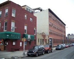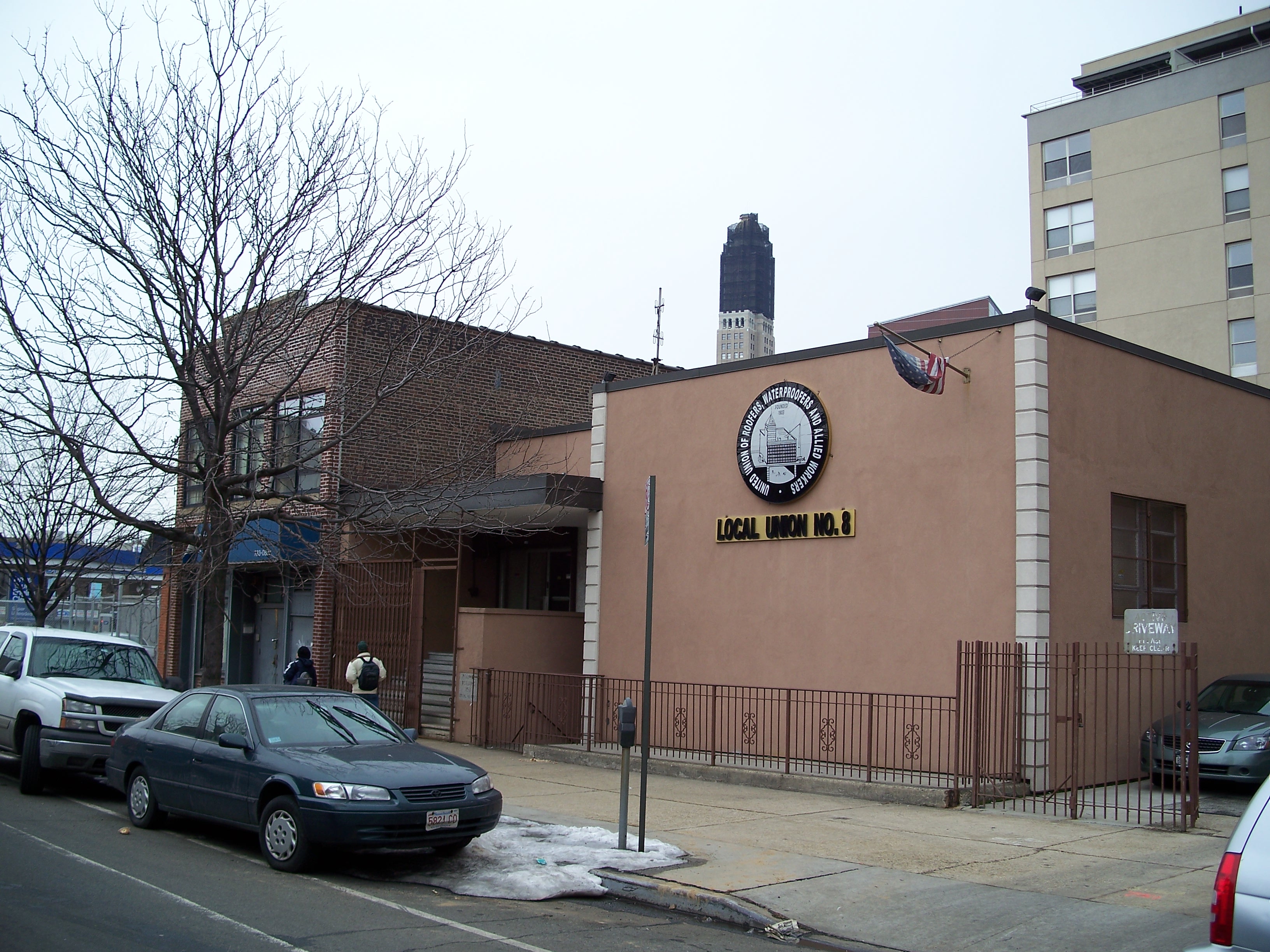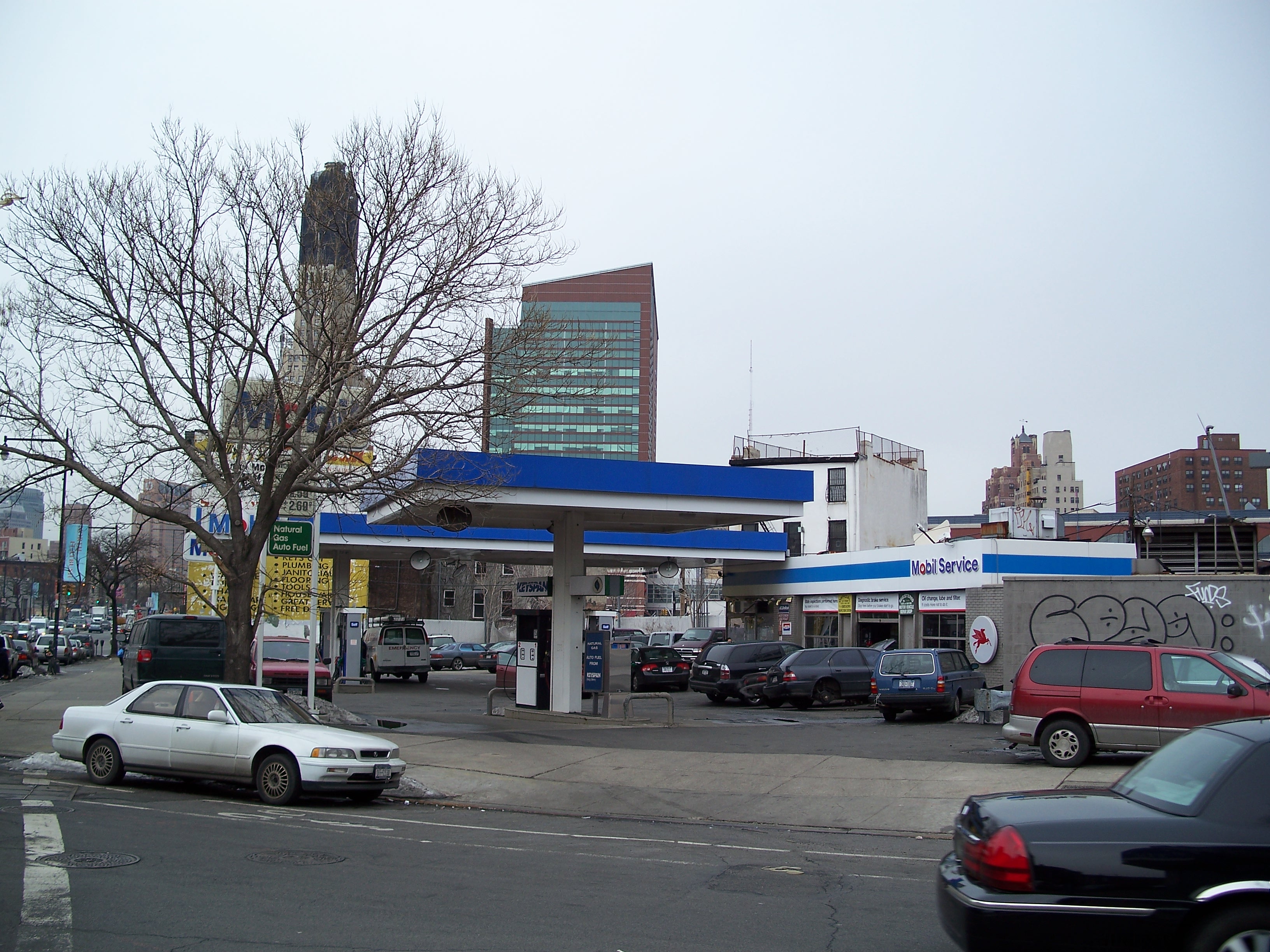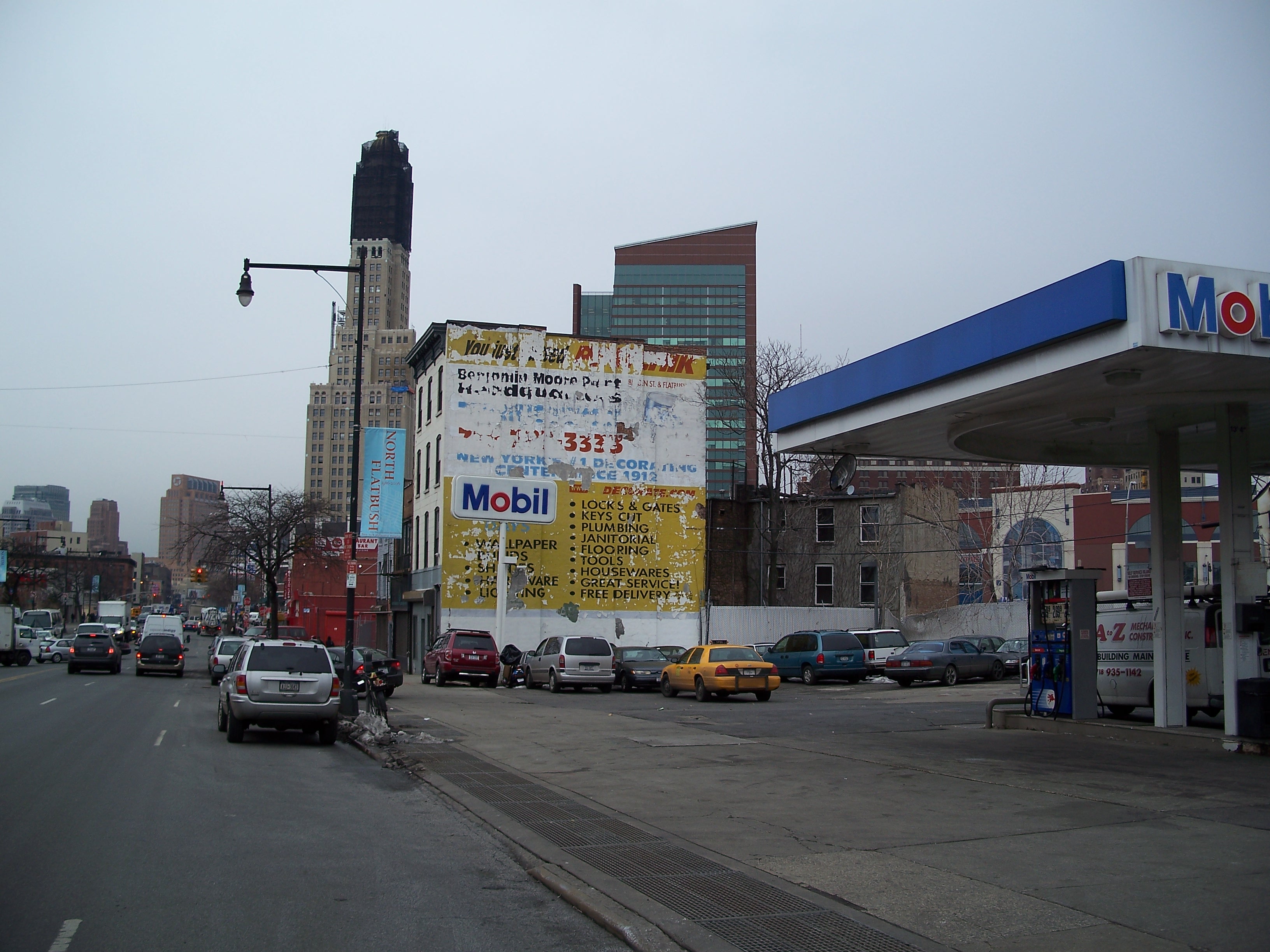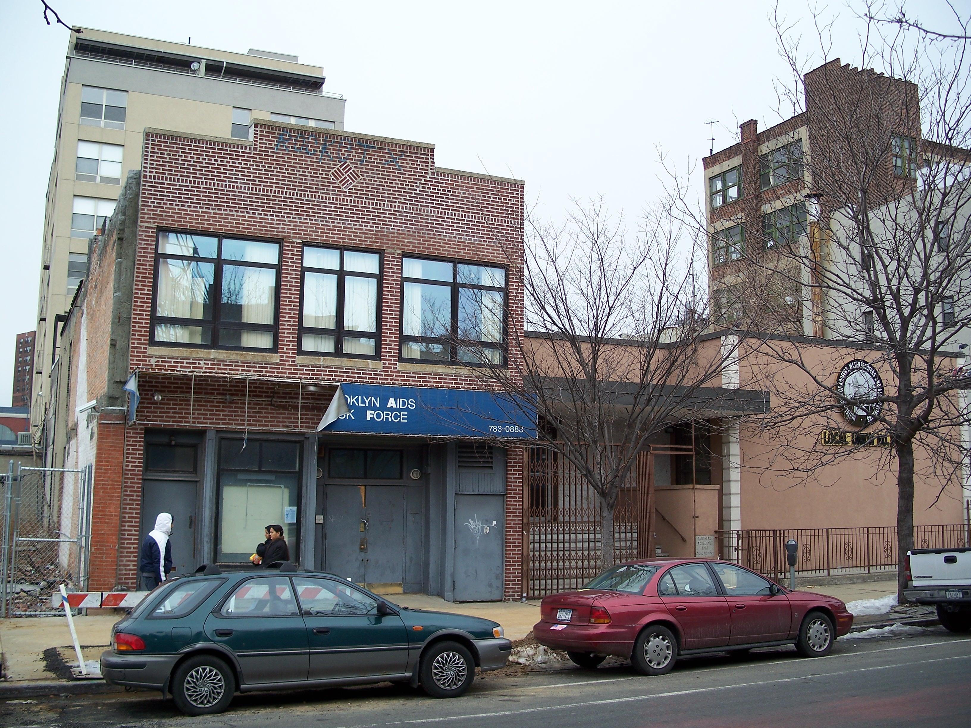 Further down the block is the United Union of Roofers, Waterproofers and Allied Workers, Local 8, which undoubtedly supports Atlantic Yards and the bonanza of work it will bring to it's members. The block concludes on the west with an old building for the Brooklyn AIDS task force and a Mobil station.