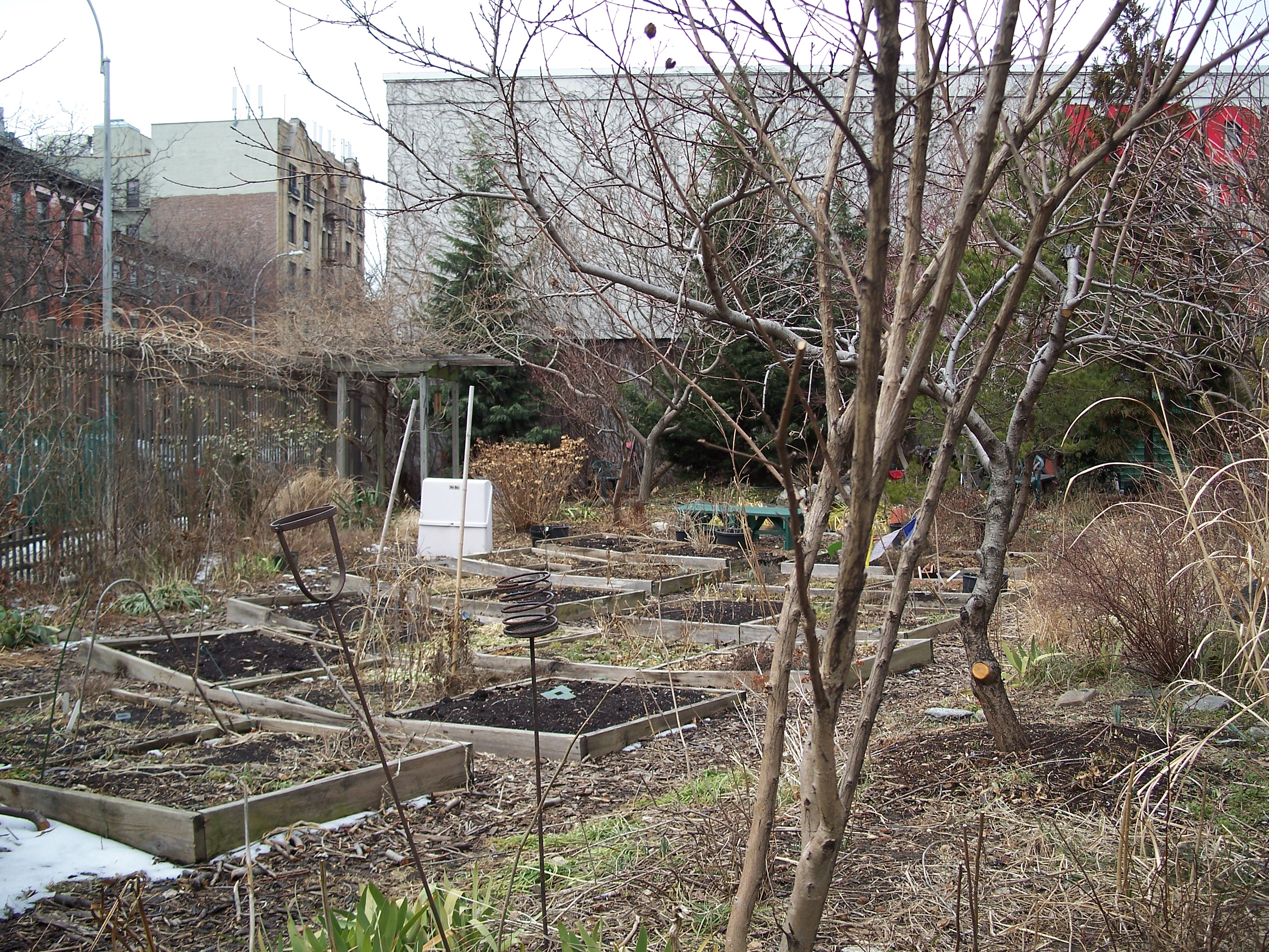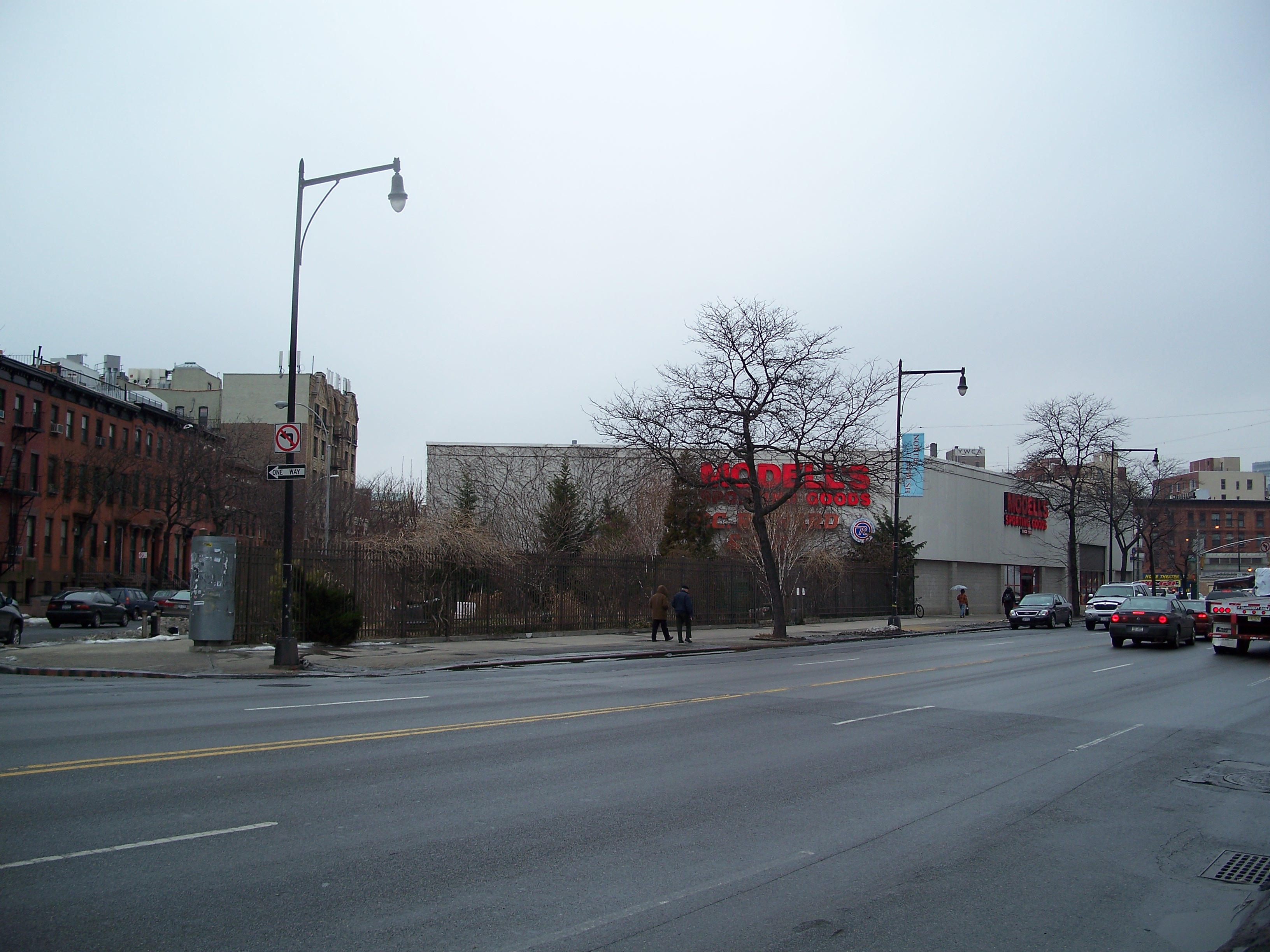 The easternmost portion of the Atlantic Yards project is a small triangle of land currently inhabited by a community garden and a couple of strip-mall-like insta-buildings housing a Modells and PC Richard that sell cheap imported products.