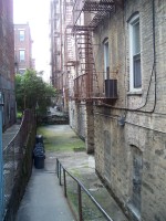 Alley behind apartment building on Beck Street