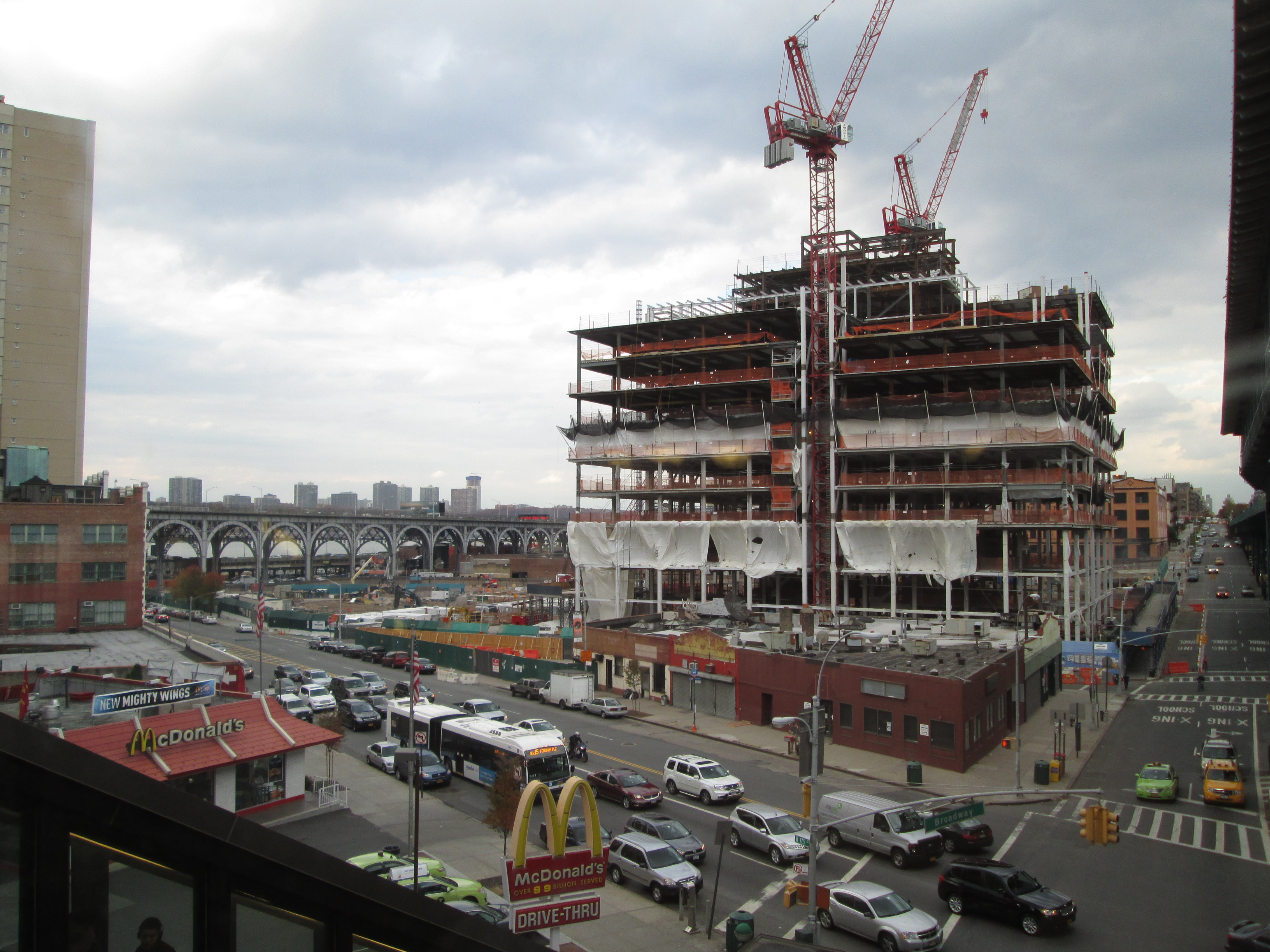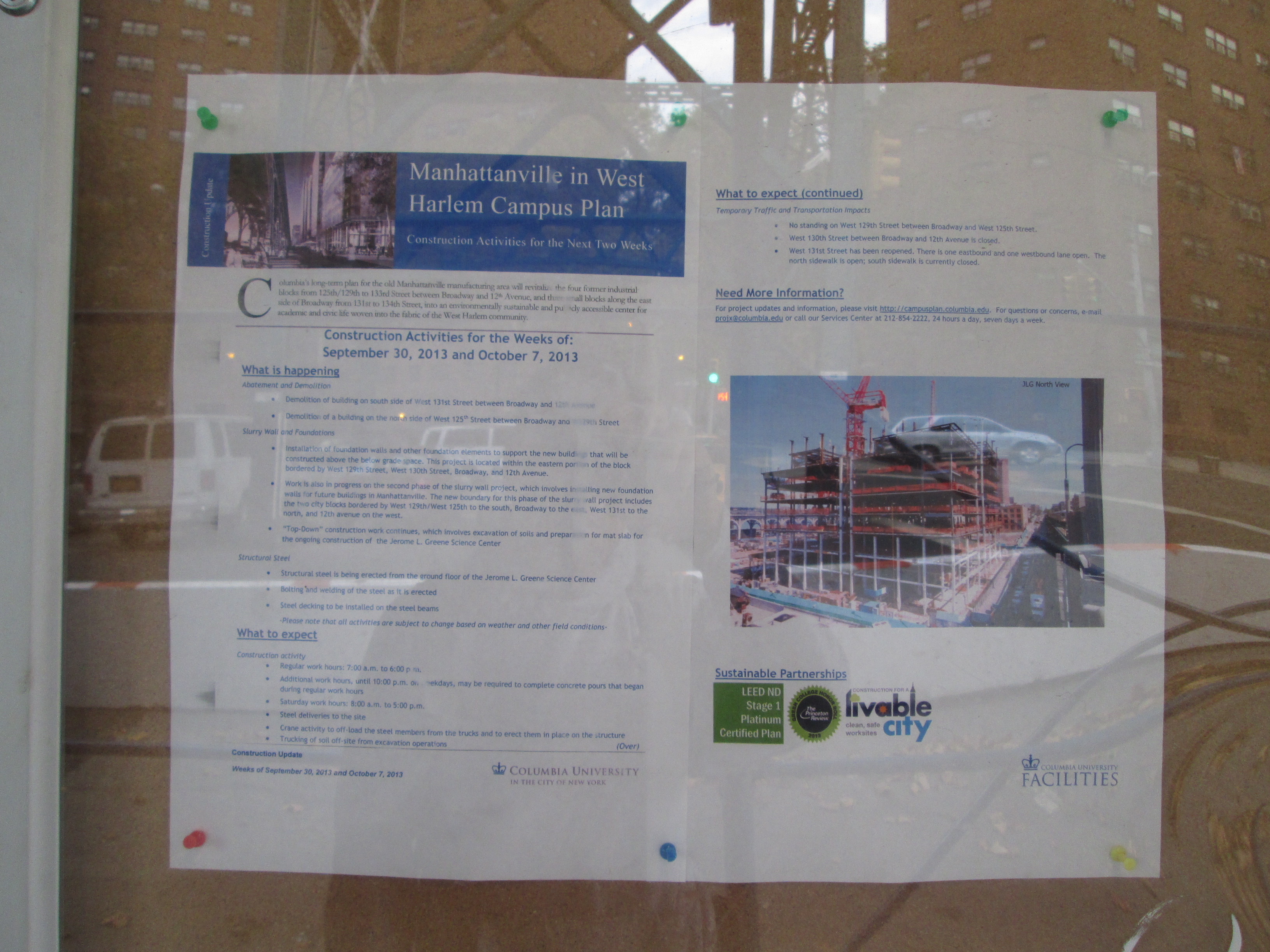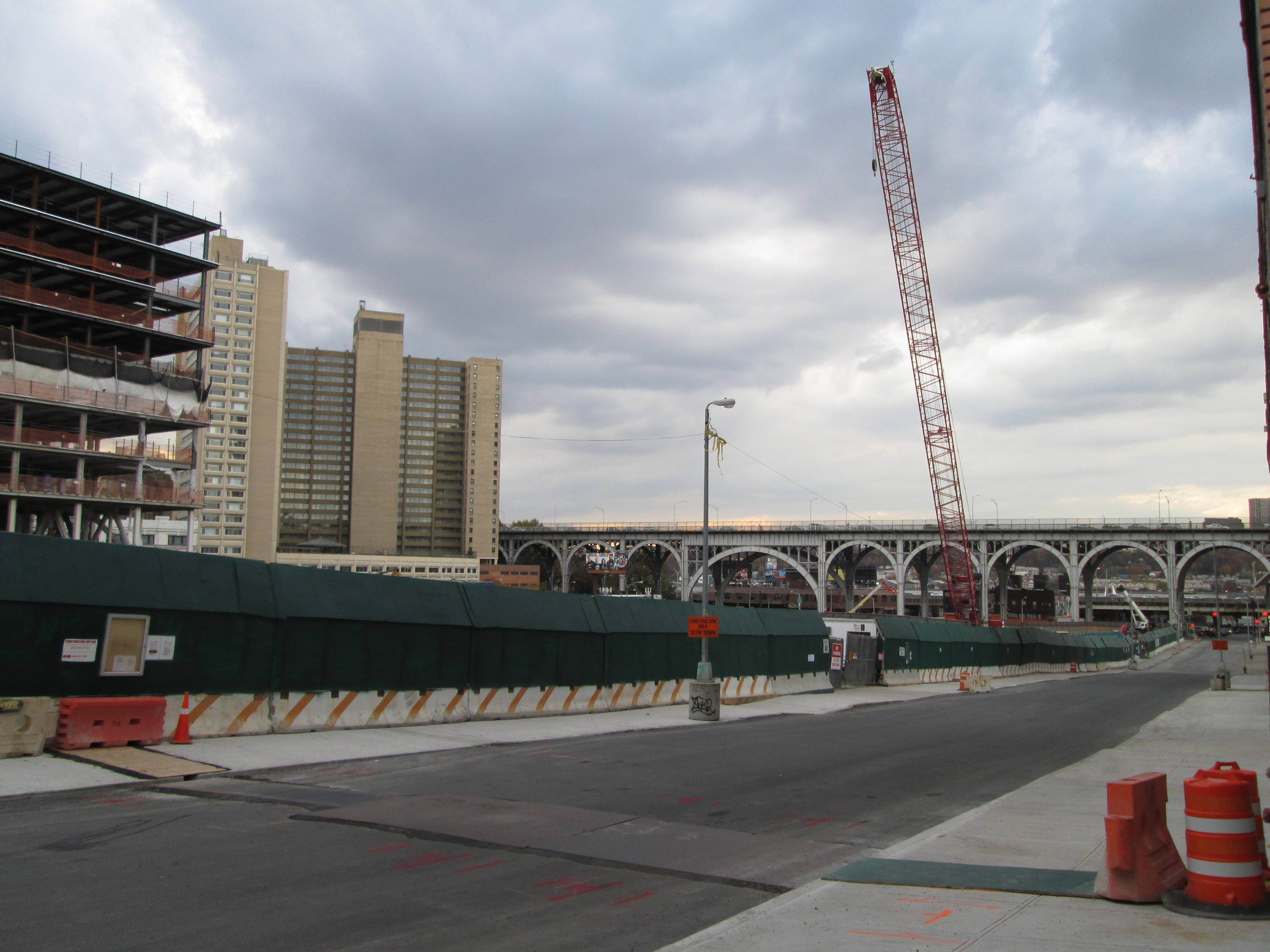 I was in The City for the NYC Marathon in 2013 and checked in on the status of the expansion. 129th and 130th streets were cleared, with significant progress on the Jerome L. Greene Science Center. 131st and 132nd streets seeming fated to go next.